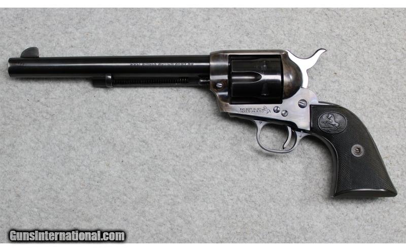 Description: Colt Single Action Army revolver chambered in .45 Colt. The serial number (14820SA) dates the firearm to 1957. .45 Colt SOLD Curio/Relic: Yes Metal Condition: Very Good with Minor Handling Marks Wood Condition: Very Good with Minor Handling Marks Bore Condition: Bright And Clear with No Pitting Barrels: 7.5 inch Butt Pad: Plastic Weight: 2 Lbs 6 Oz Item Location: Fort Worth, TX |