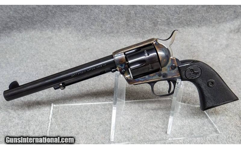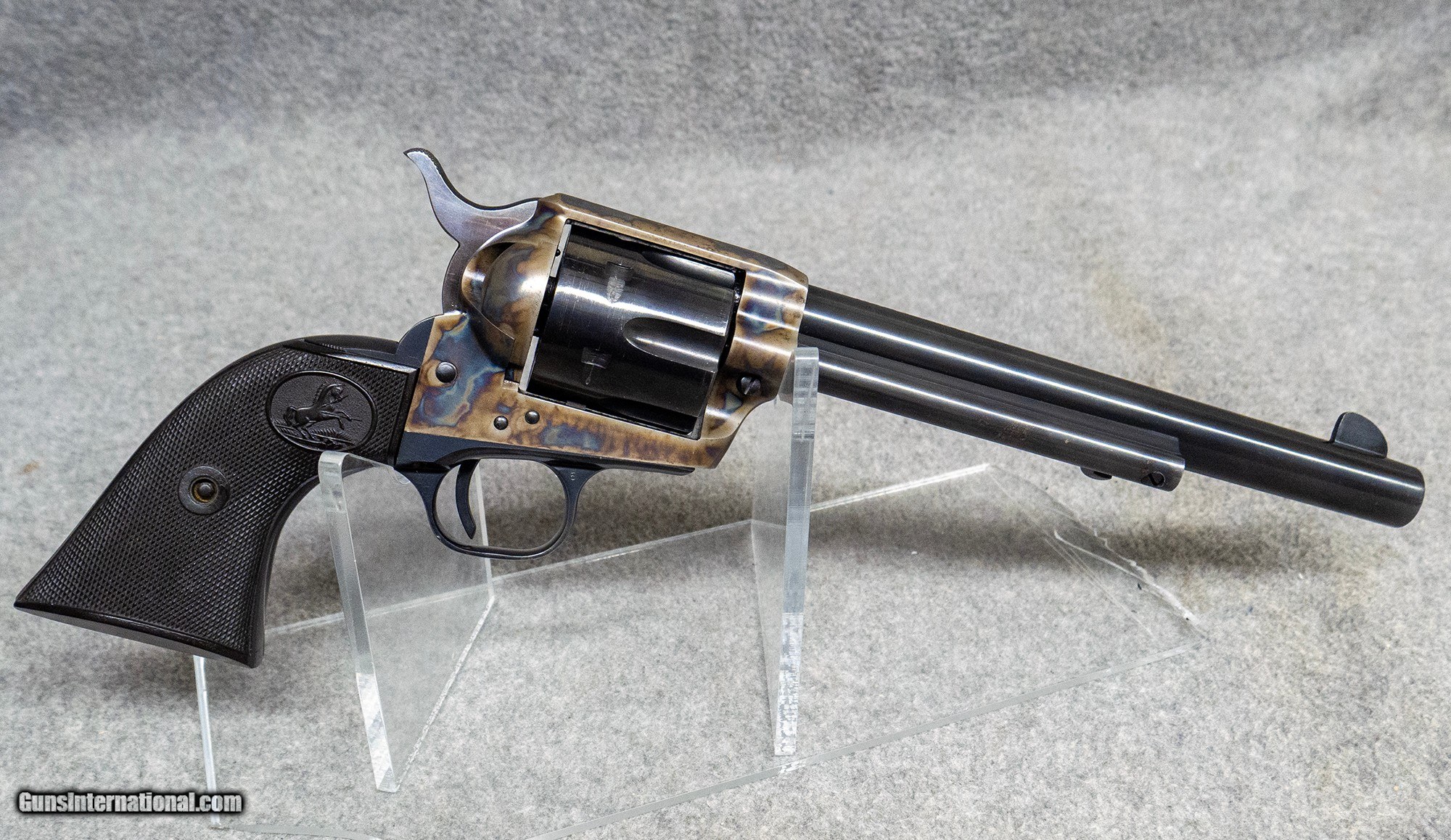 Description: This second-generation Colt Single Action Army is in overall excellent condition. Manufactured in 1959. Firearm only. .45 Colt SOLD Chambers: ".45 Colt, 6-Shot Metal Condition: Excellent Bore Condition: Excellent Barrels: 7.5" Barrel Triggers: Single Action Only Butt Pad: Checkered Plastic Grips Item Location: Greenville, SC |