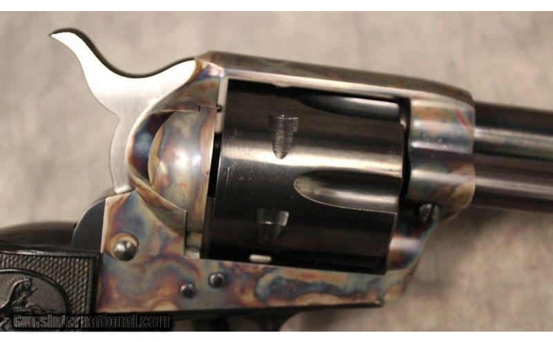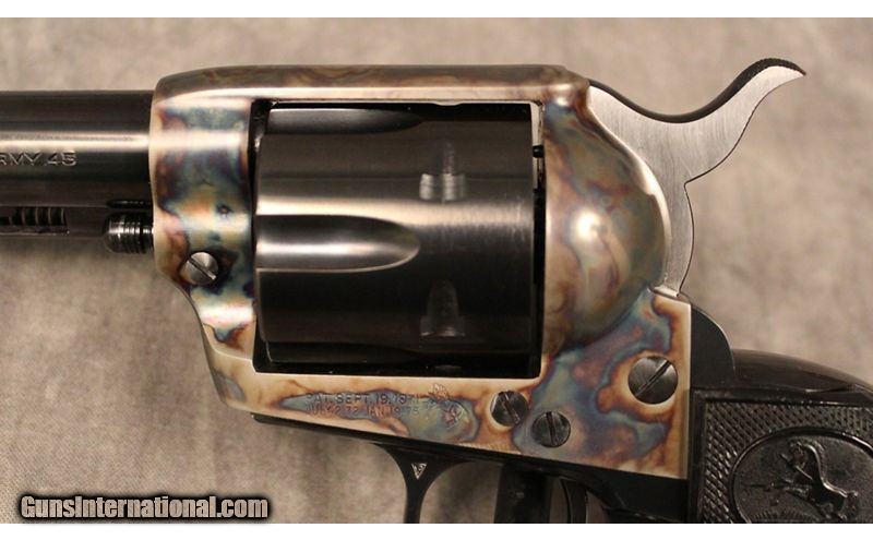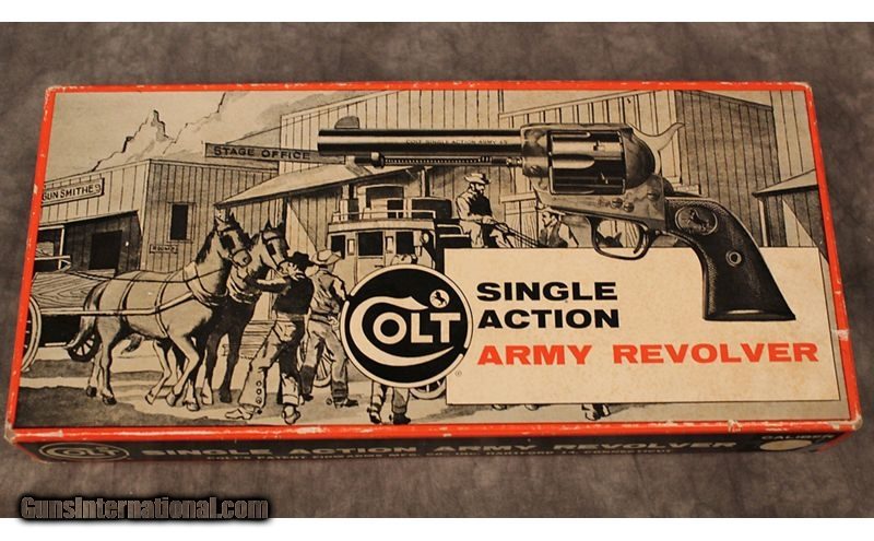 Description: This Colt Single Action Army was manufactured in 1964 and features very little to no wear throughout, with deep bluing and gorgeous case-hardening. The "Stagecoach" box is intact and has the warranty card paperwork, owners manual and cardboard spacers intact as well. .45 Long Colt SOLD Metal Condition: Excellent Bore Condition: Excellent Barrels: 4.5 Weight: 2 lbs Item Location: Broken Arrow, OK |
