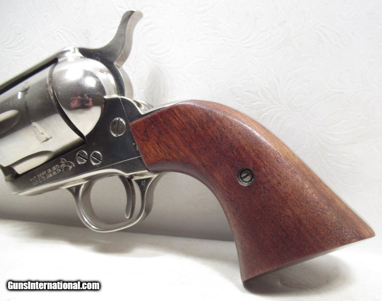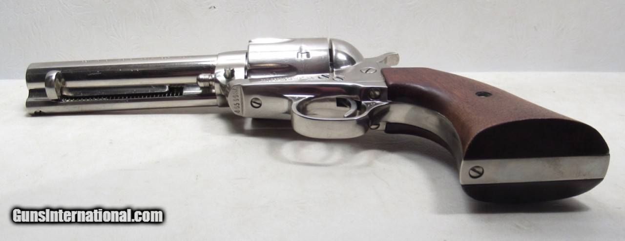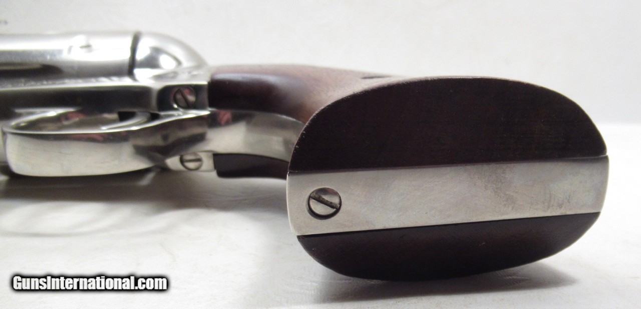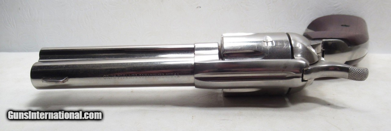 Description: Colt Single Action Army Revolver – 2nd Generation Model; Serial No. 49599SA; Per Colt Factory Letter on Order: .357 Magnum Caliber with 4 ¾” Barrel, Nickel Finish, Wood Stocks, and Shipped to United Merchandizing Corp. in Culver City, California on April 19, 1969 as Part of a 2 Gun Shipment; Per Wilkerson Book (Page 48) Only 616 Were Made in this Configuration; 100% Correct and Matching; Perfect Action and Bore; 99% Original Metal Finish Remains; Perfect Numbered and Lettered Wood Grips; Note: this one was never disassembled or cleaned – when we got it the front of the cylinder was black – upon cleaning – the copper undercoating on each edge of the cylinder is evident (see photos); Super Scarce 56 Year-Old Colt Revolver; See All Photos for Condition; No Texts; Call (254)541-5765 or Email Only; PERSONAL PROPERTY of Harold Wieser; NOTICE: We Do Not Do Any Consignments - All Items Listed are Owned by Us - NO SALES to New Jersey or New York City - Antiques Only to Massachusetts and California; NOTE: All Modern Firearms Must Go to FFL Dealer who will Accept From Individual with Texas Driver License; Price: $2,750 + $50 S&H; Payment Address: Harold Wieser - 1466 U.S. Hwy 77 - Rosebud, TX 76570; SEND PAYMENTS VIA USPS PRIORITY MAIL; BEWARE of SCAMS!!! - DO NOT SEND MONEY or CORRESPONDENTS ELECTRONICALLY UNLESS YOU HAVE SPOKEN to HAROLD WIESER FIRST! (254)541-5765 SOLD Manufacturer: Colt Model: 1873 S.A.A. - 2nd Gen Serial Number: 49599SA |