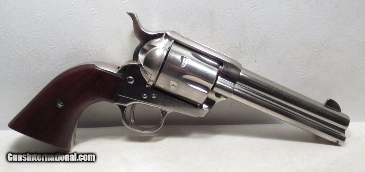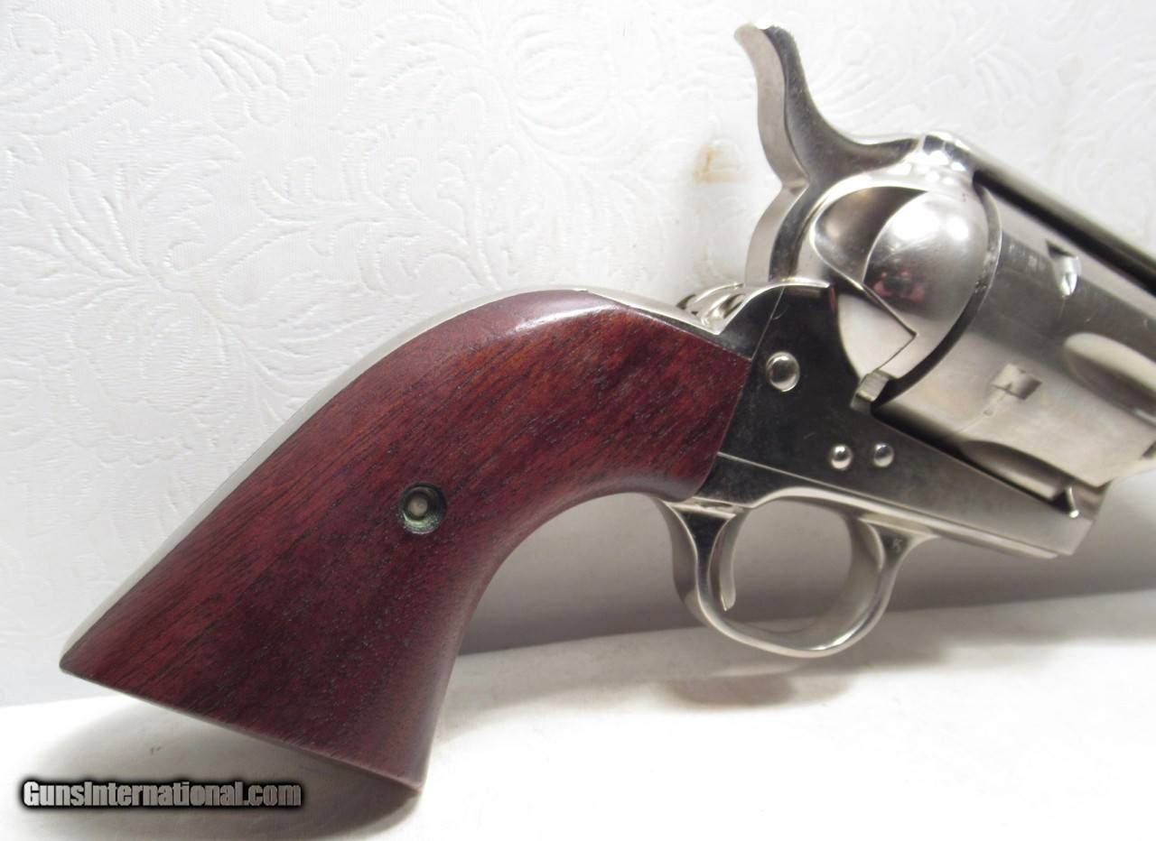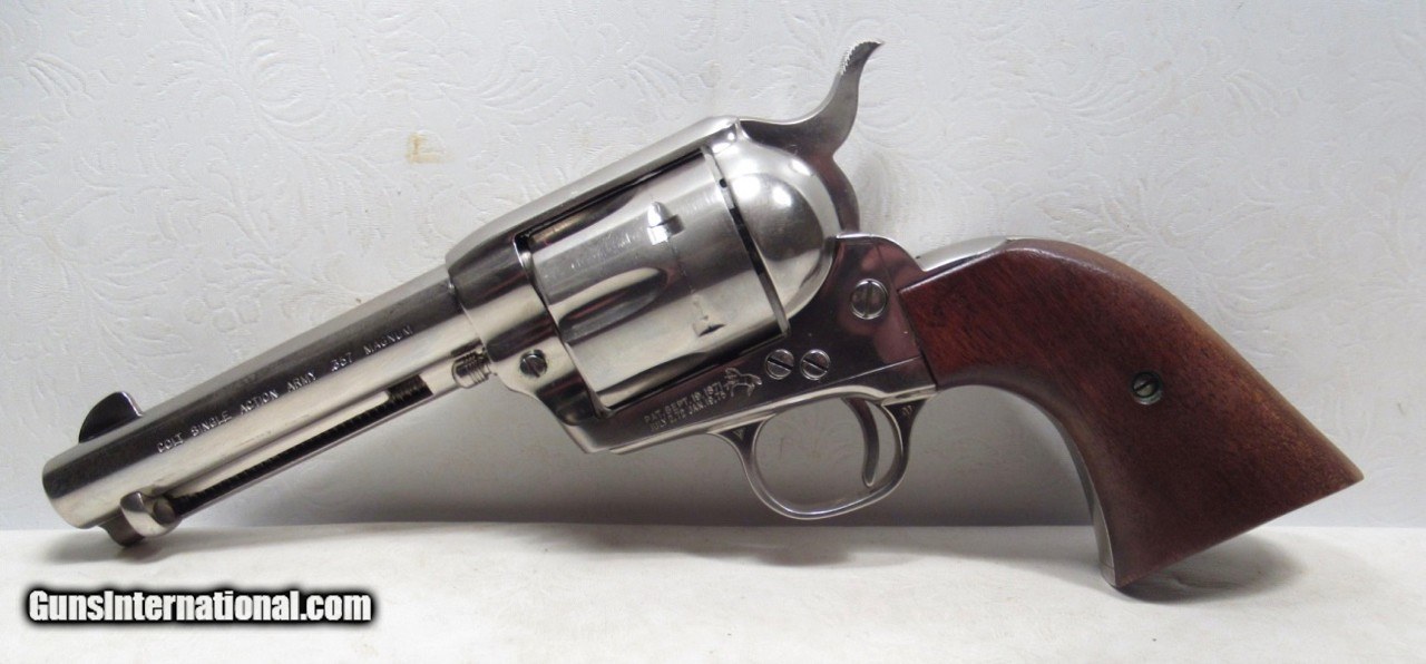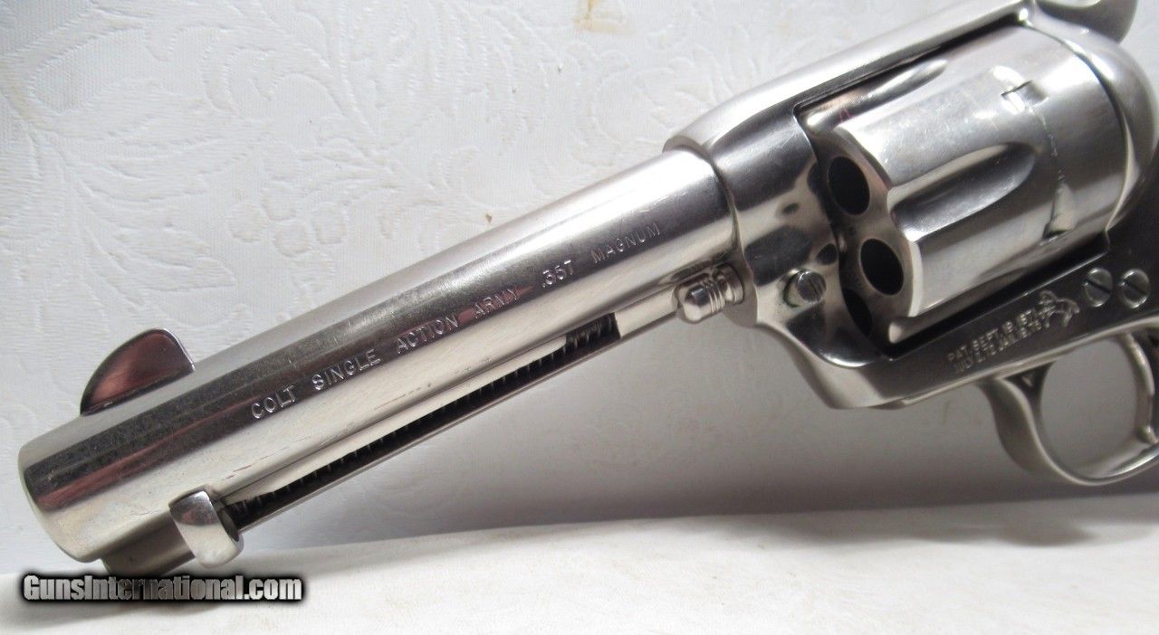 Description: Colt Single Action Army Revolver – 2nd Generation Model; Serial No. 49599SA; Per Colt Factory Letter on Order: .357 Magnum Caliber with 4 ¾” Barrel, Nickel Finish, Wood Stocks, and Shipped to United Merchandizing Corp. in Culver City, California on April 19, 1969 as Part of a 2 Gun Shipment; Per Wilkerson Book (Page 48) Only 616 Were Made in this Configuration; 100% Correct and Matching; Perfect Action and Bore; 99% Original Metal Finish Remains; Perfect Numbered and Lettered Wood Grips; Note: this one was never disassembled or cleaned – when we got it the front of the cylinder was black – upon cleaning – the copper undercoating on each edge of the cylinder is evident (see photos); Super Scarce 56 Year-Old Colt Revolver; See All Photos for Condition; No Texts; Call (254)541-5765 or Email Only; PERSONAL PROPERTY of Harold Wieser; NOTICE: We Do Not Do Any Consignments - All Items Listed are Owned by Us - NO SALES to New Jersey or New York City - Antiques Only to Massachusetts and California; NOTE: All Modern Firearms Must Go to FFL Dealer who will Accept From Individual with Texas Driver License; Price: $2,750 + $50 S&H; Payment Address: Harold Wieser - 1466 U.S. Hwy 77 - Rosebud, TX 76570; SEND PAYMENTS VIA USPS PRIORITY MAIL; BEWARE of SCAMS!!! - DO NOT SEND MONEY or CORRESPONDENTS ELECTRONICALLY UNLESS YOU HAVE SPOKEN to HAROLD WIESER FIRST! (254)541-5765 SOLD Manufacturer: Colt Model: 1873 S.A.A. - 2nd Gen Serial Number: 49599SA |