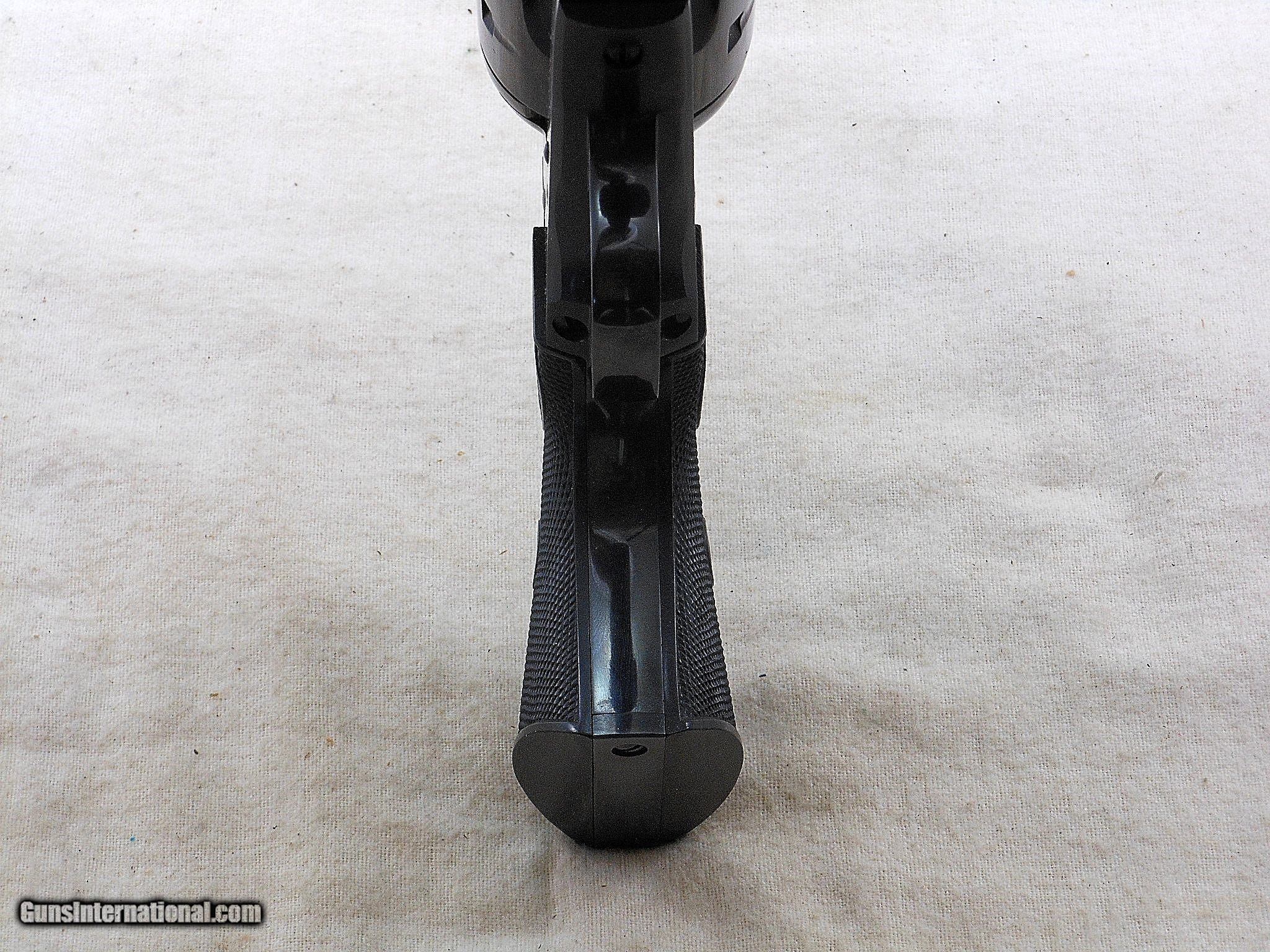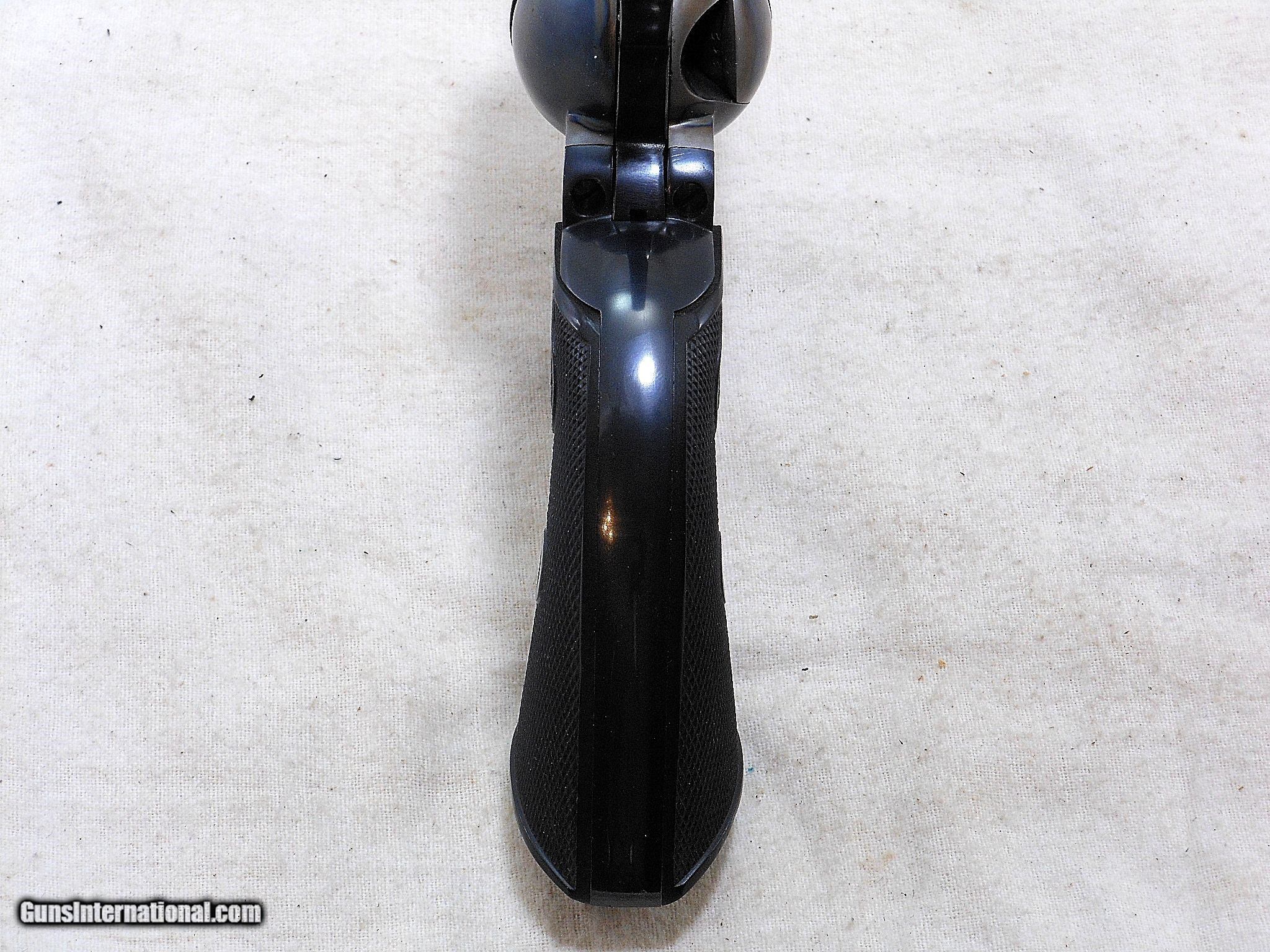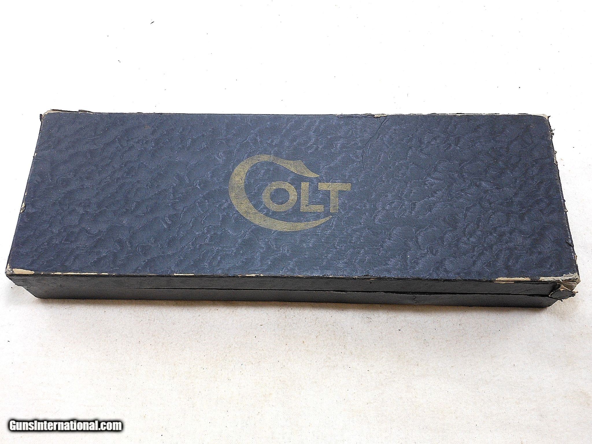 Description: This Colt was produced in 1963. The pistol's serial number is 37545 SA. It has the 7 1/2 inch barrel. It also has the correct low profile hammer. It shows no sign of being cocked or fired. The original bluing would rate a 100% overall condition. The color cased finish would also rate the same. The color cased finish is colorful and vivid. The hard rubber grips are matched to the pistol's serial number. This pistol shows no wear or handling at all. The original black box has the serial number on the bottom of the box. The serial number is matched to this pistol. The serial number is faded and hard to read but it is there. The box is in good condition. The box does show use and handling. One of the lid's corners is slightly separated. The bottom end of the box gold tone end label is intact and easy to read. The box has the Warranty card, wrapping papers and instruction pamplet. There is no brush included. This is a very nice 45 Colt pistol with it's original box. These pistol's with the black box are highly collectable today! Search for hlvfineguns on google for more details. Curio&Relic LSKE (8) F. No. 456 -19 SOLD Curio/Relic: Yes Manufacturer: Colt Model: Single Action Army Serial Number: 37545 SA Caliber Info: 45 Colt Bore: New Chambers: New Condition: As New Metal Condition: 100 % Bore Condition: As New Barrels: 7 1/2 Inches Action: Single Action Finish: Blued And Color Cased Sights: Standard Manufacture Date: 1963 Extras: Original Box And Papers |