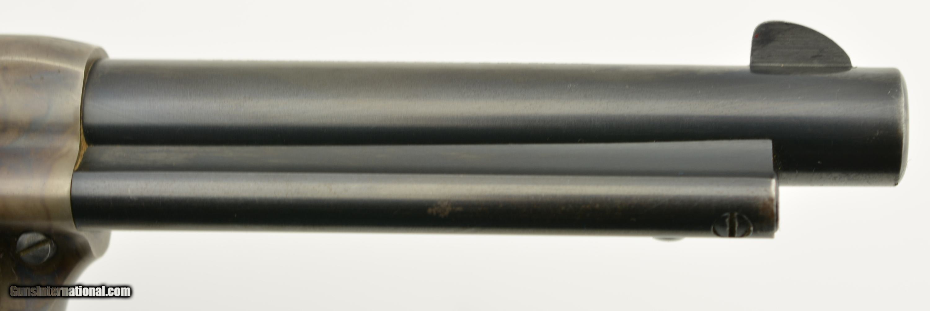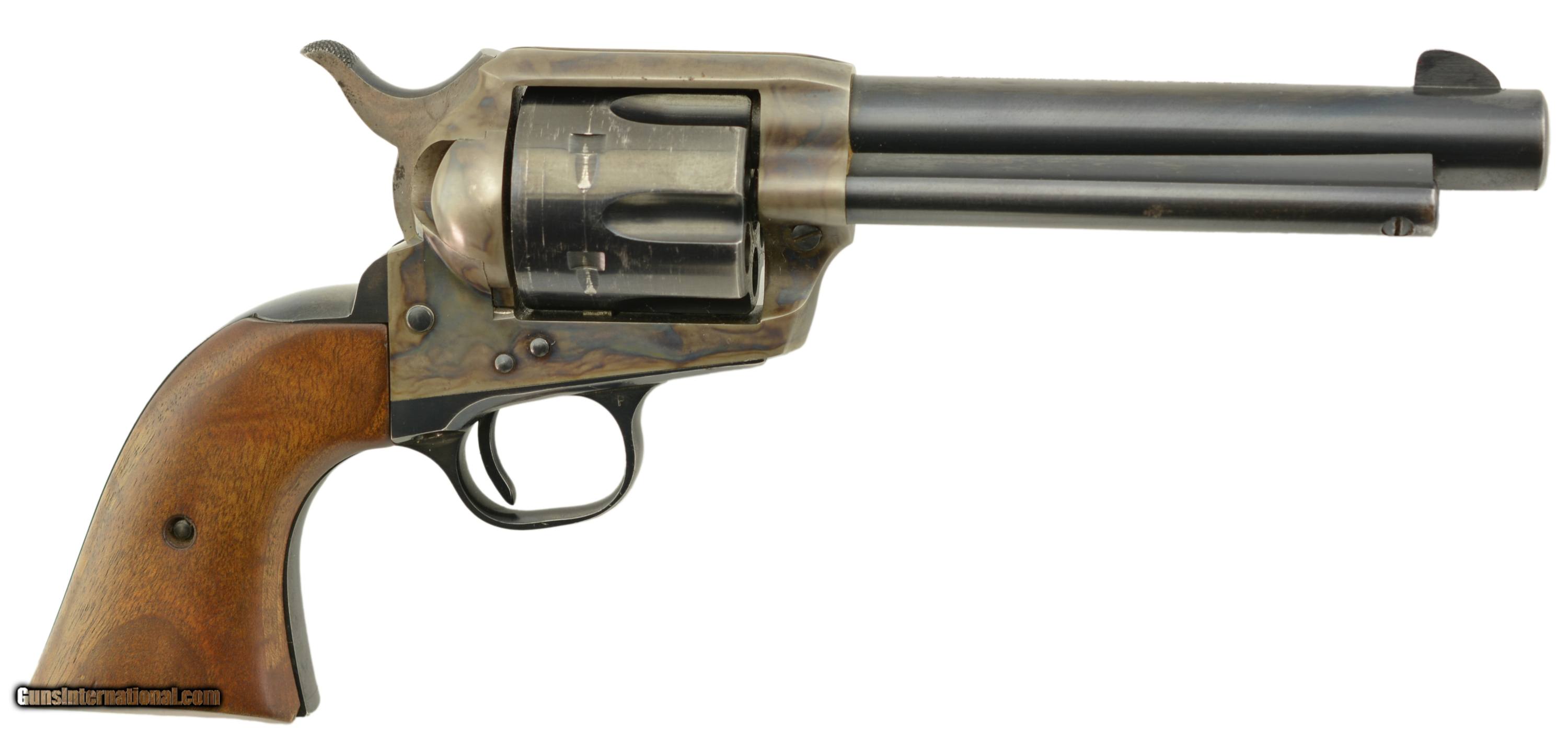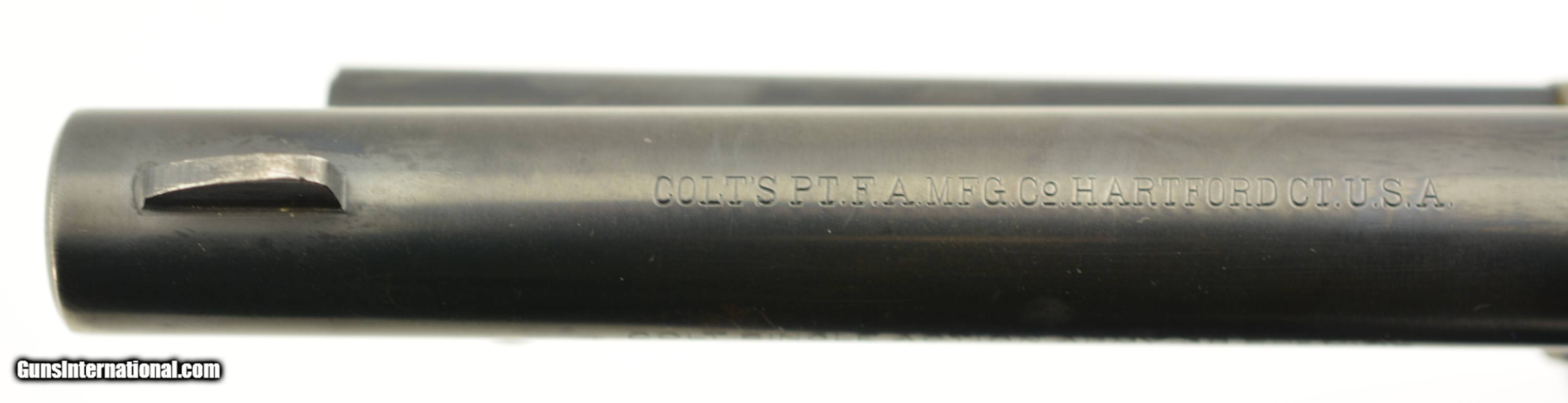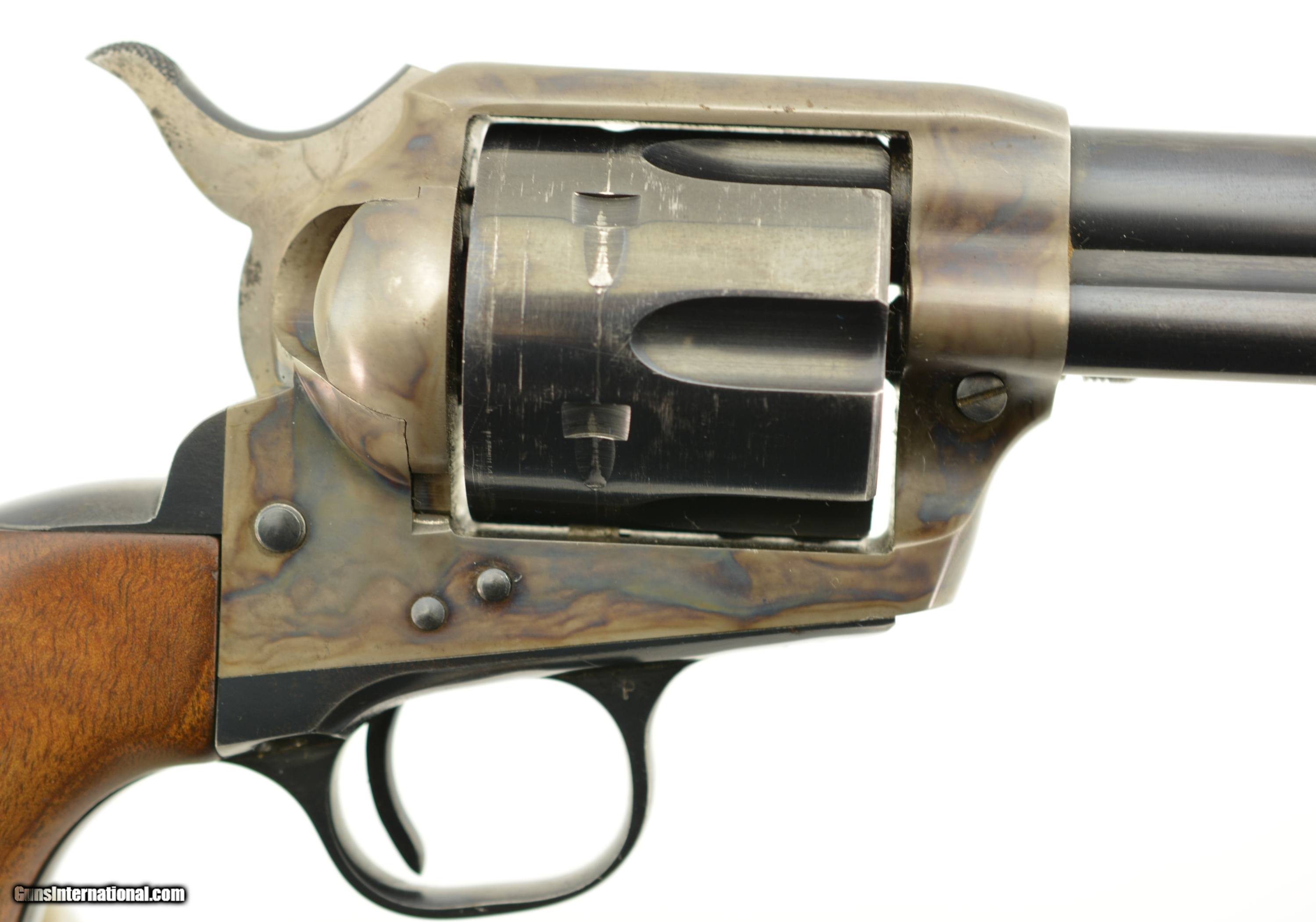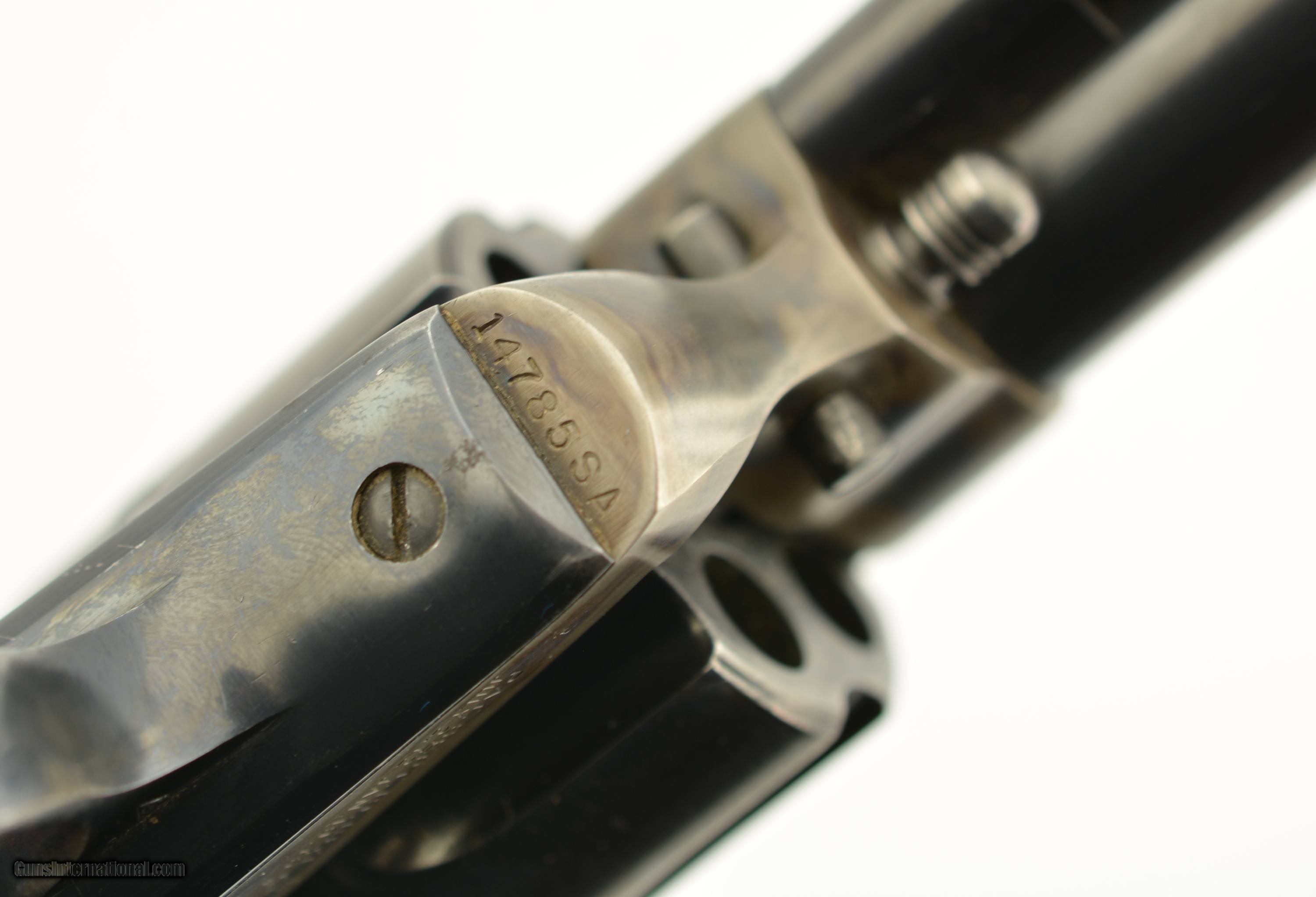 Description: Serial #14785SA, .38 Special, 5 1/2" barrel with an excellent, bright bore. This is a very nice, 1957-made revolver that has 95-97% of the original blue remaining with some minor silvering at the muzzle, tip of the ejector rod housing, and along the high edges and projections. There is a bright turn-ring on the cylinder, and the frame retains nearly all of the lovely and bright original color case-hardening. The smooth walnut grips are in excellent shape with only some minor handling marks in the otherwise excellent oil finish. This is a very handsome 2nd "Genny" Colt, in fine plus condition, and chambered in a great competition cartridge. FFL or C&R SOLD Curio/Relic: Yes Manufacturer: Colt Model: SAA Serial Number: 11666SA Caliber Info: .38 Spl Gauge Info: .38 Spl |