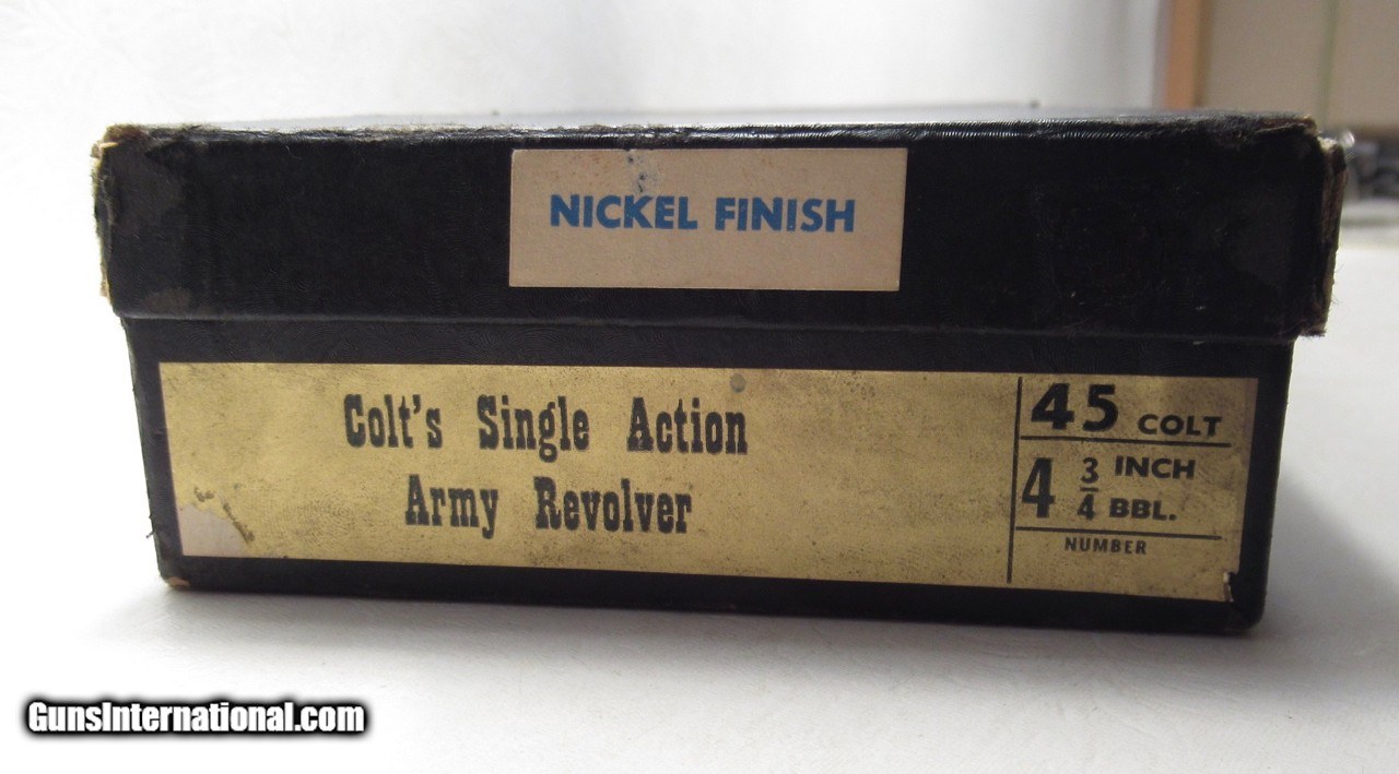 RARE COLT SINGLE ACTION ARMY .45 REVOLVER with BOX and PAPERS from COLLECTING TEXAS – RARE NICKEL – MADE 1958