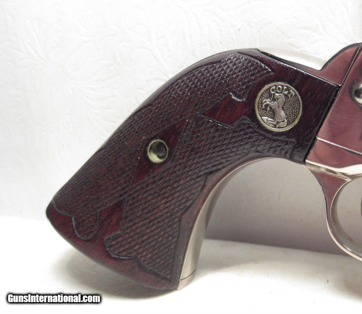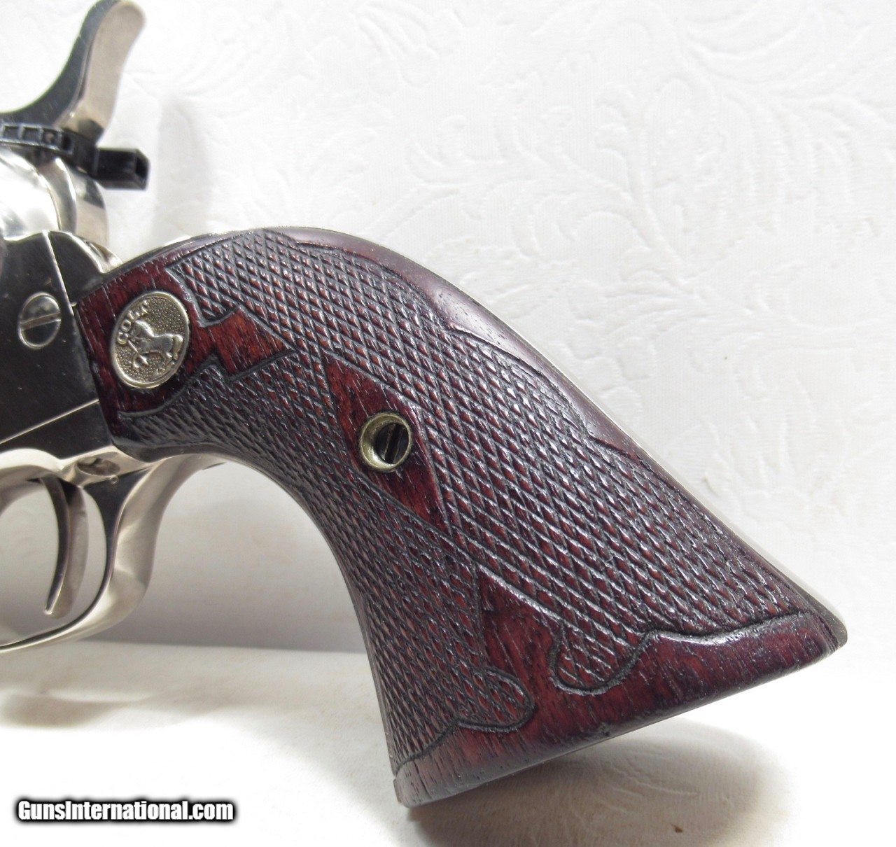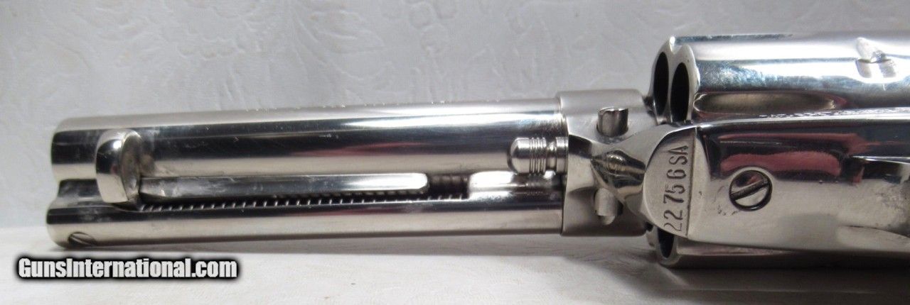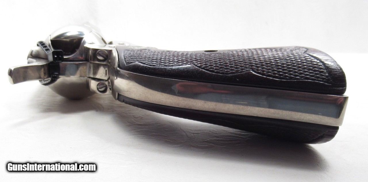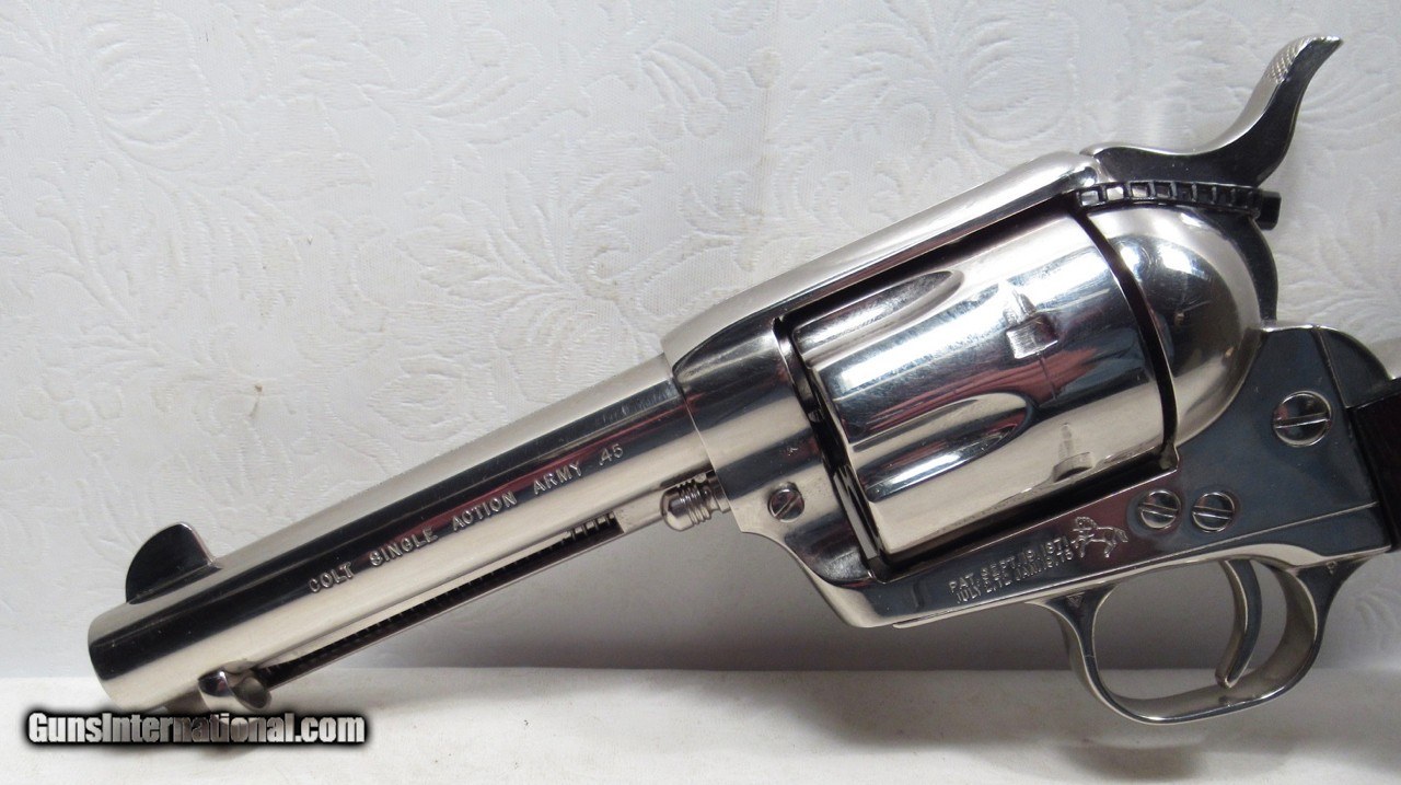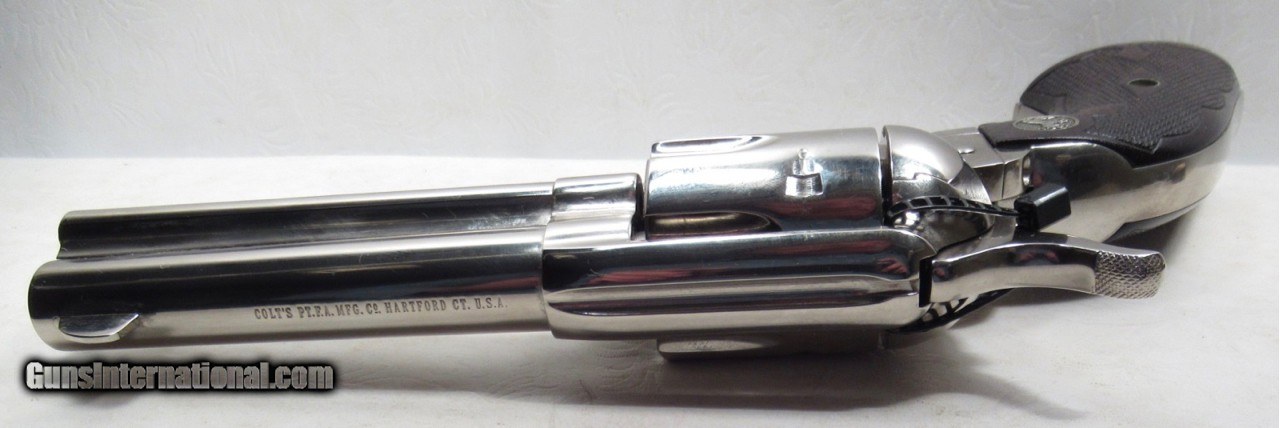 Description: Colt Single Action Army Revolver; Rare Second Generation Nickel; Serial No. 22756; Made 1958; .45 Caliber; 4 ¾” Barrel; Factory Nickel Finish in Black Box with All Papers and Tools; Gun Appears to be New; Great Non-Original Fleur-de-lis Medallion Grips; Very Hard to Find Limited Produced 2nd Gen Colt 45 Revolver; See All Photos for Condition; No Texts; Call (254)541-5765 or Email Only; PERSONAL PROPERTY of Harold Wieser; NOTICE: We Do Not Do Any Consignments - All Items Listed are Owned by Us - NO SALES to New Jersey or New York City - Antiques Only to Massachusetts and California; Price: $8,975 + $45 S&H Via USPS PRIORITY MAIL; Payment Address: Harold Wieser - 1466 U.S. Hwy 77 - Rosebud, TX 76570; SEND PAYMENTS VIA USPS PRIORITY MAIL; BEWARE of SCAMS!!! – DO NOT SEND MONEY or CORRESPONDENTS ELECTRONICALLY UNLESS YOU HAVE SPOKEN to HAROLD WIESER FIRST! 254-541-5765 SOLD |