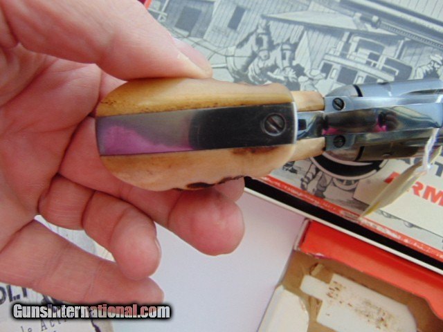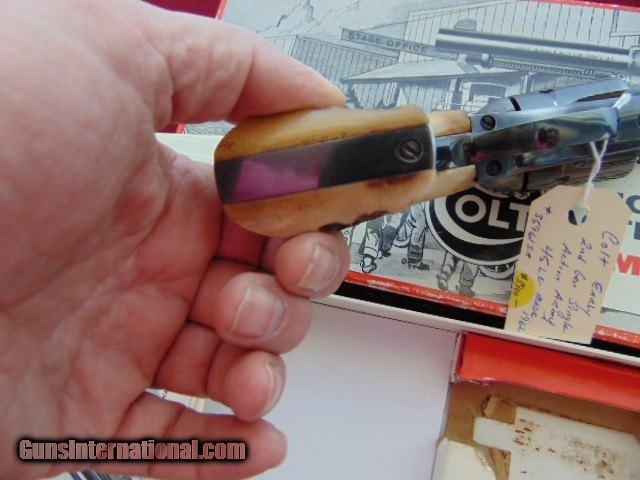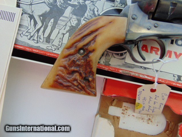Description: COLT SINGLE ACTION ARMY REVOLVER 2ND GEN. MADE IN 1962. SER# 35961SA. NICE CONDITION. CASE COLORED FRAME. CALIBER 45 COLT , 5 1/2 INCH BARREL WITH A BRIGHT BORE. NICE TIGHT CRISP ACTION THAT FUNCTIONS FINE. COMES WITH NICE STAG GRIPS. COMES WITH MANUALS AND A STAG COACH BOX. CORRECT VINTAGE BOX BUT PROBABLY WAS ANOTHER GUN. INSIDE OF THE BOX IS MISSING THE BARREL SECTION. EASTERN BRANCH FIREARMS ADD 35.00 SHIPPING – HANDGUN USPS PRIORTY MAIL ADD 35.00 SHIPPING – LONG GUNS GROUND SHIPPING Questions e-mail or call Glen at Eastern Branch Firearms 207-215-5021 TERMS – PLEASE READ BEFORE I DO NOT HAVE A LAYAWAY OPTION ( WE ACCEPT CREDIT CARDS ) -- I GET ALOT OF REQUEST FOR TRADES, I WOULD PERFER NOT TO DO TRADES ON MY INTERNET LISTINGS PAYMENT OPTIONS- We accept money orders, cashier’s checks , bank checks. sorry no personal checks. We accept all major credit cards please add 3% to the ’s cash discount price.(Maine Residents to pay 5% sales tax) .Handguns and long guns do need to be shipped separate. PLEASE do not send payment via FED EX . USPS & UPS are fine. Thank you. We include a signed copy of our FFL with each firearm shipped. SAFTY NOTICE- Buyer is solely responsible for determining that a used gun is safe to shoot. The firearms offered have not been test fired but have been given a visual inspection only for purposes. It is a requirement that every used firearm is inspected by a qualified gunsmith before firing. By , the buyer agrees to hold seller harmless against damages, injury, or death caused by defective merchandise. RETURN POLICY- All firearms come with a 3-day non firing , non messing with ( turning srews ,taking apart,removing parts, scoping. firing, cleaning or messing with in anyway) inspection/return privilege.Inspection is based on a visual review of the gun to confirm the gun is in the condition stated. In the case of a return, buyer pays all shipping charges & if paid for with a credit card buyer absorbs the 3% credit card charges . So please ask questions BEFORE you bid. Thanks for Looking and Good Luck!! U.S. sales only, no exports…this includes antiques. I will ship to third party for exporting SOLD Curio/Relic: Yes |