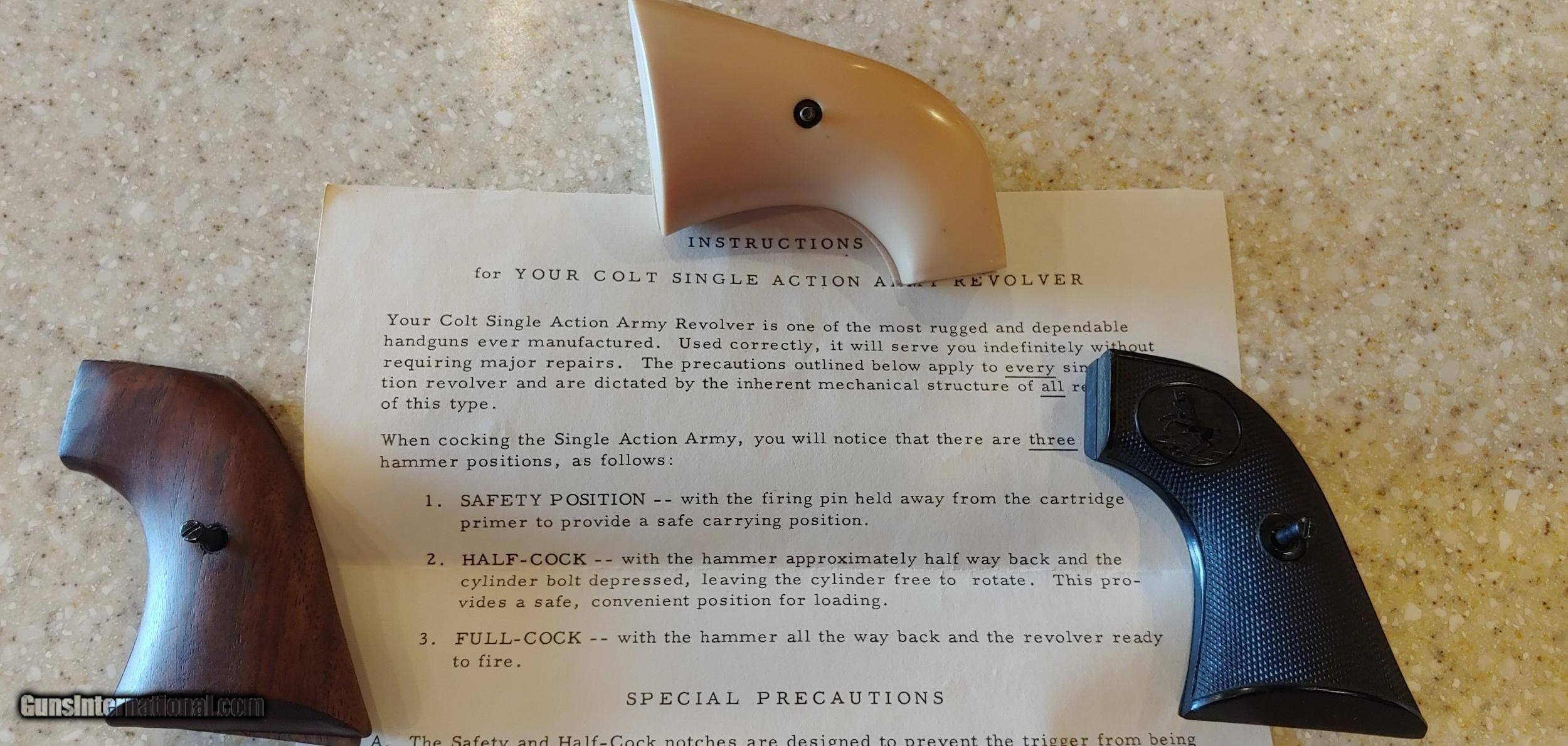 Description: Used Colt SAA 2nd Gen 38 special Date Of Manufacture 1956 Original box and paperwork 3 extra grips Great buy for the price Very good condition Buyer pays shipping SOLD Serial Number: 6862SA |