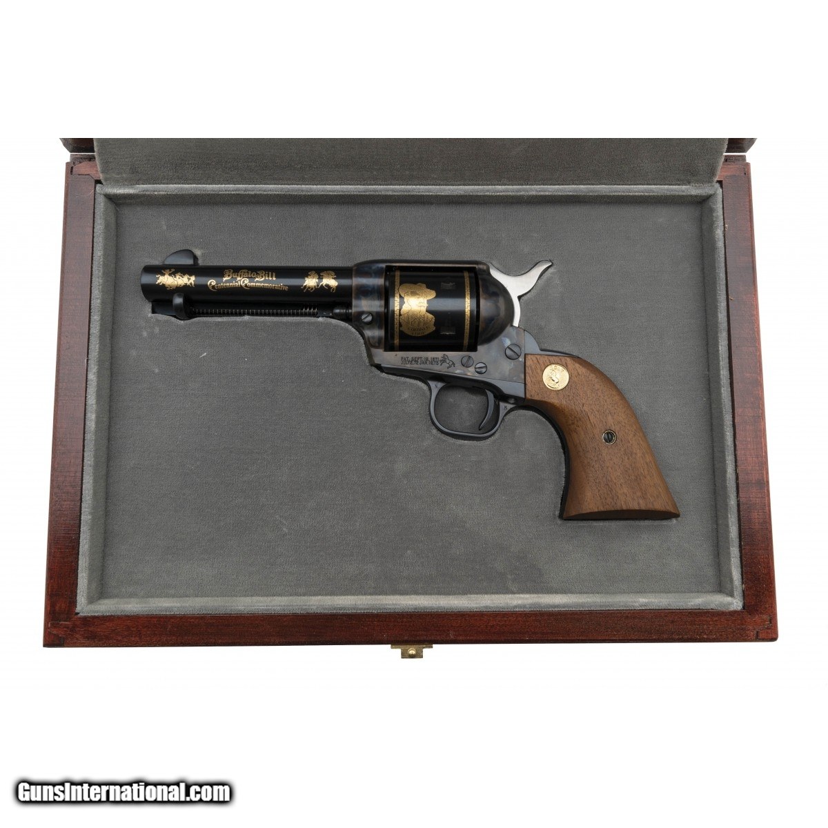 SN:CBBC0036. Manufactured circa 1983, .45 long Colt with a 4.75"" barrel. Bore is in excellent condition. Cased Buffalo Bill commemorative single action revolver with engraved cylinder/barrel and Colt medallion wood grips. Overall condition is excellent. Comes with case and box. (Consignment)