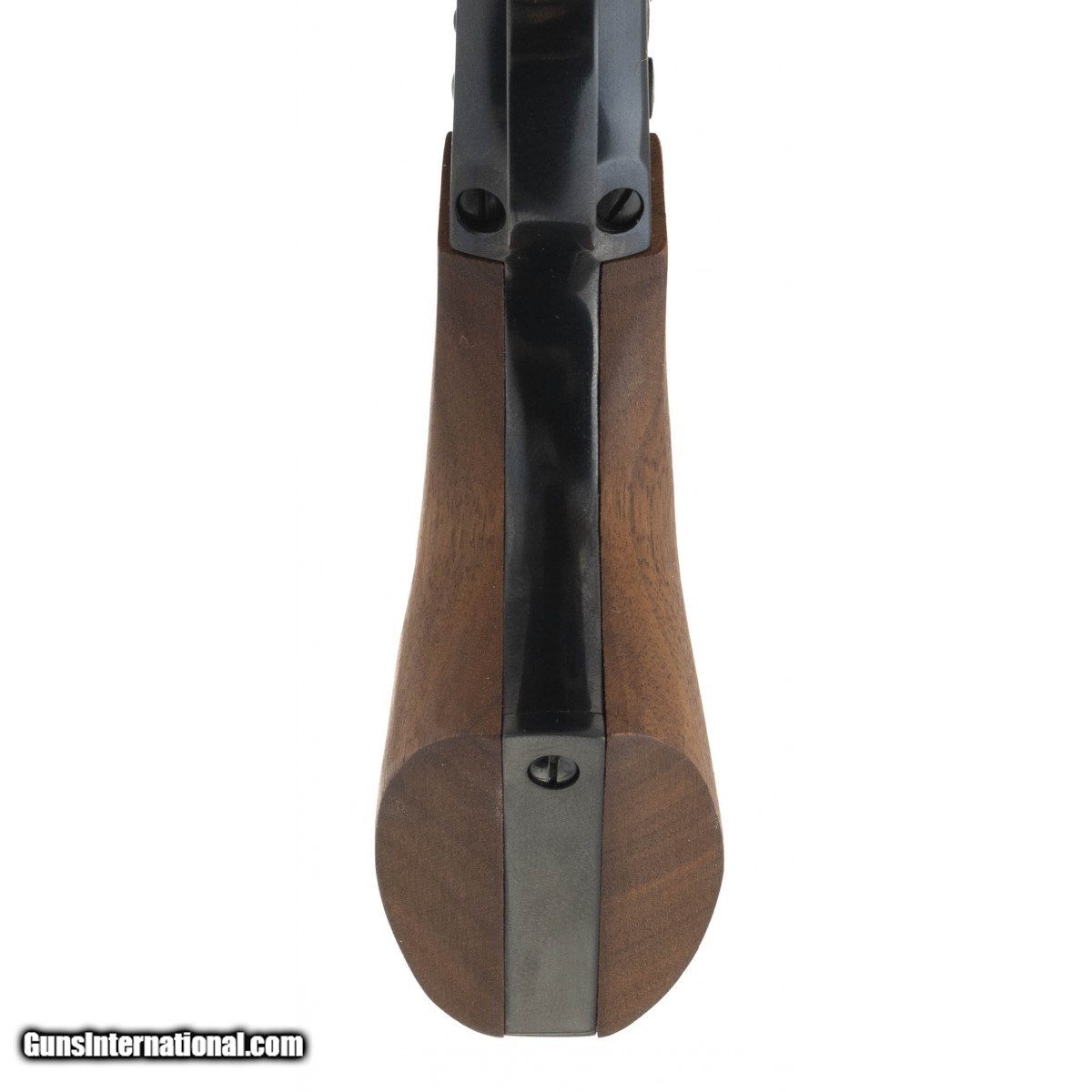 Description: " SN:CBBC0036. Manufactured circa 1983, .45 long Colt with a 4.75"" barrel. Bore is in excellent condition. Cased Buffalo Bill commemorative single action revolver with engraved cylinder/barrel and Colt medallion wood grips. Overall condition is excellent. Comes with case and box. (Consignment) SOLD |