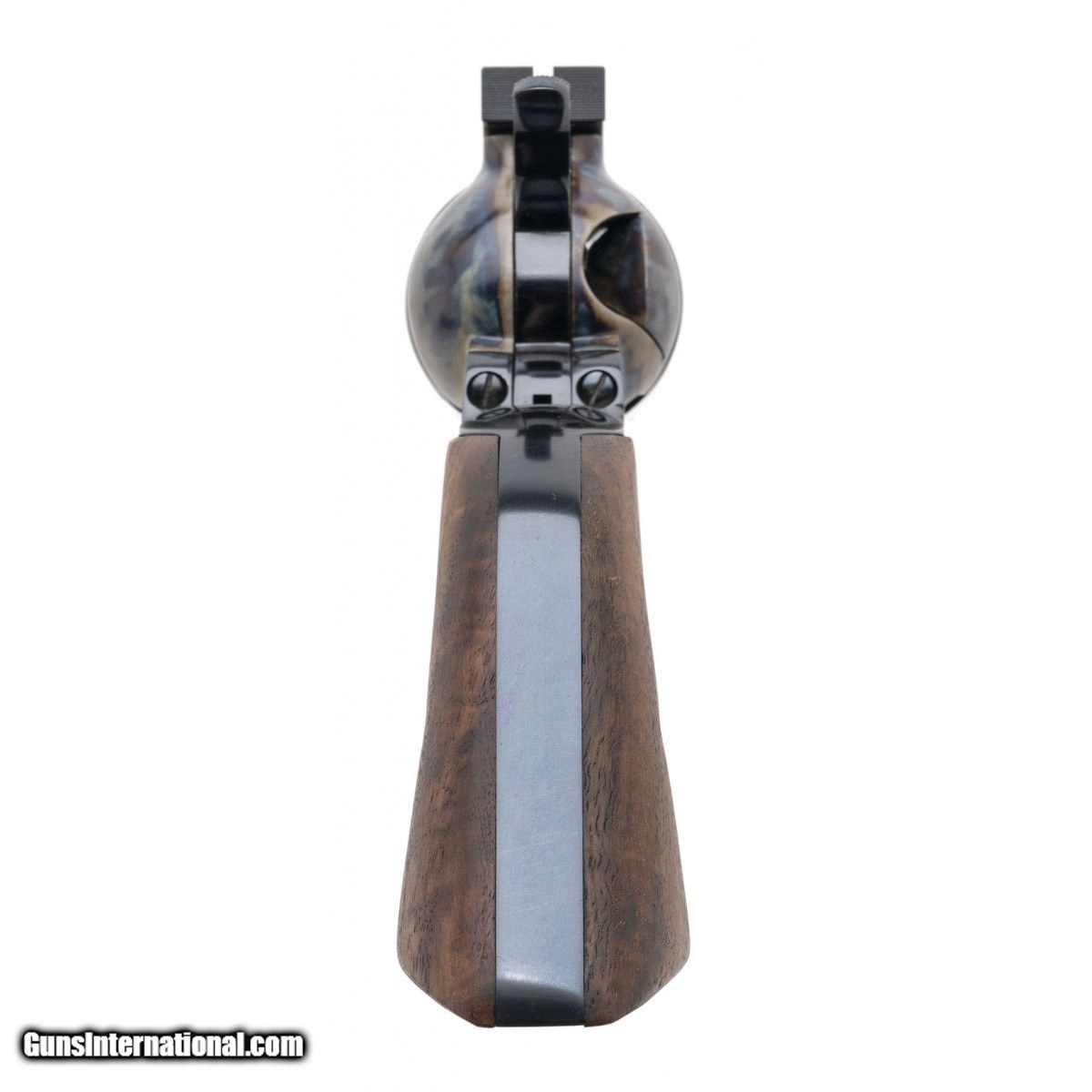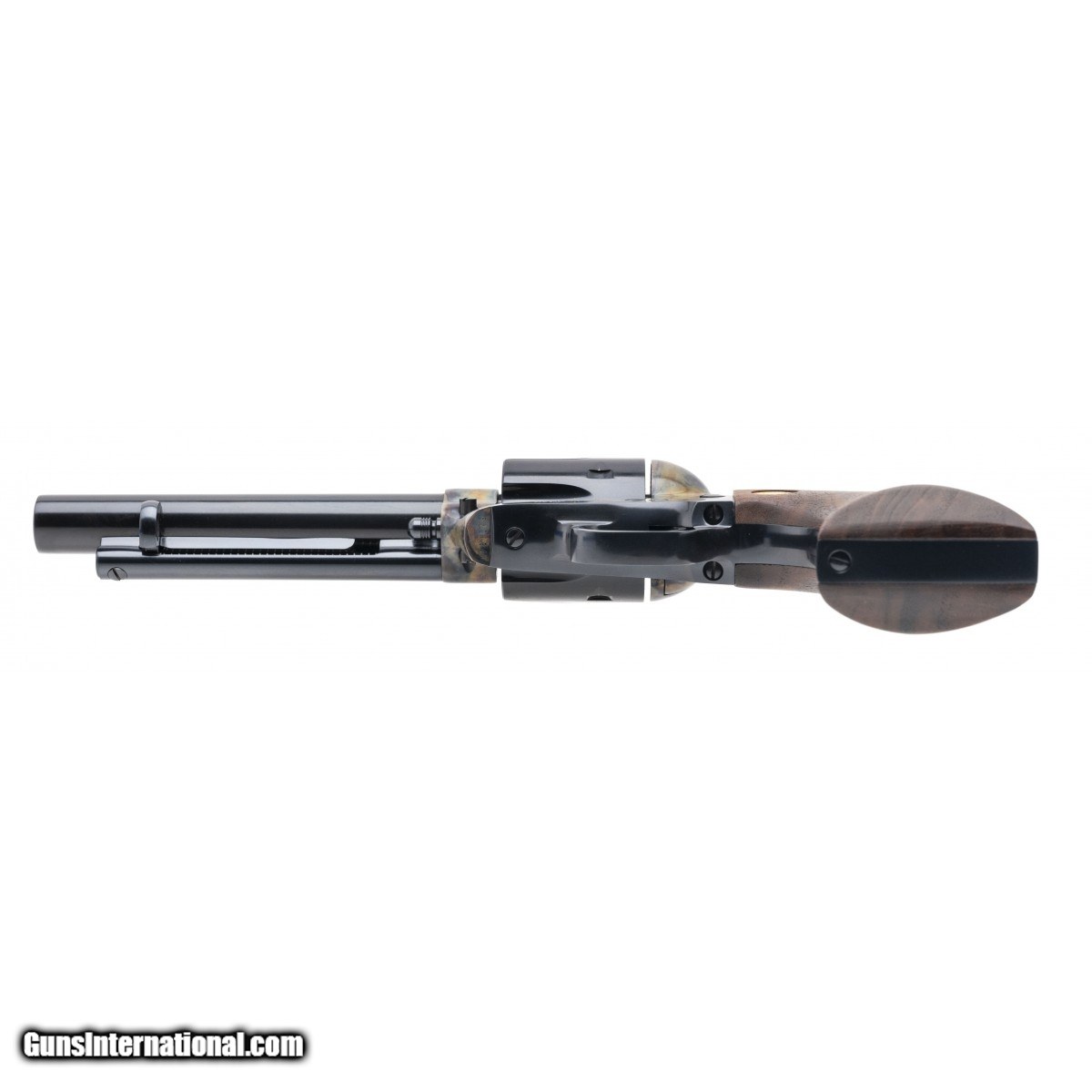 Description: " SN: NF21046. Modern production .44 Special with a 5.5"" barrel. 3rd Gen Single Action with adjustable sights, in scarce .44 Special cal. Has beautiful figured walnut grips and a slick action job by Joe Perkins of Classic Single Actions. Excellent condition with box. (Consignment) SOLD |