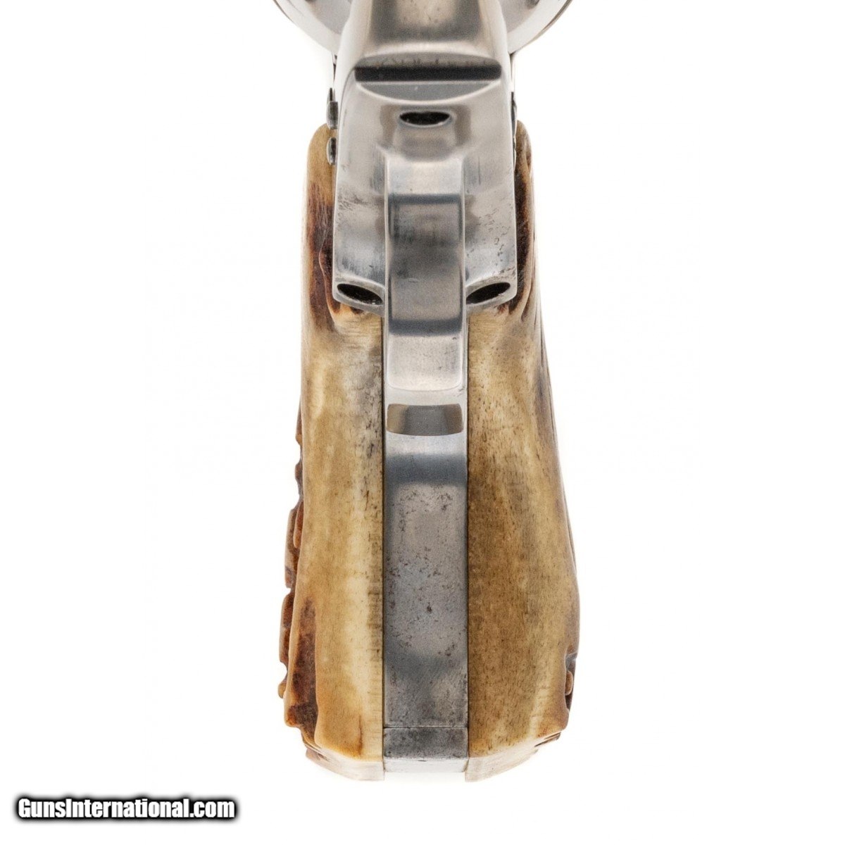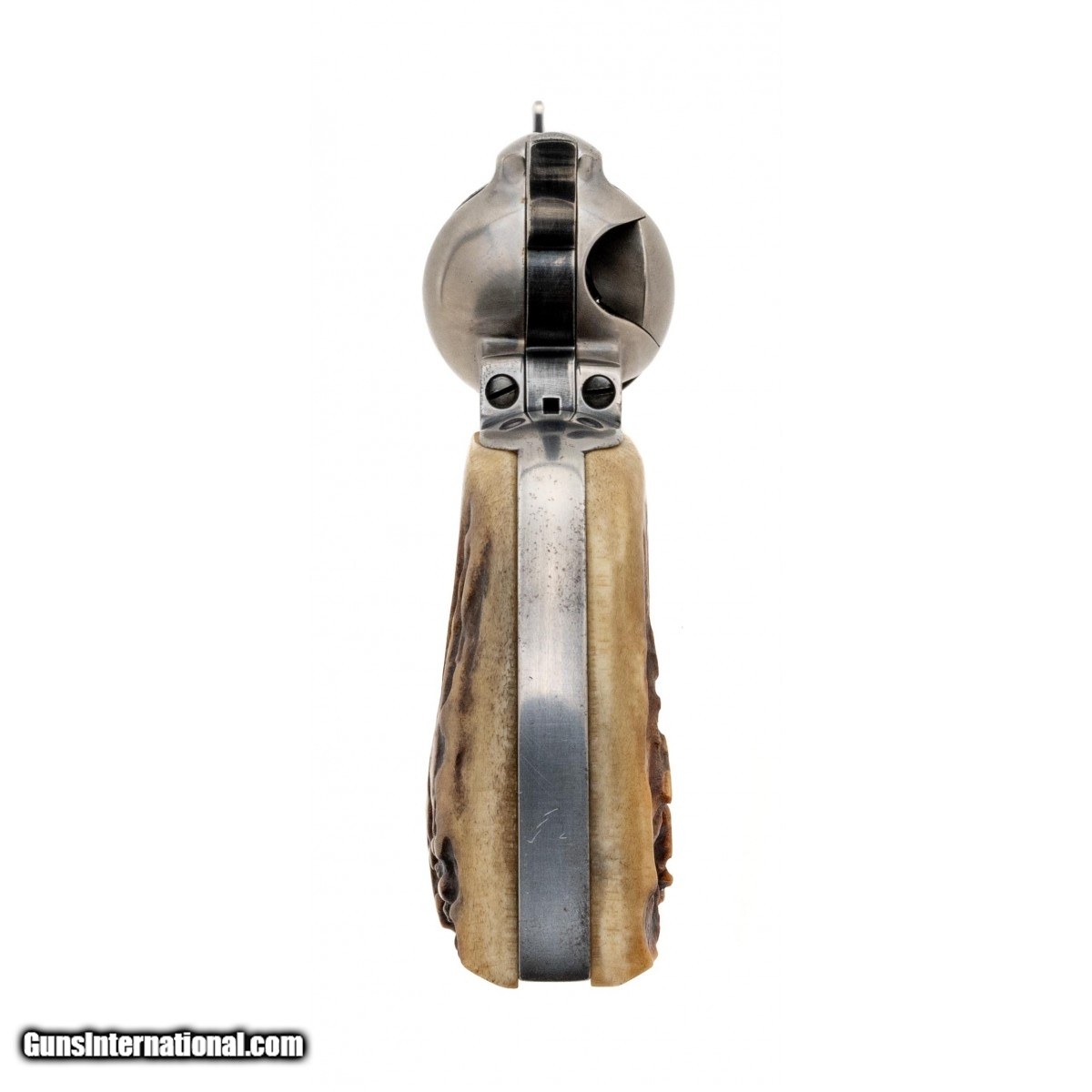 Description: " SN: SA06633. Made in 1978, .45 Colt caliber with a 7.5"" barrel. Bore and action are excellent. Single Action revolver with an ""aged"" no finish look. Has genuine stag grips. Very good condition overall. SOLD |