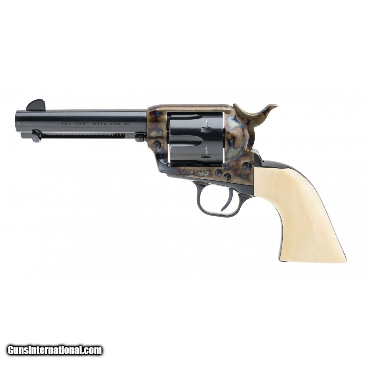 SN: 86254SA. Made in 1977, .45LC with a 4.75"" barrel. Custom 3rd Gen Single Action. Has gorgeous case colors by John Schultz at Frontier Classics, slick action job by Bob James and one piece ivory grips by Nutmeg Sports. An outstanding piece, in excellent condition. The box has no end label. (Consignment)