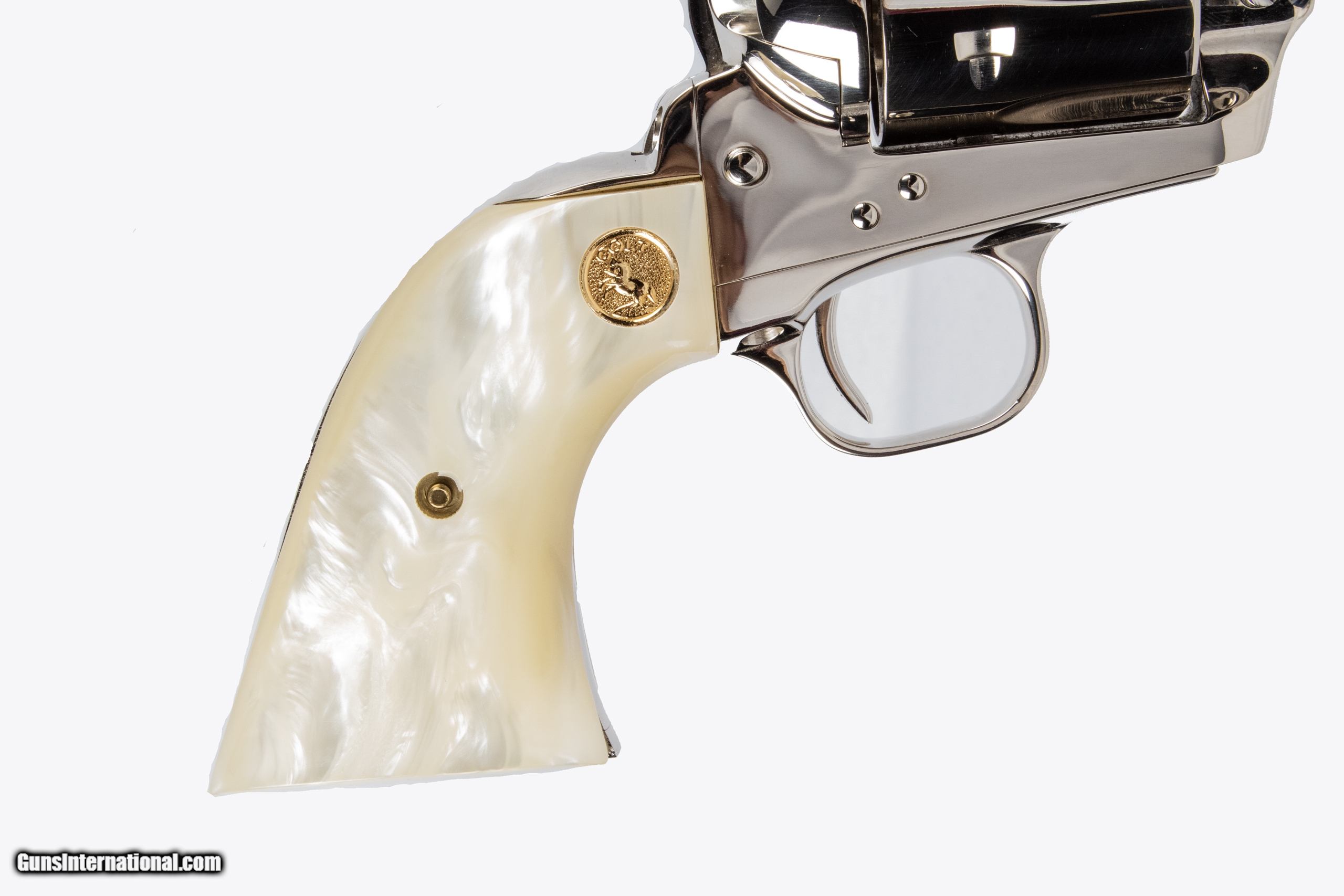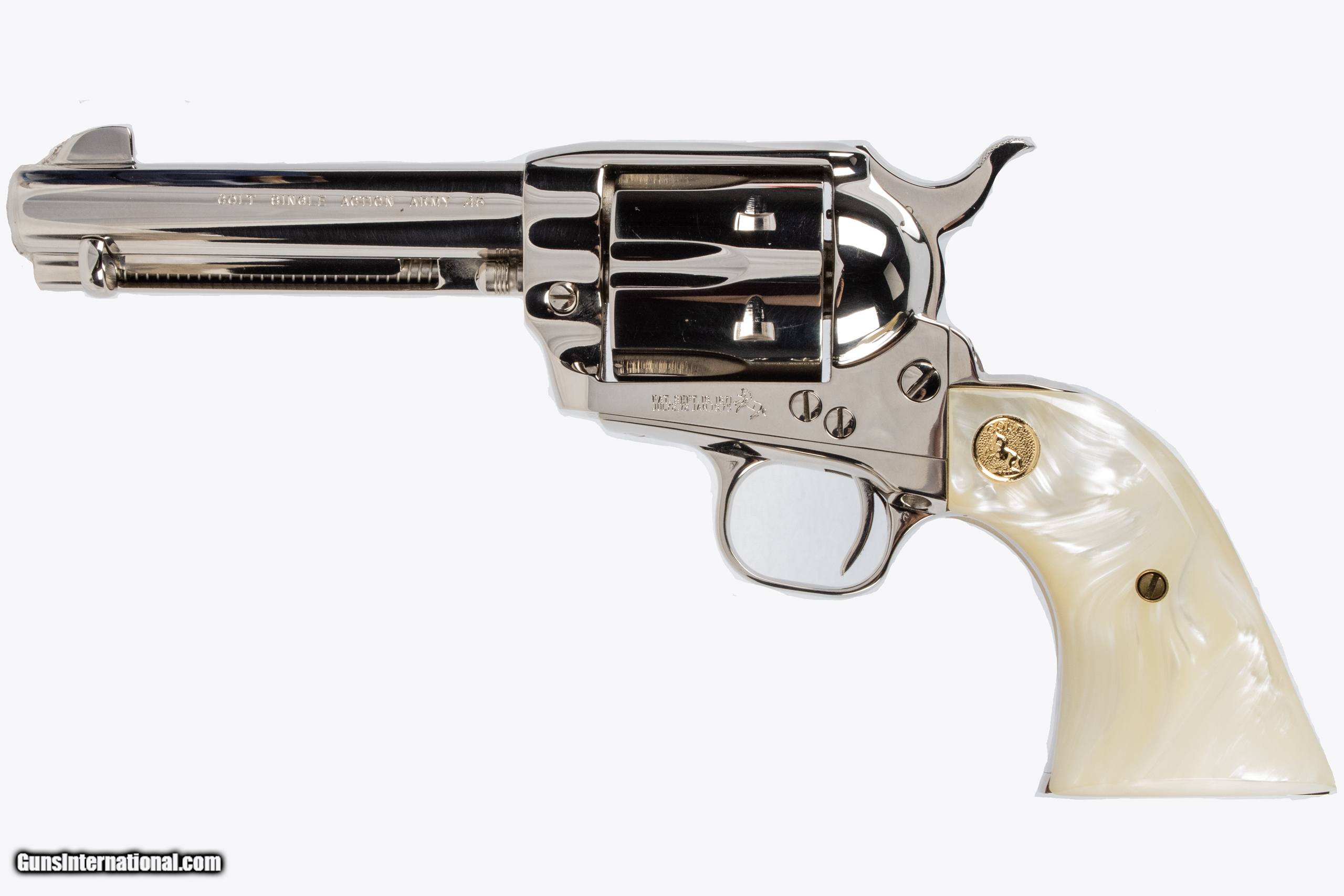 Description: Rare unturned and unfired Colt Single Action Army 3rd Gen chambered in 45 Colt with a 5 inch barrel, bright & shiny bore and a case. This firearm comes with faux pearl grips and the serial number is S29015A. The NRA grading condition for this firearm is Excellent. Dury's Lifetime Warranty All firearms purchased from Dury’s Gun Shop, Inc., NEW or USED, are covered by a lifetime warranty. We will repair or replace, at our discretion, any firearm purchased from Dury’s Gun Shop, Inc. for as long as it is owned by the purchaser. This warranty is not transferable. WE BUY GUNS! NO COLLECTION TOO BIG OR SMALL FOR OUR GUNS INTERNATIONAL CUSTOMERS ALL OF OUR FIREARMS CAN BE PURCHASED DIRECTLY FROM OUR DURY'S GUNS ! SOLD Manufacturer: Colt Model: SAA 3RD GEN Caliber Info: 45 LC Barrels: 5inches |