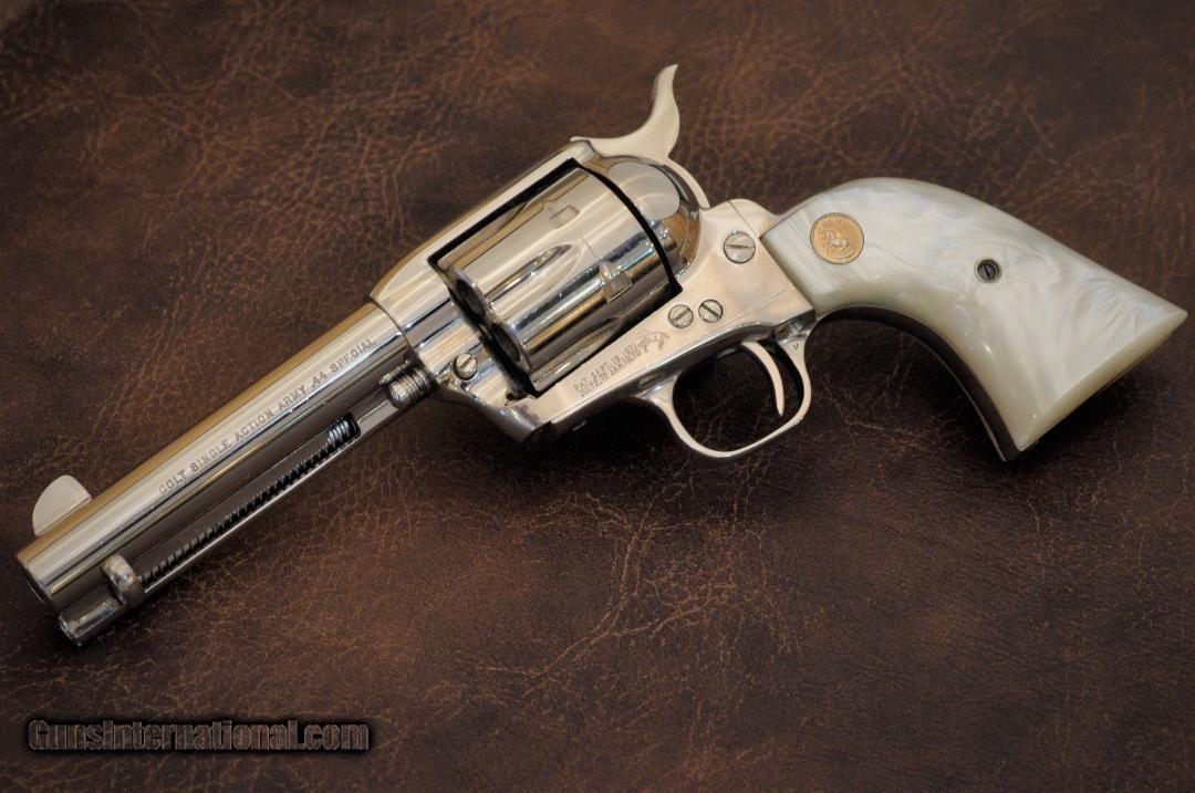 Description: 1979' Colt SAA. .44 special 4-5/8th" barrel Retains 98% original finish Excellent Timming Original faux Prearl Handle Grips No-box or papers PRICE $2700.(SOLD) Questions call Bryan or text 720-271-2794 Mountain Guns in Conifer, CO. SOLD Manufacturer: Colt Model: SAA Serial Number: SA 28327 Barrel Length: 4-5/8th" inch Condition: Excellent Metal Condition: 99% original finish Wood Condition: Pearl Handles Bore Condition: Excellent |