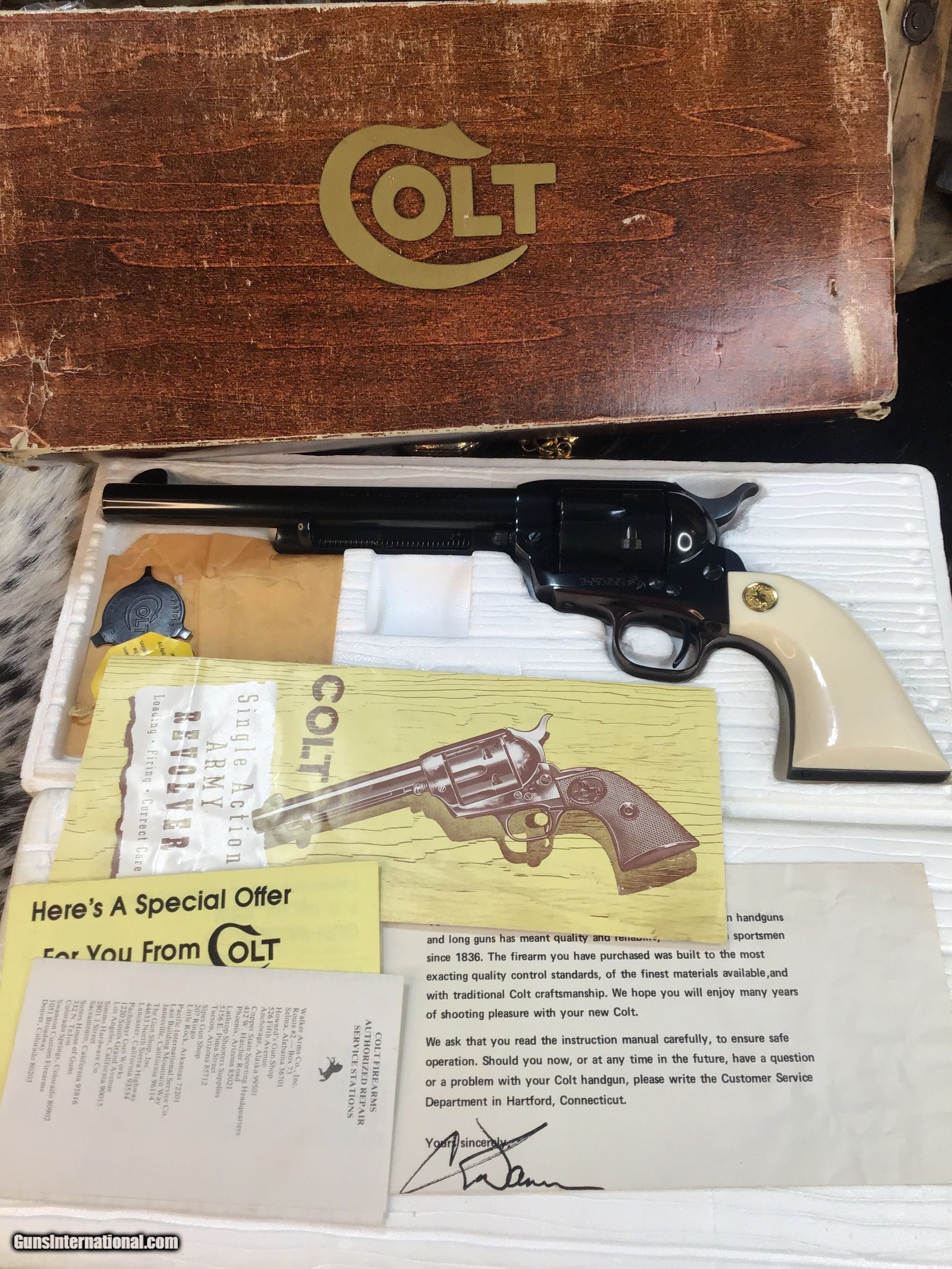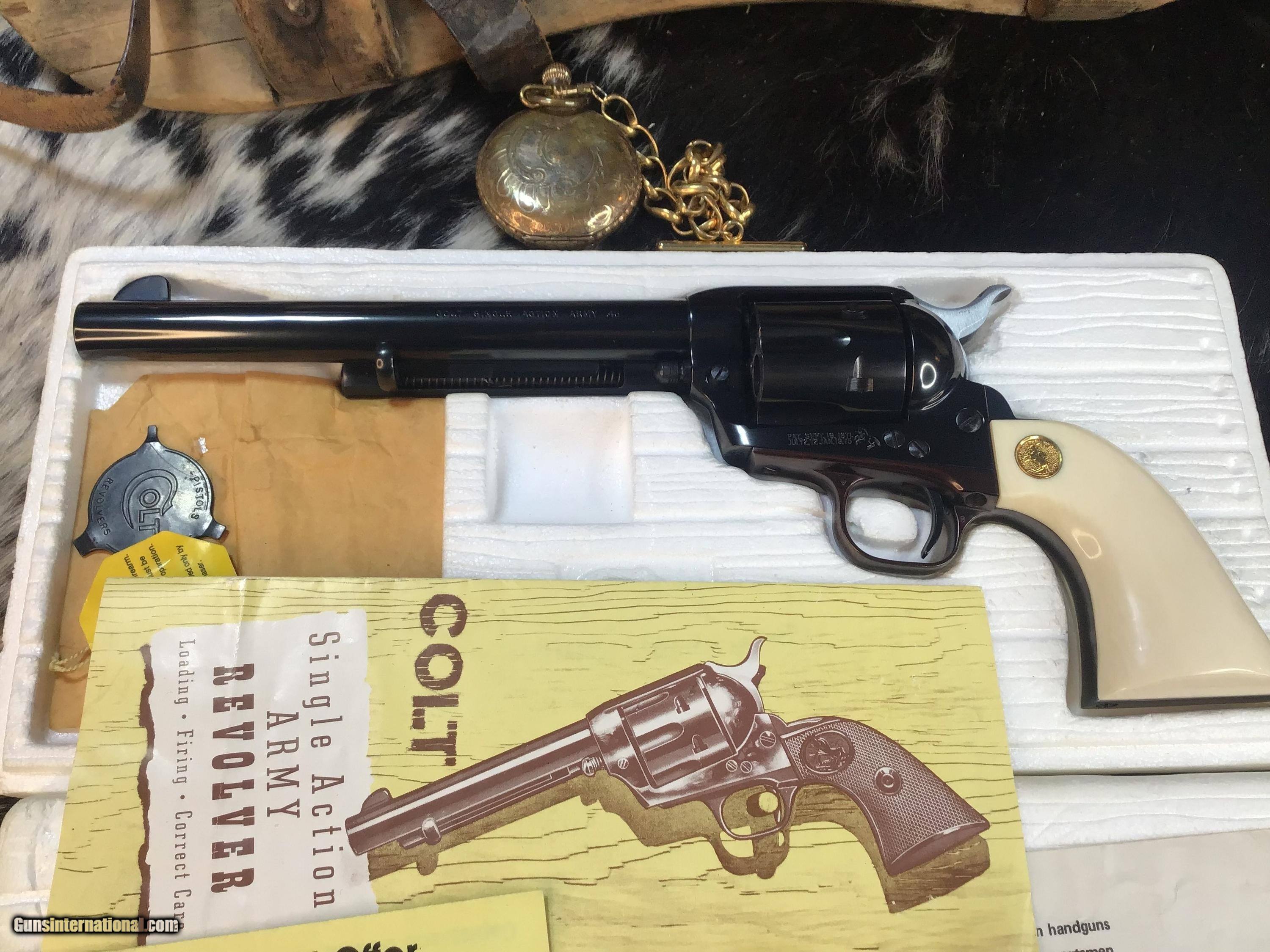 1978 Colt SAA , .45 Colt , Elephant Ivory Grips, 7.5” , Boxed, Unturned & Unfired. Trades Welcome