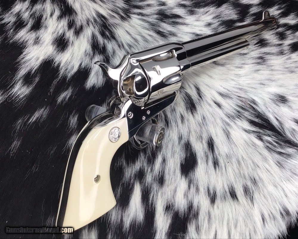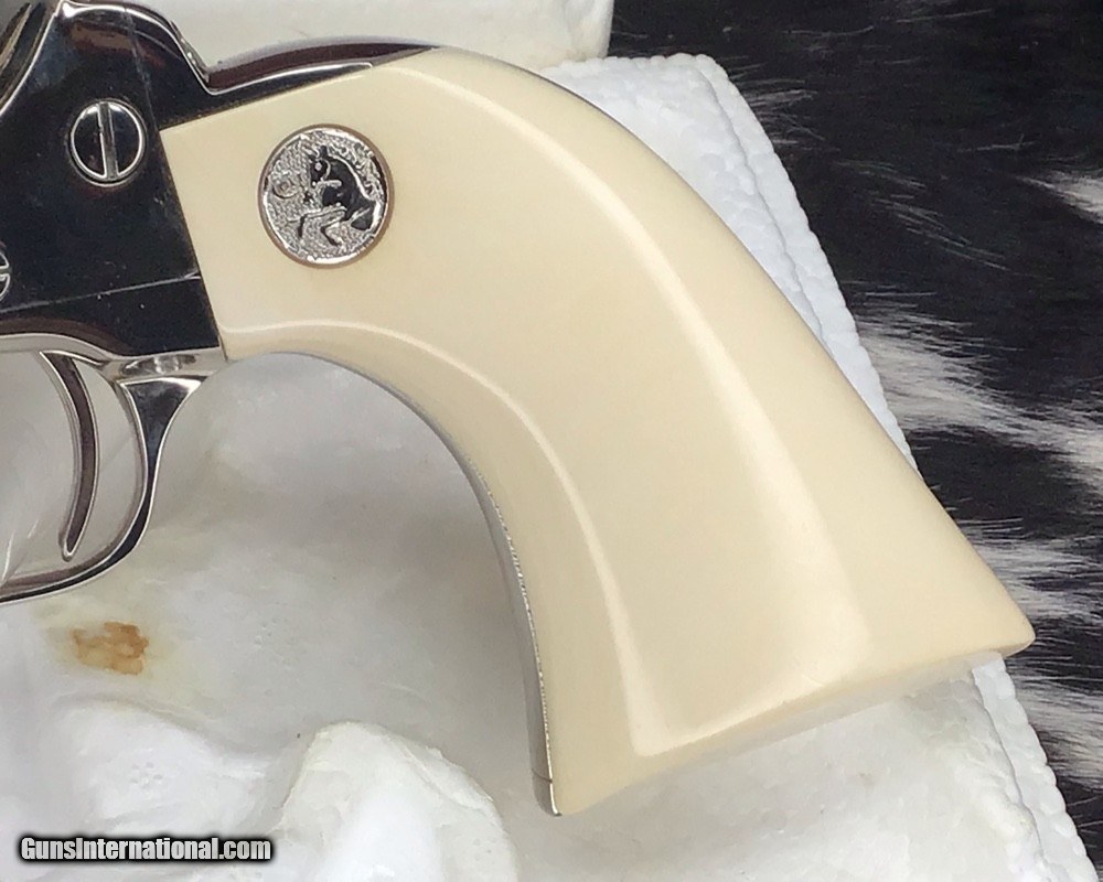 1989 Colt SAA, Nickel, 7.5 inch, .45 Colt, Boxed, Ivory Grips,