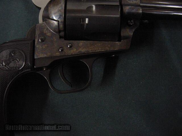 Description: 5071 Colt Cowboy 45 colt 5 1/2 inch barrel, single action, as new in box,no drag line, 99.9%,correct serialized box and papers. Blue barrel, case colored frame.NOT A MARK ON IT. SOLD |