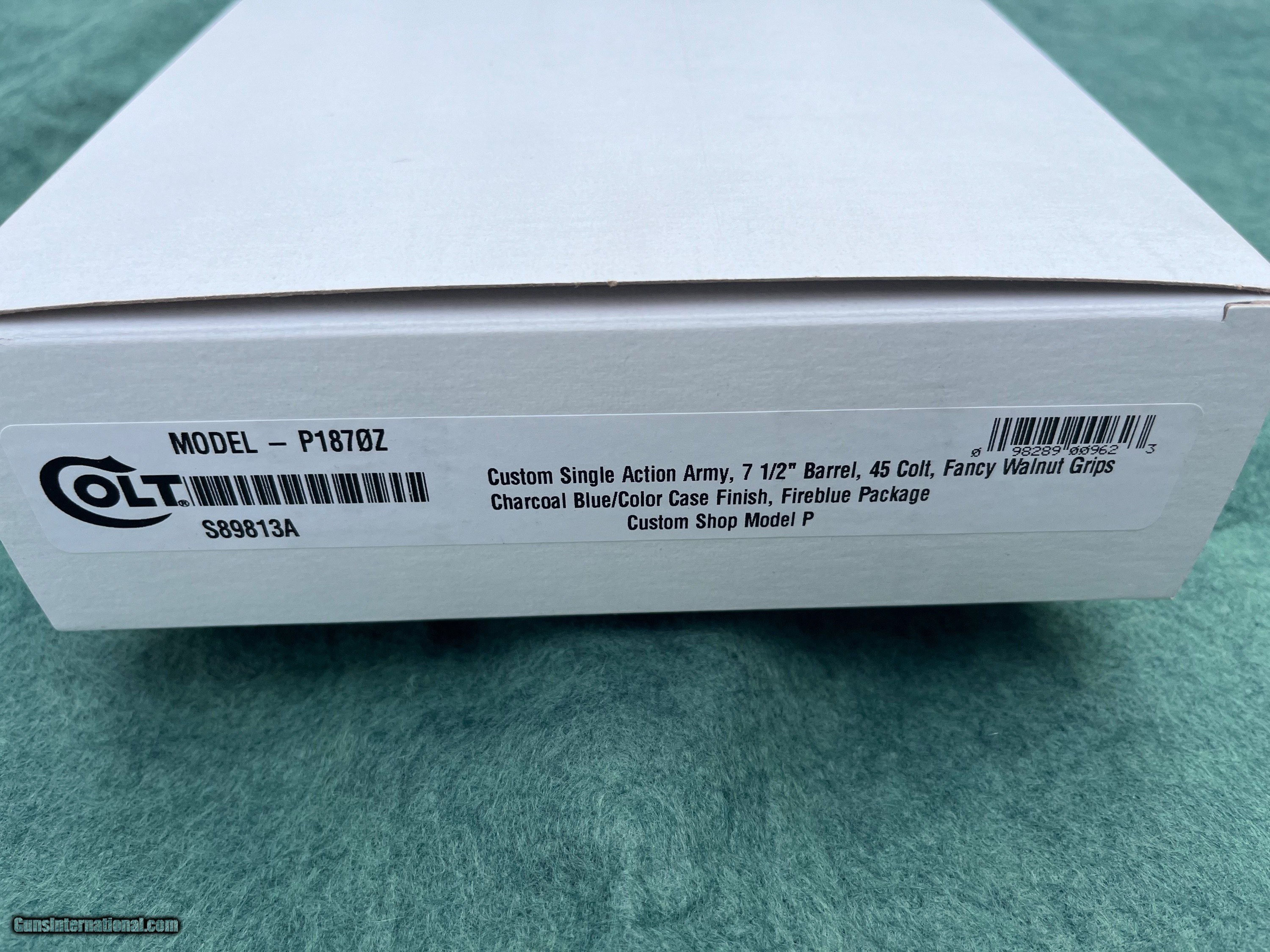 Description: For sale is a 7 1/2" 3rd Generation Colt Single Action Army, in 45 Colt. This pistol is brand new, being manufactured in 2024. This extremely rare and seldom seen Custom Shop pistol sports a beautiful deluxe Charcoal Blue Finish, Turnbull Color Case Hardened Frame and Hammer (the hammer is rare, typically being blue with brushed metal sides), along with Qualified Fire Blue Screws (screws all face the same direction), action job, and Burl Walnut One-Piece grips. This is by far the best finish job I have seen out of the Colt Custom Shop in a long time. The case color is deep and vivid, and the charcoal blue shows hues of bright blue, purple and fire blue. If you have never seen charcoal blueing in person, it is something to behold. It beats Colts Royal blue hands down. *This pistol is brand new. Any smudges you see are factory grease/oil. Asking $4,999 delivered. *Layaway Available* SOLD Handgun Caliber: .45 Colt Manufacturer: Colt Model: SAA Condition: New |