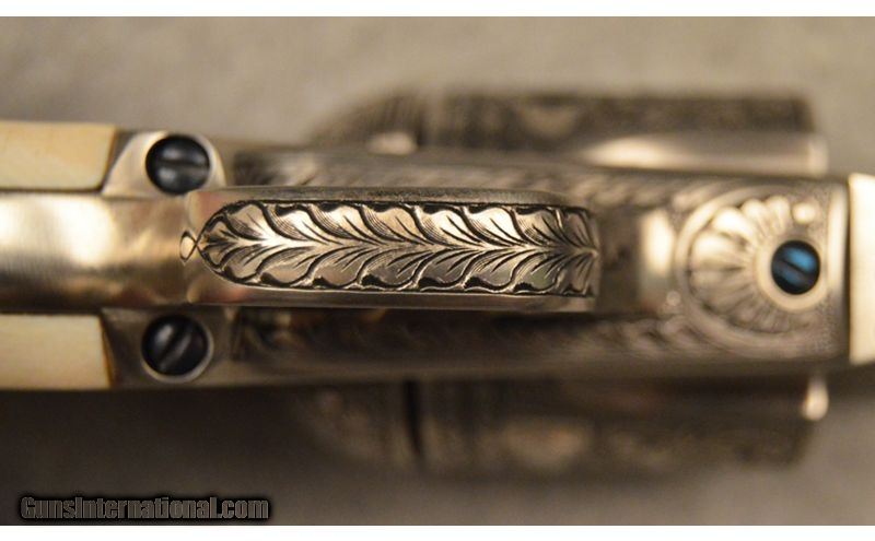 Description: Colt Sheriff's model with full coverage "D" style engraving by Master Engraver John Adams Sr. .44 Colt SOLD Metal Condition: Excellent as new and custom embellished Barrels: 3 Butt Pad: Birds Head Item Location: Fort Worth, TX |