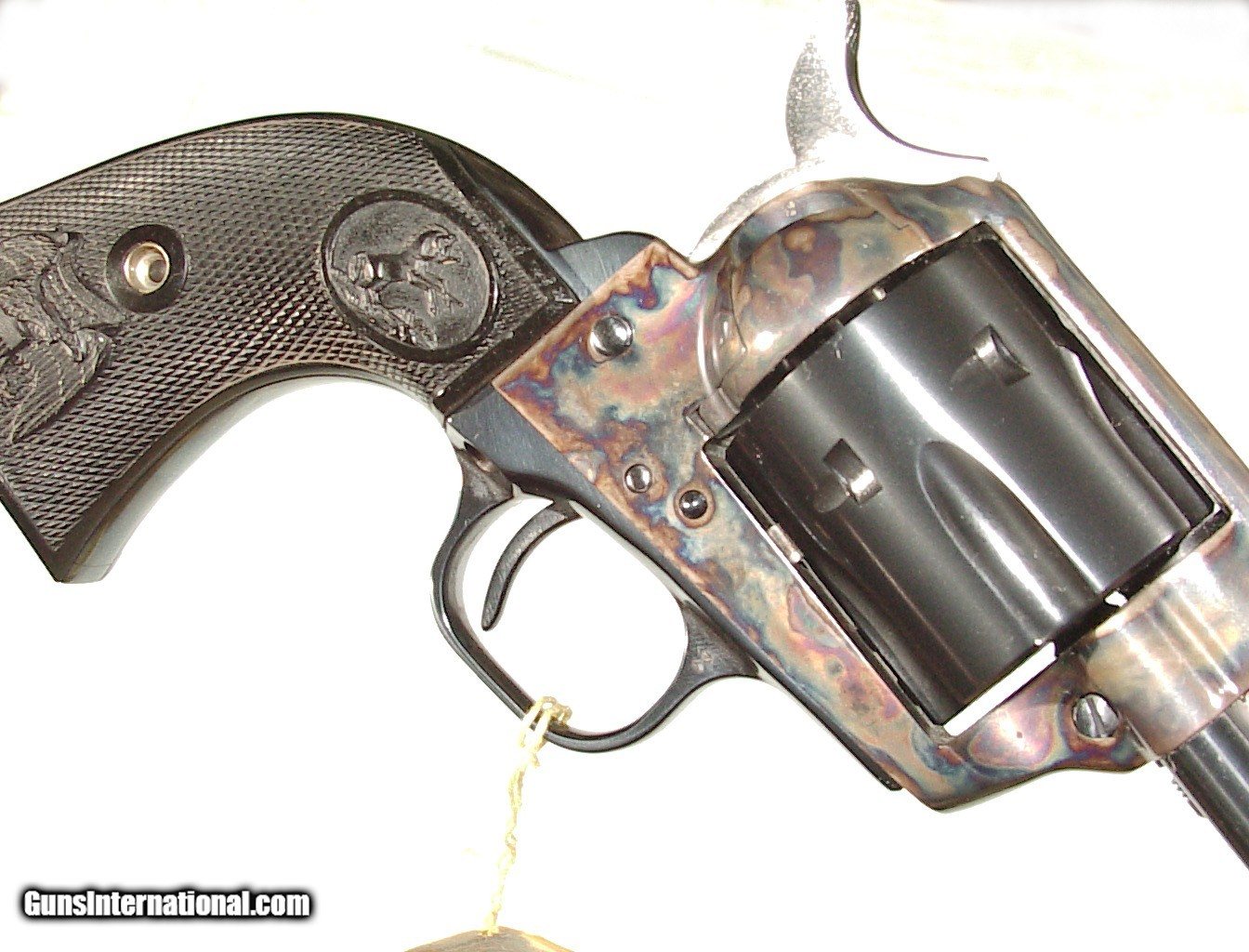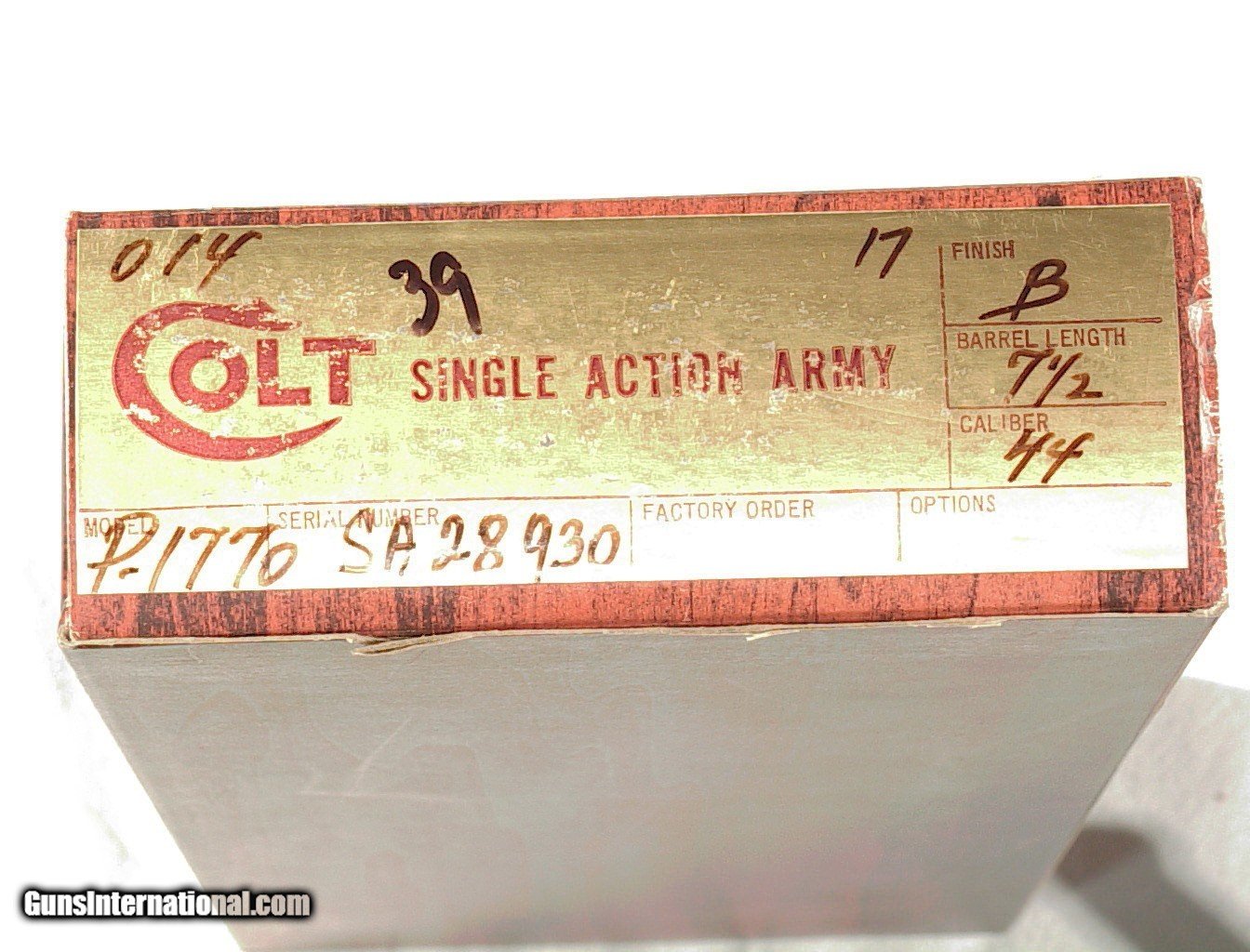 Description: .44 special caliber, 7 1/2" barrel. Blue and Casehardened finish with checkered eagle grips. In 100% new original condition. This is as good as I have seen. In it's original numbered factory box with papers and factory Colt letter. SOLD |