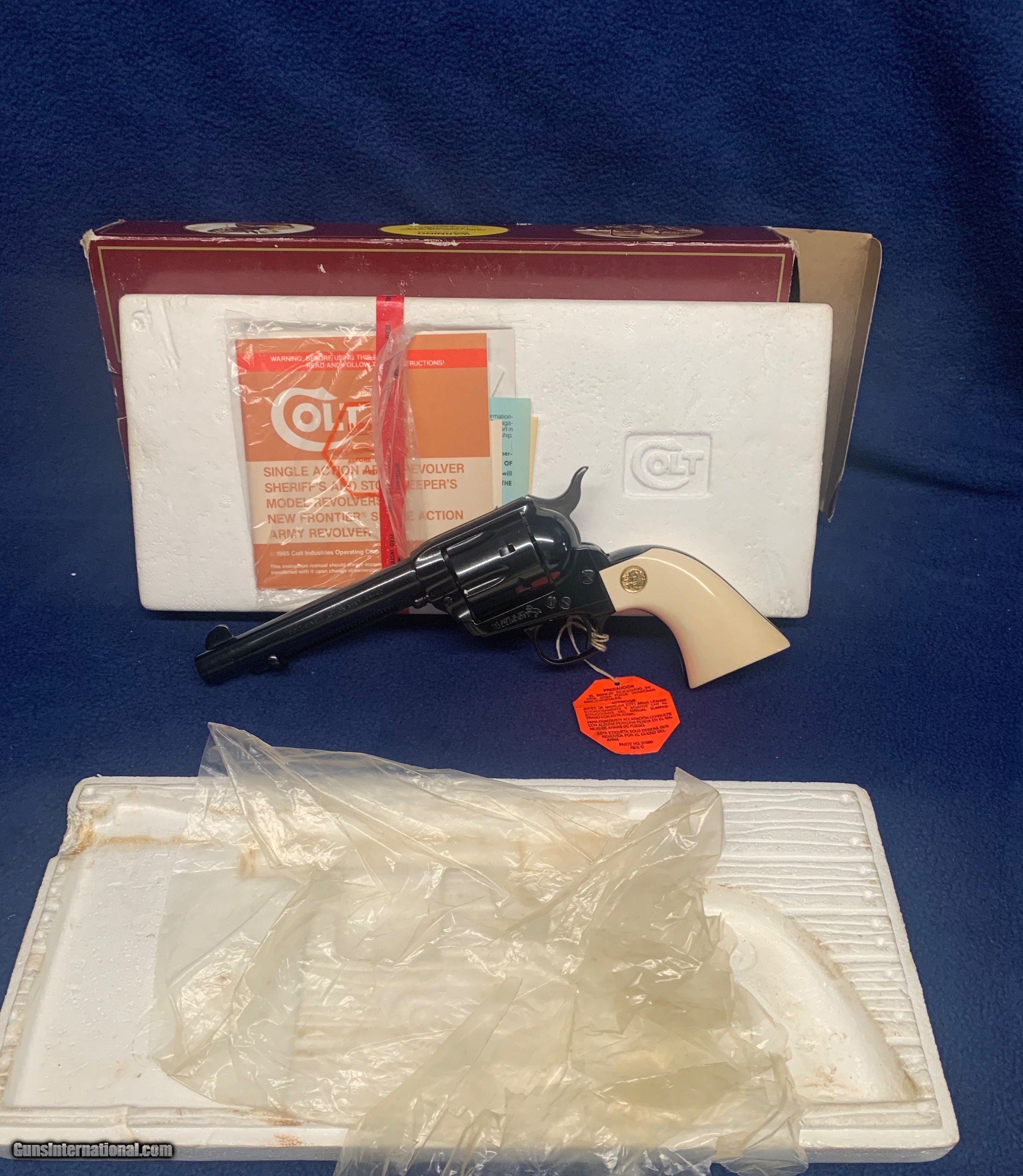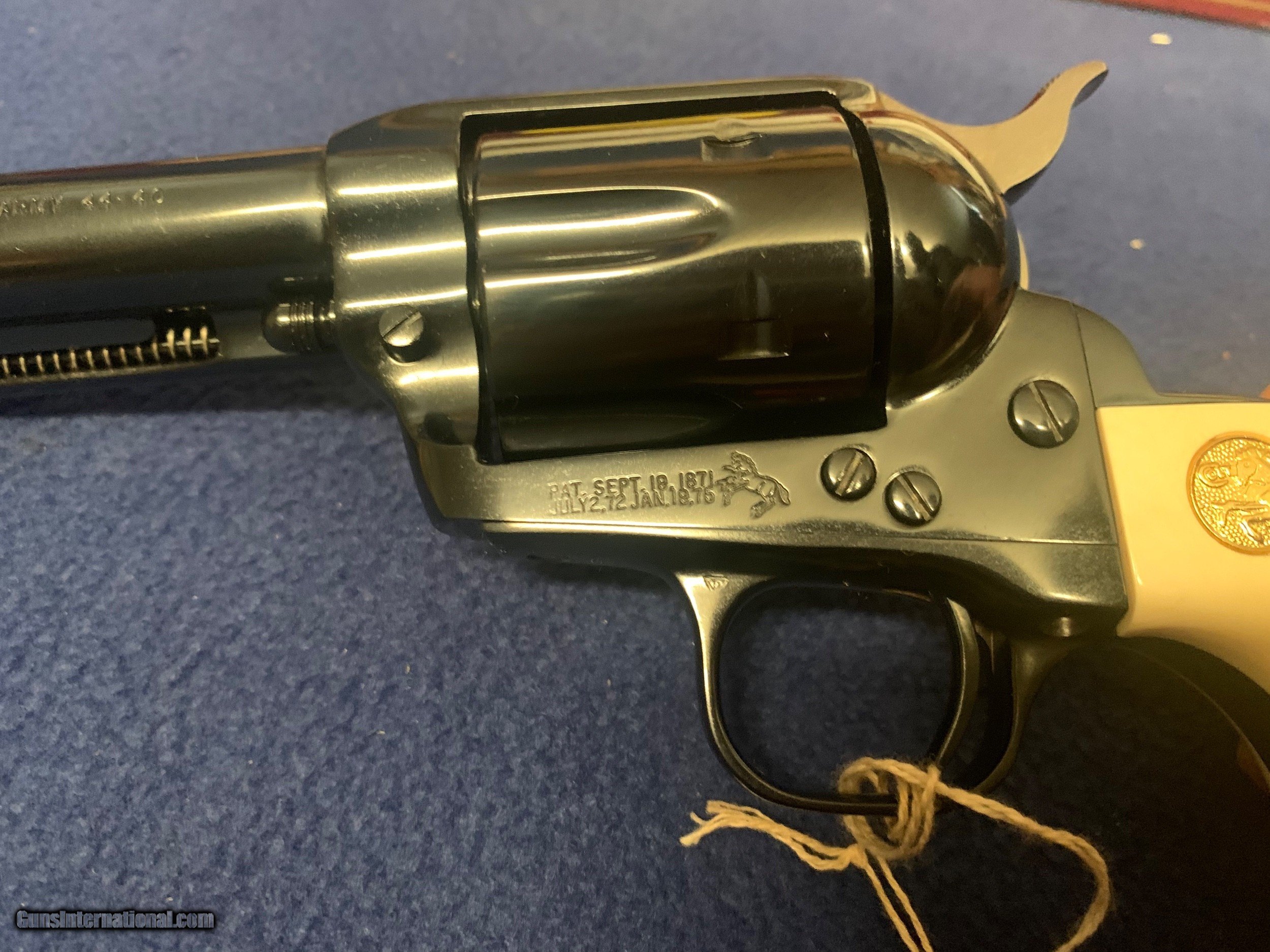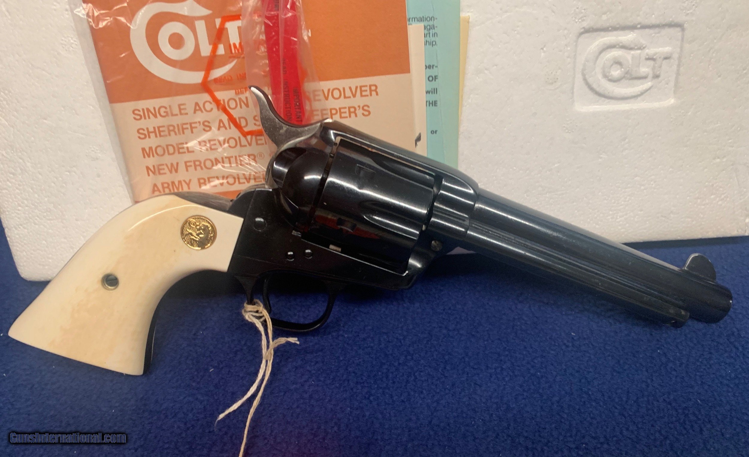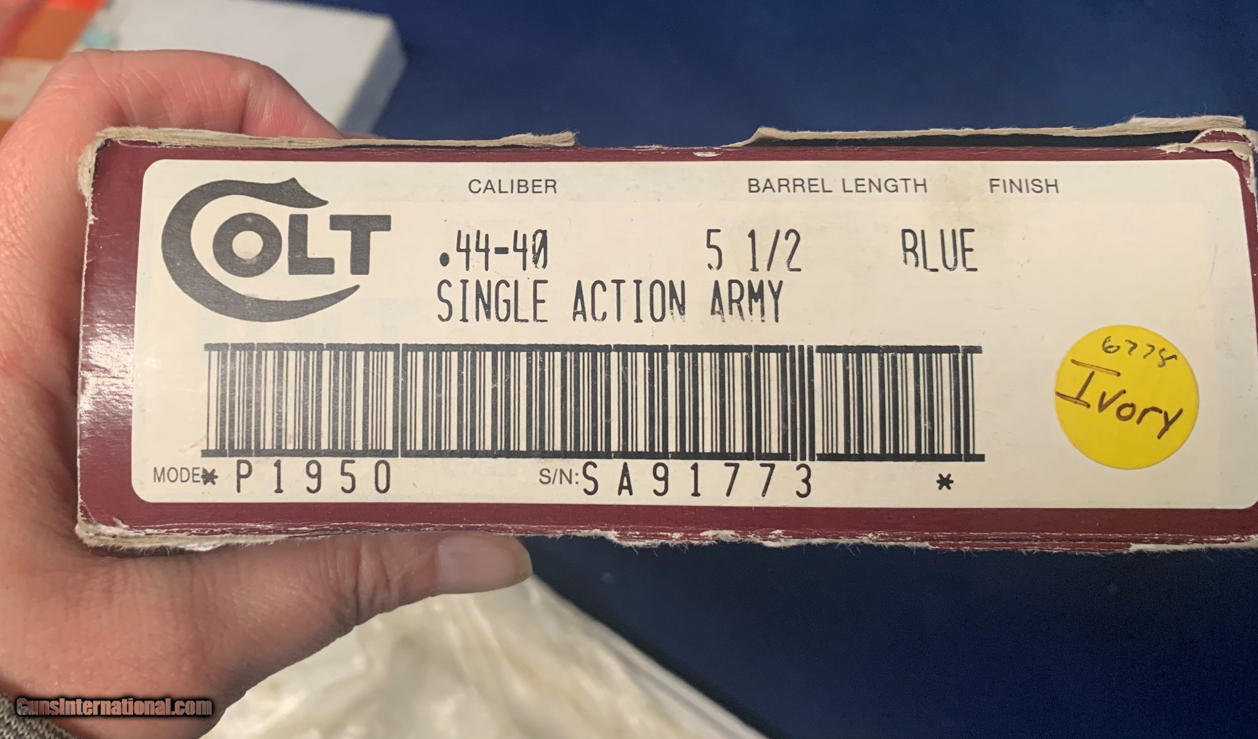 Description: Sale pending!!!!!Colt 44-40 Single Action Army 5 1/2 inch Royal Blue Factory Ivory custom shop pistol As new in box 3 day inspection Shipping is $50 Priority Mail - Insurance optional Certified Checks or Money Order Ohio residents add 7.25% tax No California sales FFL required SOLD |
