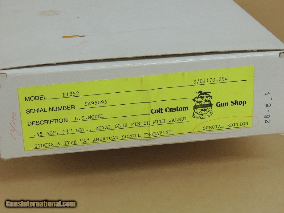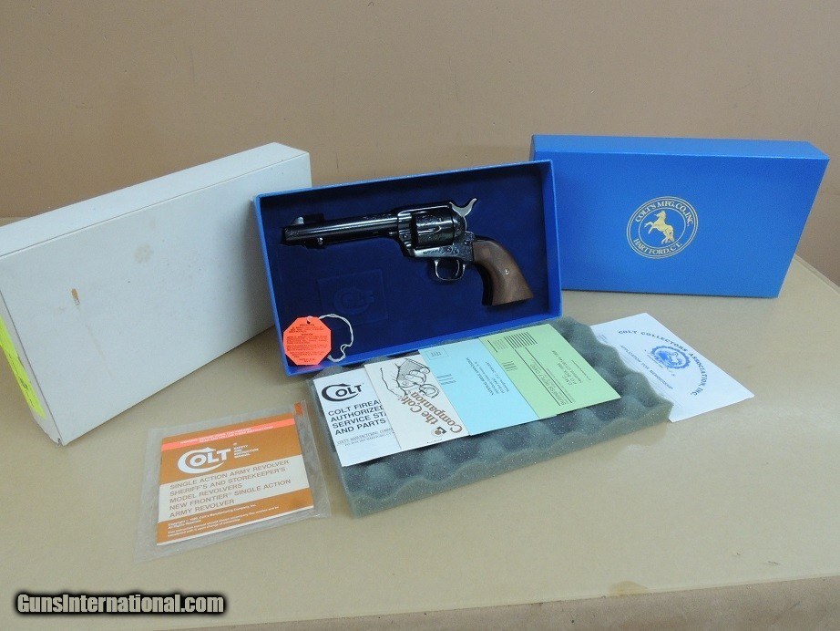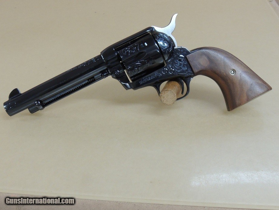 Description: Colt Factory Engraved .45 Acp Single Action Army in the Box, 5 1/2" Barrel, Full Blue Finish, Walnut Stocks, Third Generation, Factory Engraved in A coverage, appears factory test fired in the Box with extras as shown $4850 *Please make sure to include our inventory number and or Item description in any and all text messages * No Sales to California *Please Use Our Inventory Number for Inquiries* Payment Options *Postal Money Order* Cashiers Checks *Personal Checks (Item held until Check Cleared* Layaway 120 days*No Interest*Pay any way, any time you like over the term *Deposit required *Credit Cards Visa or Master Card 3.5% fee added to total sale* GA residents 7% sales Tax Applies *Best Phone Number for Calls or Text 229-424-8450* Shipping & Insurance $50.00 SOLD |