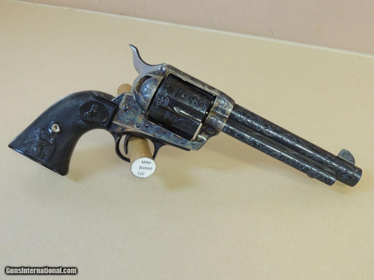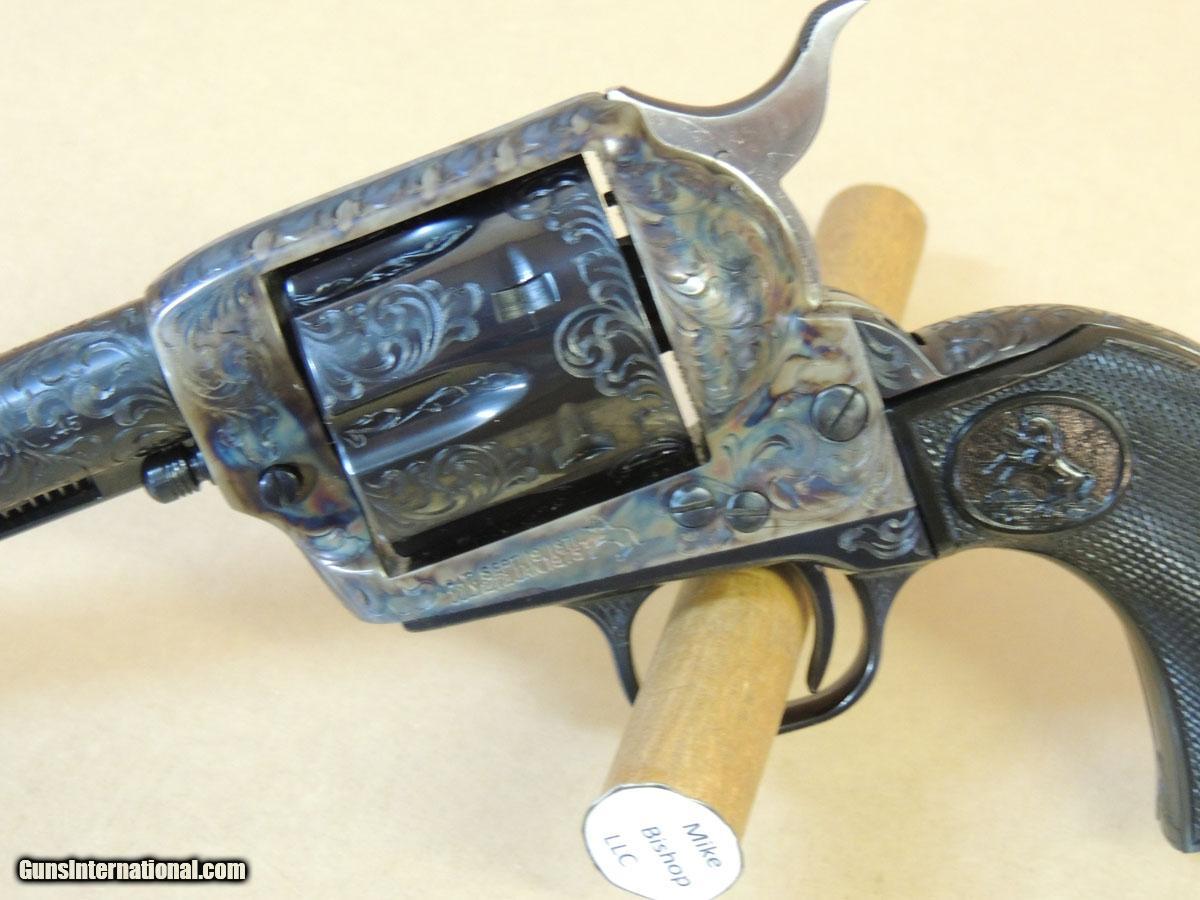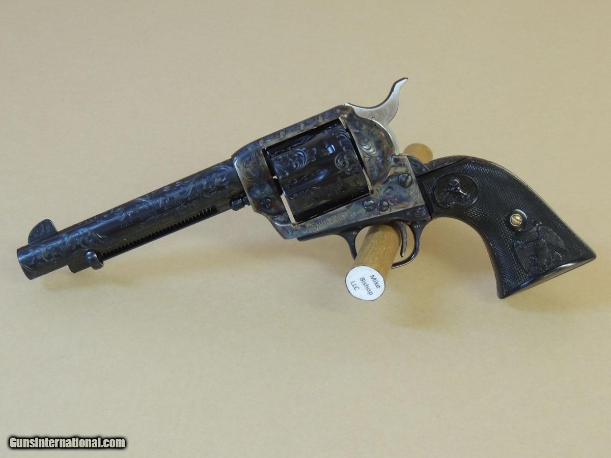 Description: COLT FACTORY ENGRAVED .45LC SINGLE ACTION ARMY, 5 1/2" BARREL, FACTORY ENGRAVED IN "D" COVERAGE, BLUE CASE COLOR, LIKE NEW CONDITION, WALNUT DISPLAY CASE, COLT FACTORY LETTER, THIRD GENERATION MANUFACTURED CIRCA 1978 $5999 ******* (PLEASE REFERENCE OUR INVENTORY NUMBER) (PAYMENT OPTIONS) (Postal Money Order) (Cashiers Checks) (Personal Checks (Item held until Check Cleared) (Layaway 120 days same as cash - Deposit required- Our Terms and Conditions Apply) (Credit Cards Visa or Master Card 4% fee added to total sale) (GA residents 7% sales Tax Applies) (EMAIL mikebishopllcgmail ) (FAX 888-597-1394) (BEST PHONE/TEXT 229-424-8450) (Shipping $35.00) SOLD |