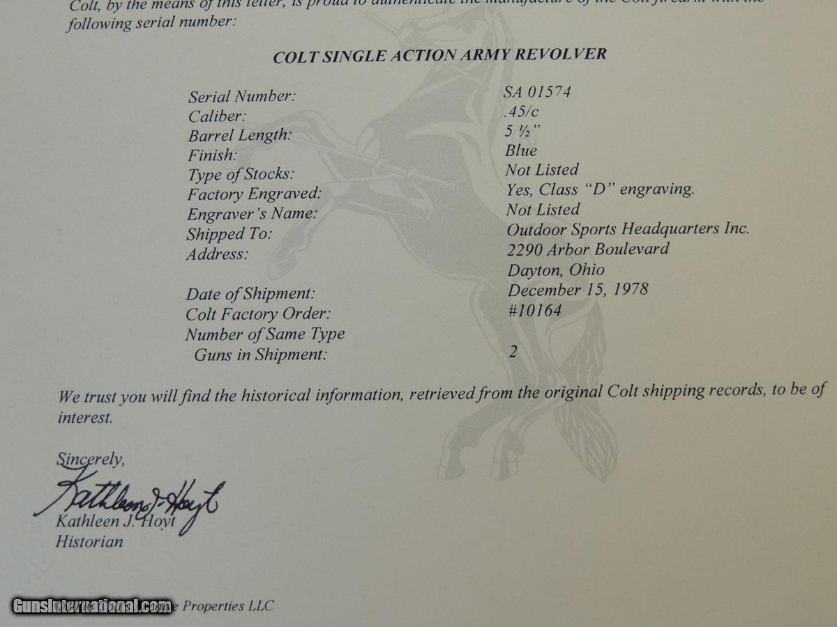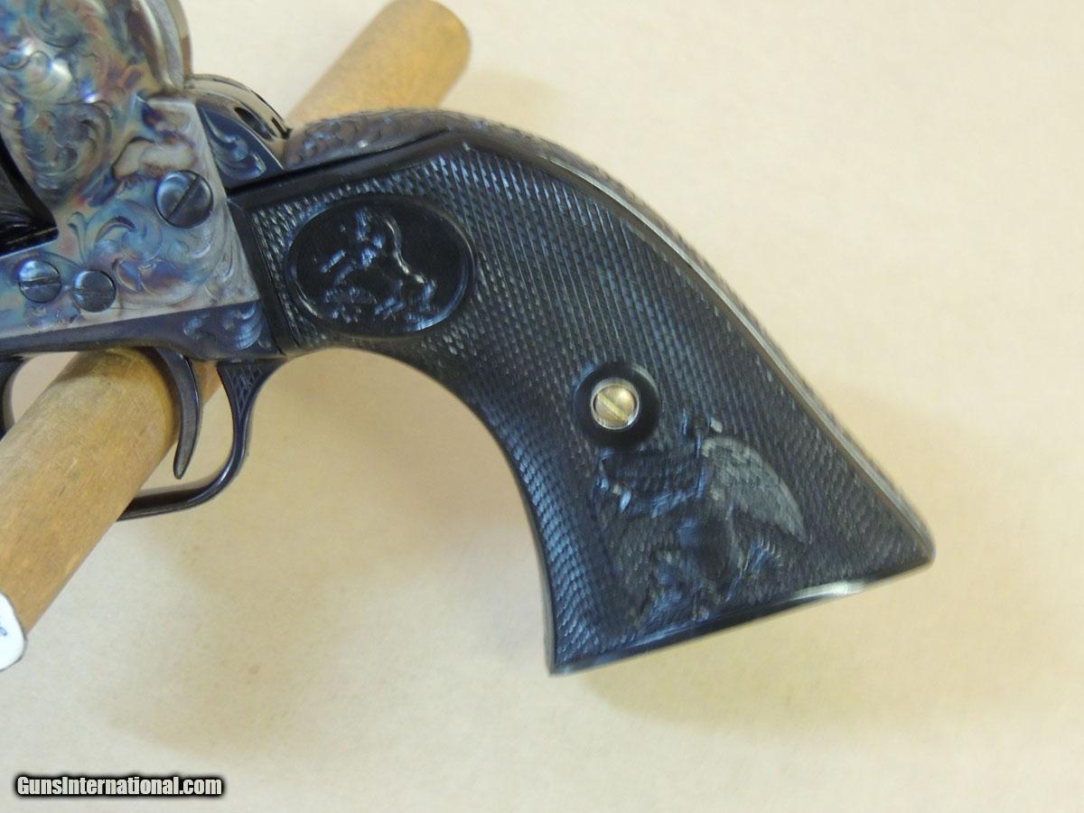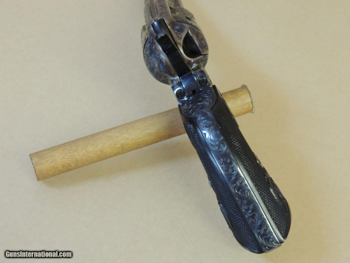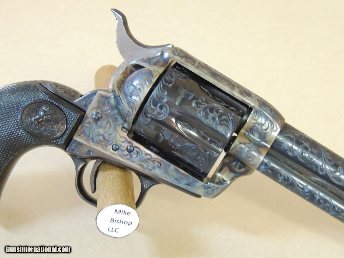 Description: COLT FACTORY ENGRAVED .45LC SINGLE ACTION ARMY, 5 1/2" BARREL, FACTORY ENGRAVED IN "D" COVERAGE, BLUE CASE COLOR, LIKE NEW CONDITION, WALNUT DISPLAY CASE, COLT FACTORY LETTER, THIRD GENERATION MANUFACTURED CIRCA 1978 $5999 ******* (PLEASE REFERENCE OUR INVENTORY NUMBER) (PAYMENT OPTIONS) (Postal Money Order) (Cashiers Checks) (Personal Checks (Item held until Check Cleared) (Layaway 120 days same as cash - Deposit required- Our Terms and Conditions Apply) (Credit Cards Visa or Master Card 4% fee added to total sale) (GA residents 7% sales Tax Applies) (EMAIL mikebishopllcgmail ) (FAX 888-597-1394) (BEST PHONE/TEXT 229-424-8450) (Shipping $35.00) SOLD |