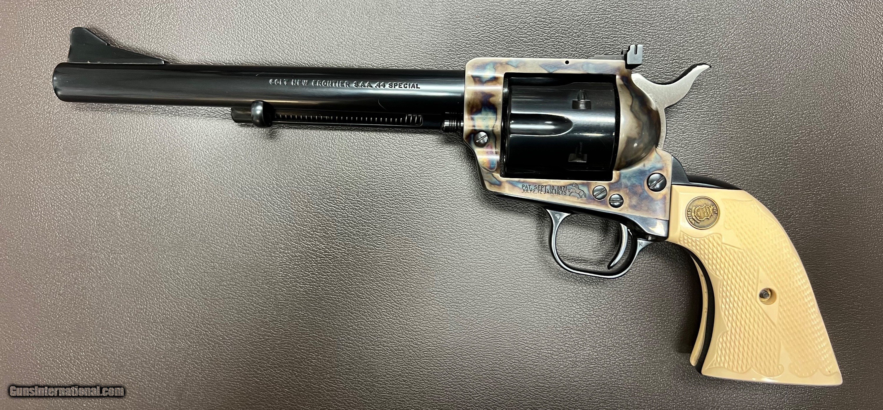 COLT NEW FRONTIER SAA .44 SPECIAL 3RD GEN 7.5” BARREL FACTORY CHECKERED IVORY GRIPS EXCELLENT AS NEW BUILT IN 1980