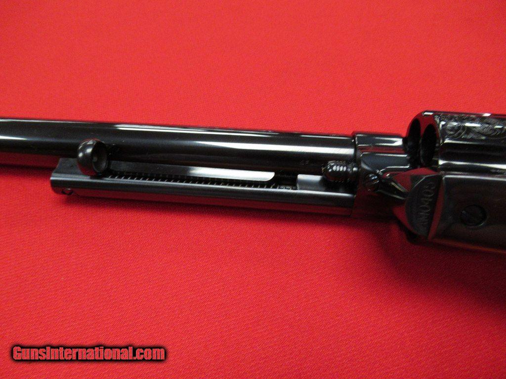 Description: ROYAL BLUE WITH OVER HALF THE TOTAL SURFACE TYPE B AND AMERICAN SCROLL ENGRAVED, GONCALO ALVES ONE PIECE GRIPS WITH 150TH ANNIVERSARY MEDALLIONS, OAK CASE WITH SPECIAL MARKINGS, UNFIRED WITH FACTORY LETTER SOLD |