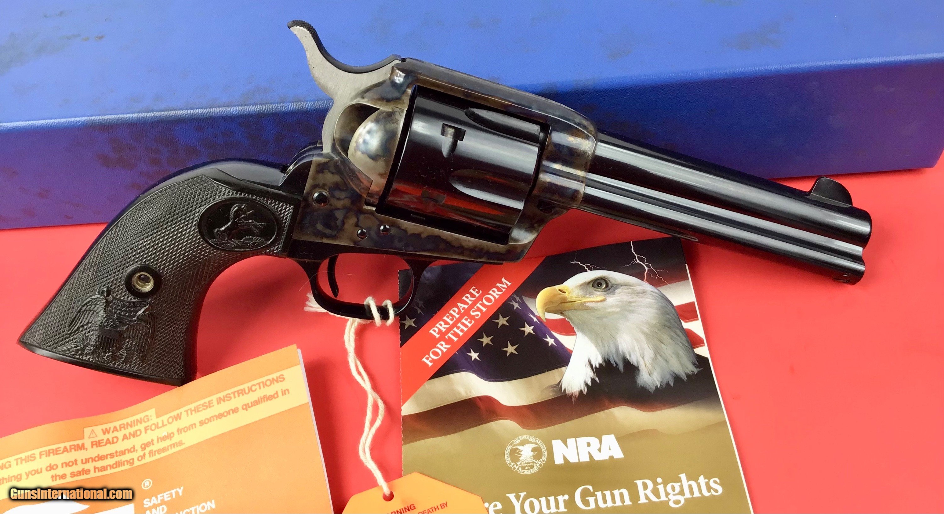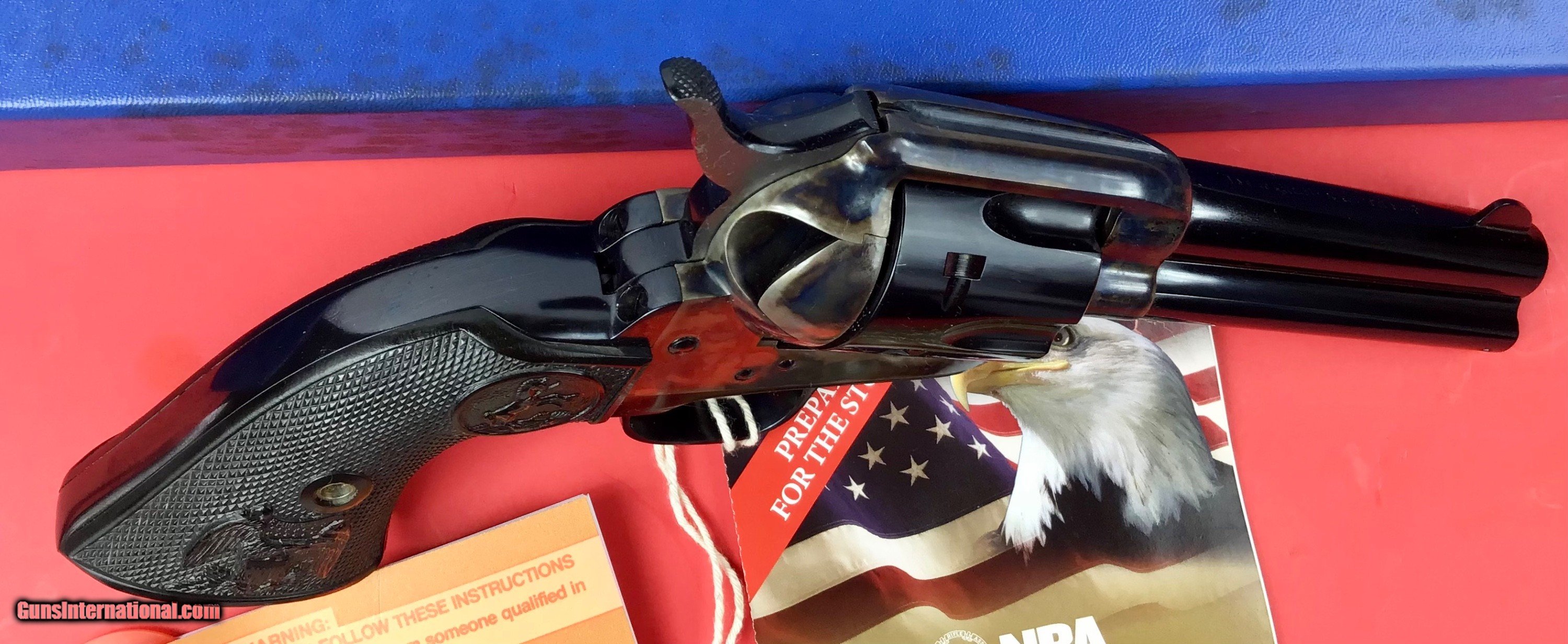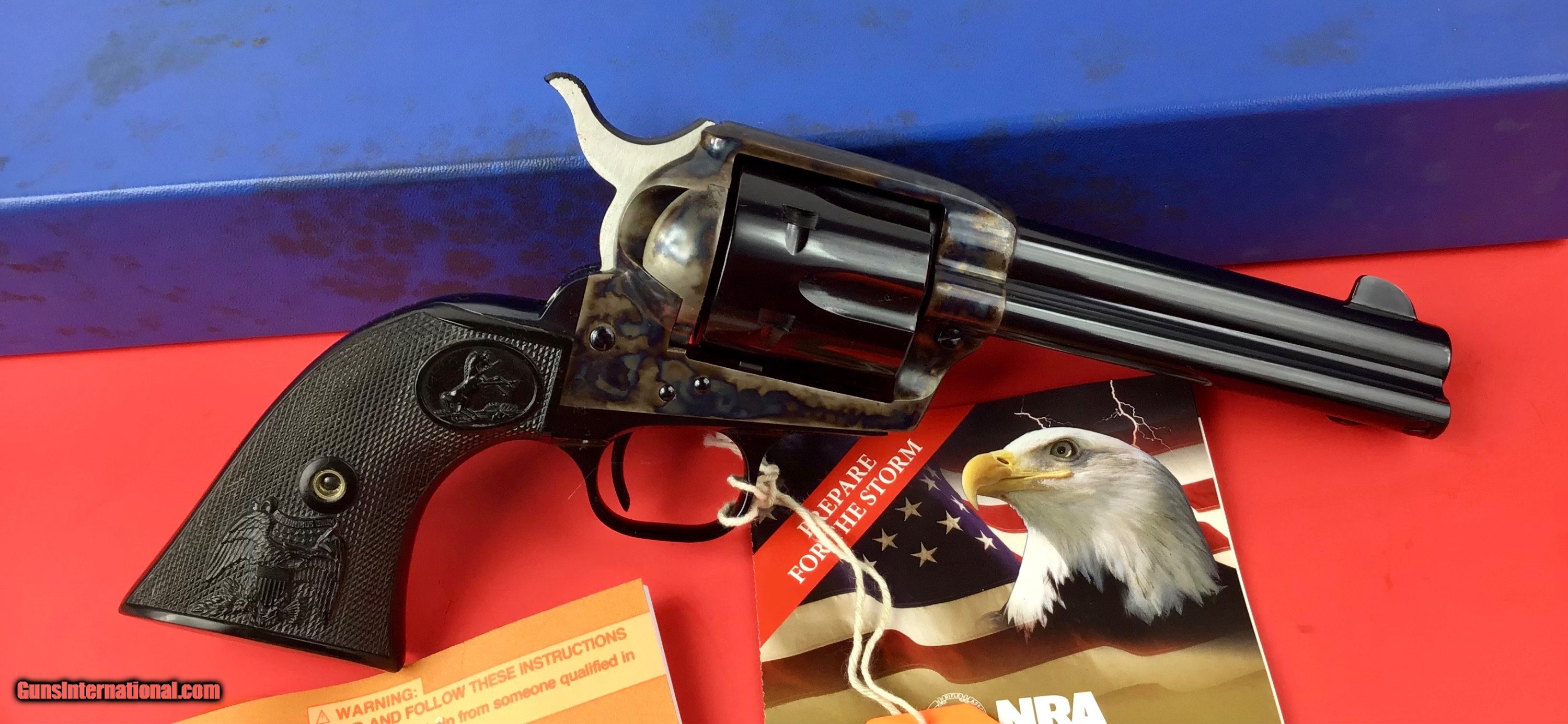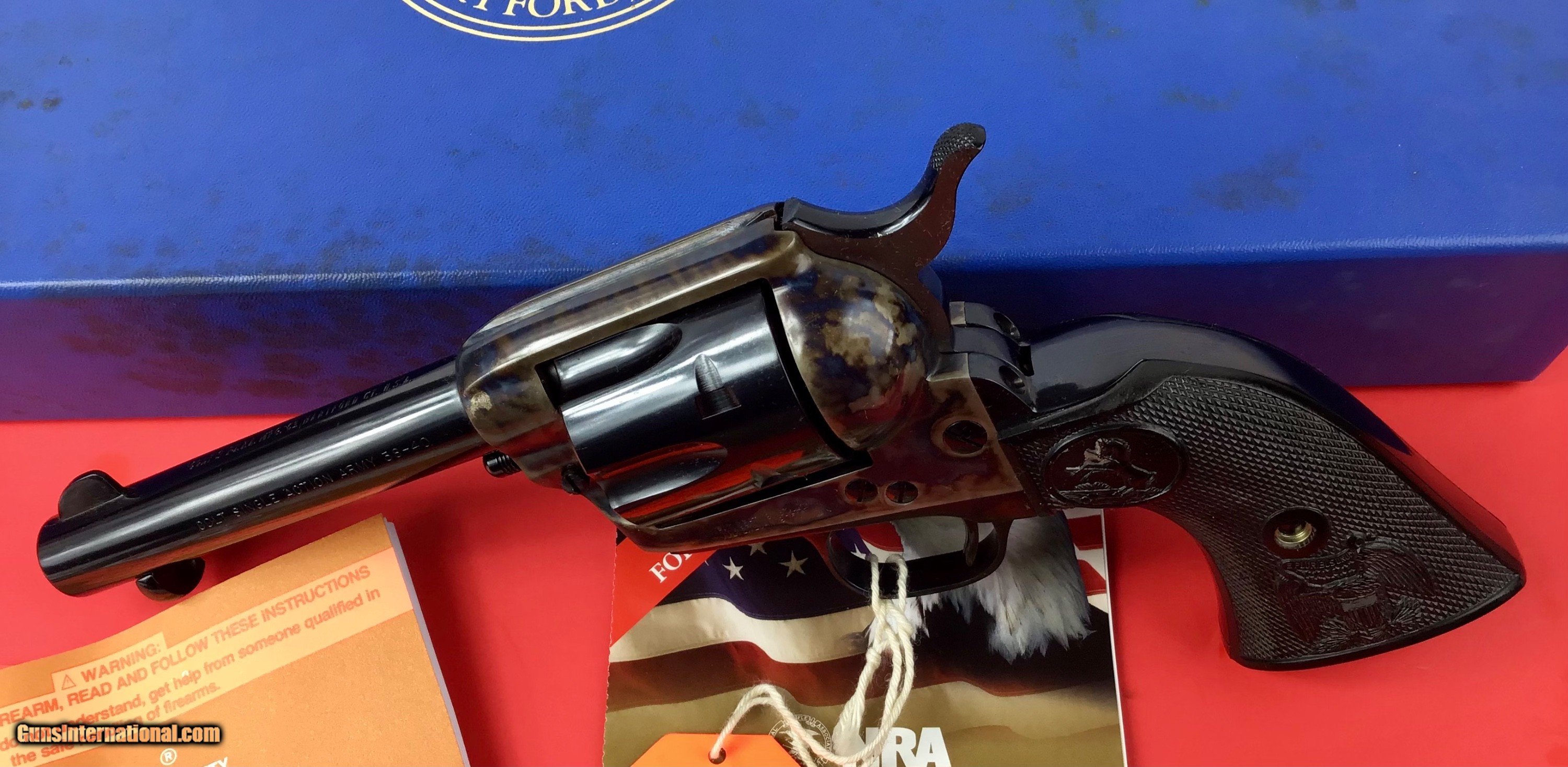 Description: Michael G. Colt Single Action Army, Mint and New in the box, in hard to find 38-40 caliber, 4 3/4" Barrel, Black Eagle grips, Blue and Color case, 2008 Mfg. with removable cylinder bushing. Newer models made with quality like the 1st and 2nd generations. Unfired and unturned, all paperwork, two piece blue box with white outer sleeve. Blue box cover has dark spots, not sure from what, box is solid though. Ships to your FFL from mine, $55.00 No sales Tax, Personal check (held 10 days) money order, bank check SOLD |