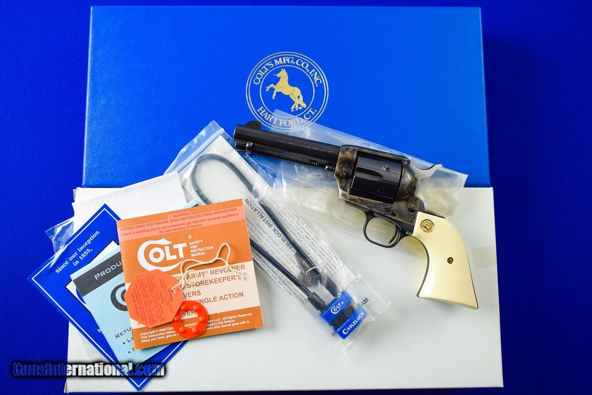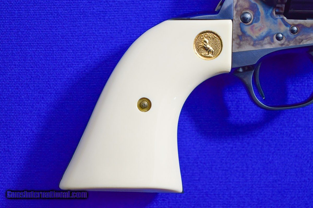 Description: Colt Single Action Army 3rd Generation Model P1940 in .44-40, S37XXXA manufactured 2004 with removable cylinder bushing. Features 4 ¾” bbl., with color casehardened frame, fitted with faux ivory grips. Near new condition showing only a few light handling marks. Complete with Colt Factory blue box with outer white shipping sleeve with matching end label numbered to the revolver, hang tag & all paperwork. Also accompanied with walnut display case with red velvet interior. Big Iron Firearms & Collectibles is a family owned & operated business. We are a licensed FFL Dealer & stand behind all of our listings. We try to replicate all aspects of the firearm in our photos & if you’re not completely satisfied, we will refund 100% of the purchase price during the 3 day inspection period. We Do Not Charge Credit Card Fees, all major credit cards are accepted. We offer a 2% discount on sales price for items purchased with a money order, cashier or personal check, with item held until cleared. Will M. at 260-319-6961 SOLD |