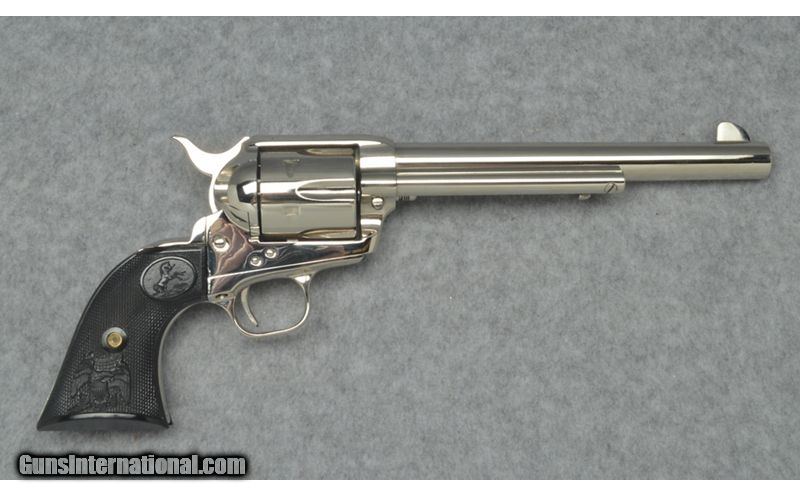 Description: This Colt Single Action Army 3rd Gen comes unfired with the original box. It has all the paper work in the box from when it was bought. It is in excellent condition and like and has never been fired. .45 LC SOLD Chambers: .45 Long Colt Metal Condition: Like new Barrels: 7 1/2 Triggers: Single Action Weight: 2 lb. 8 oz. Sights: "Notched frame, Blade front Item Location: Sun Prairie, WI |