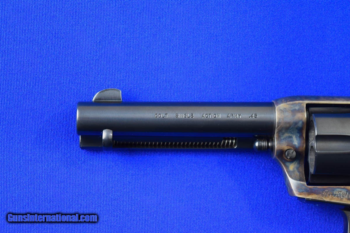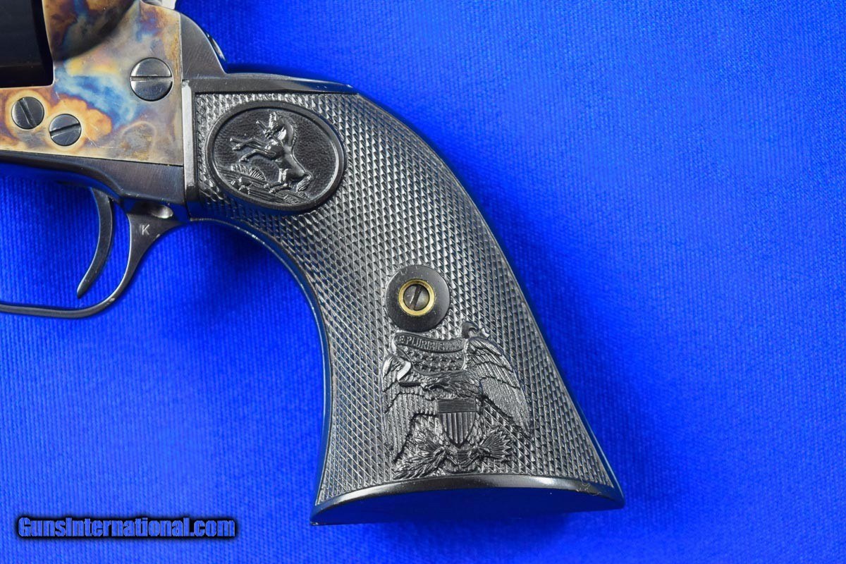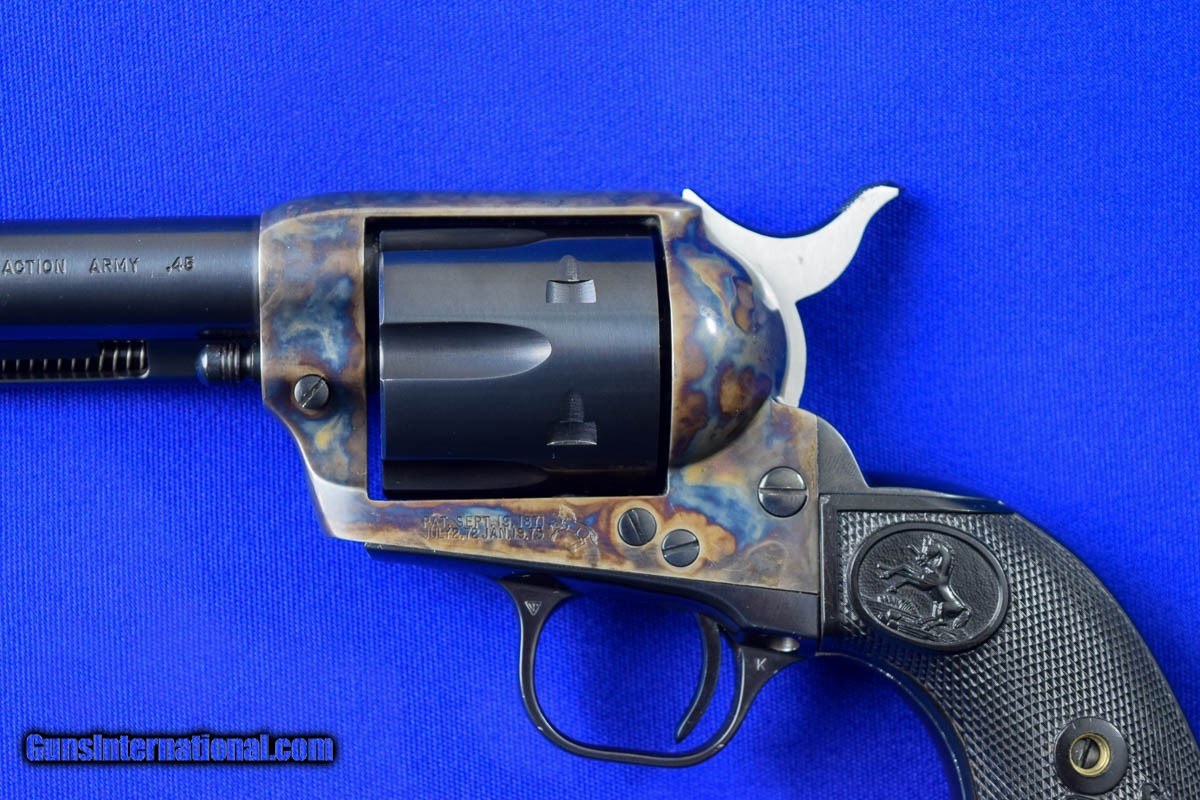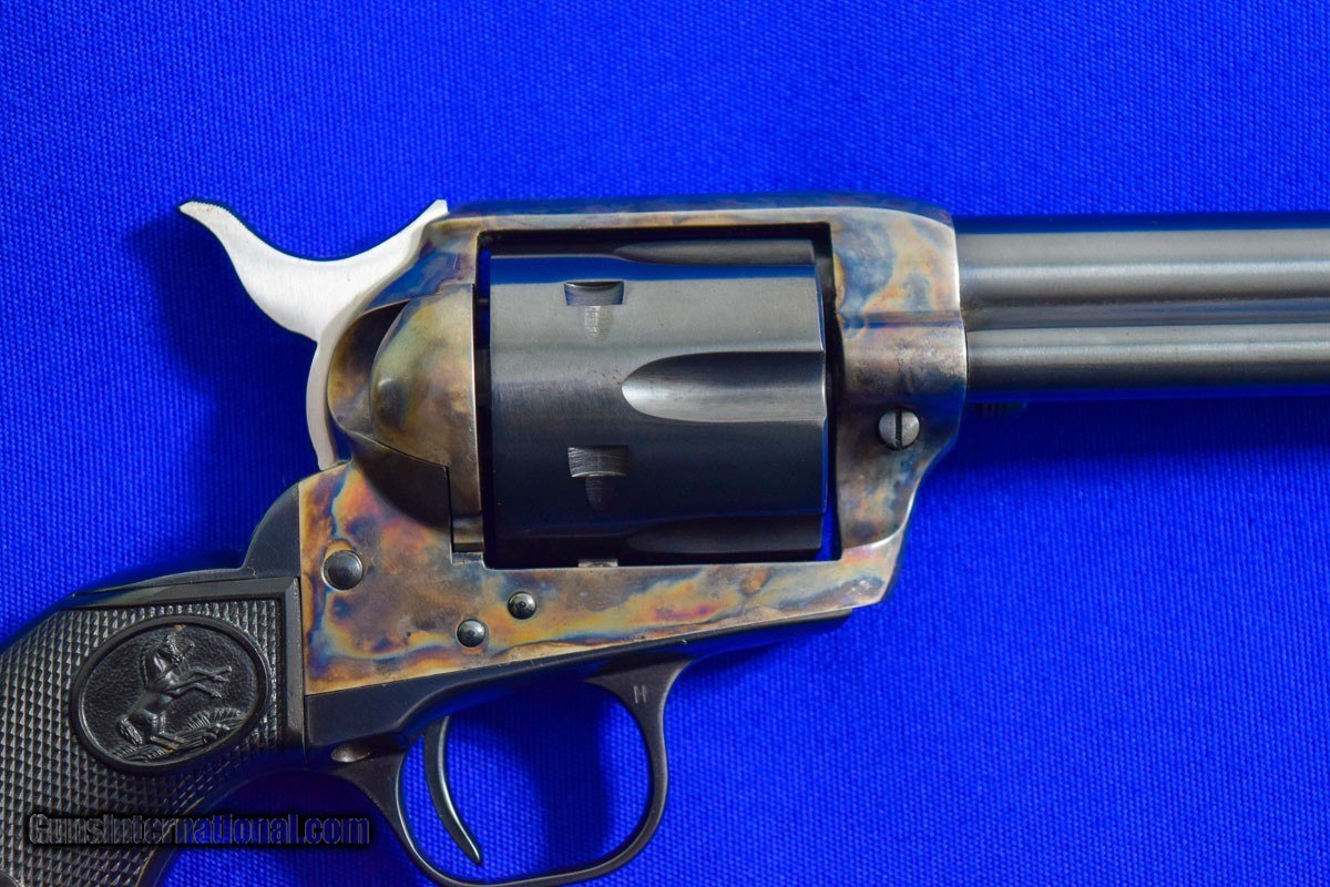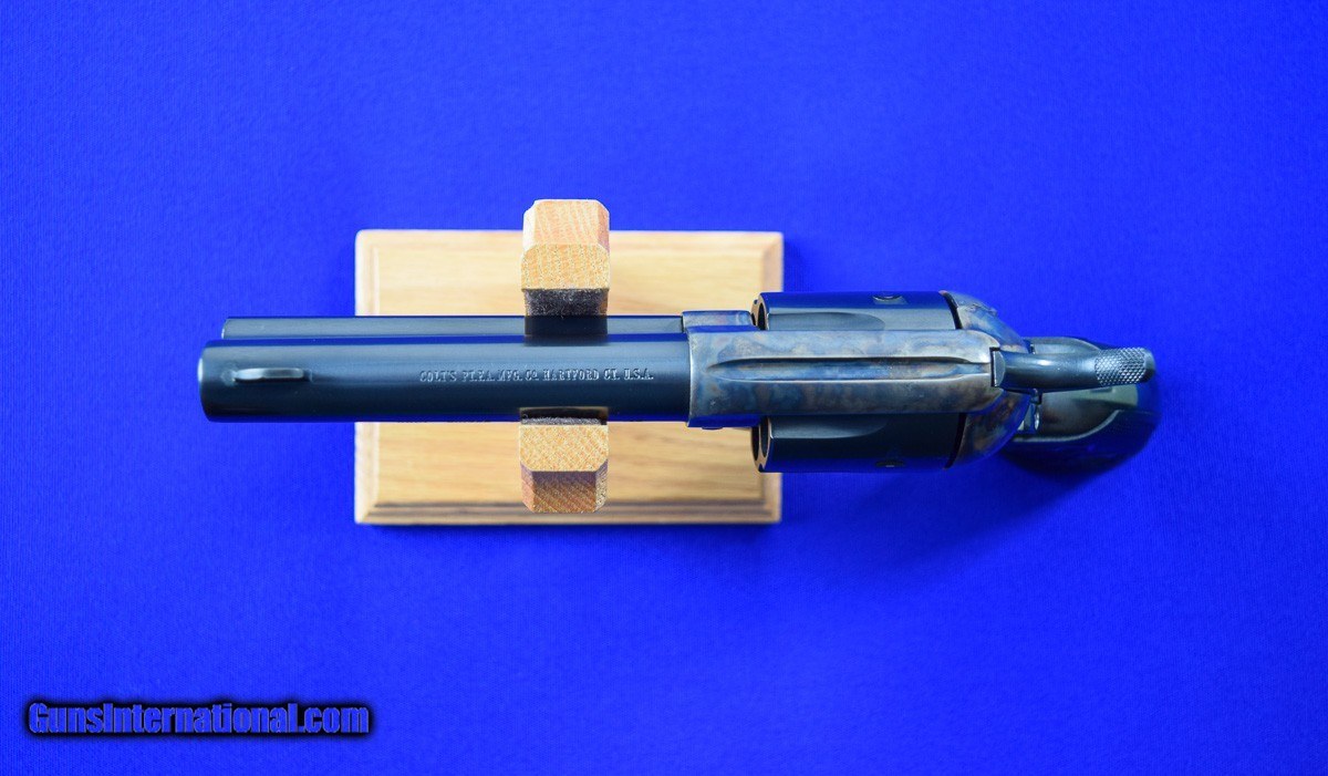 Description: Colt Single Action Army 3rd Generation Model P1840 in 45 Colt, SA30XXX manufactured 1980. Features 4 ¾” bbl with color casehardened frame, fitted with black checkered eagle grips. Condition is NIB, complete with Colt factory woodgrain box with matching end label numbered to the revolver, hang tag & all papers. Big Iron Firearms & Collectibles is a family owned & operated business. We are a licensed FFL Dealer & stand behind all of our listings. We try to replicate all aspects of the firearm in our photos & if you’re not completely satisfied, we will refund 100% of the purchase price during the 3 day inspection period. We Do Not Charge Credit Card Fees, all major credit cards are accepted. We offer a 2% discount on sales price for items purchased with a money order, cashier or personal check, with item held until cleared. Will M. at 260-319-6961 SOLD |