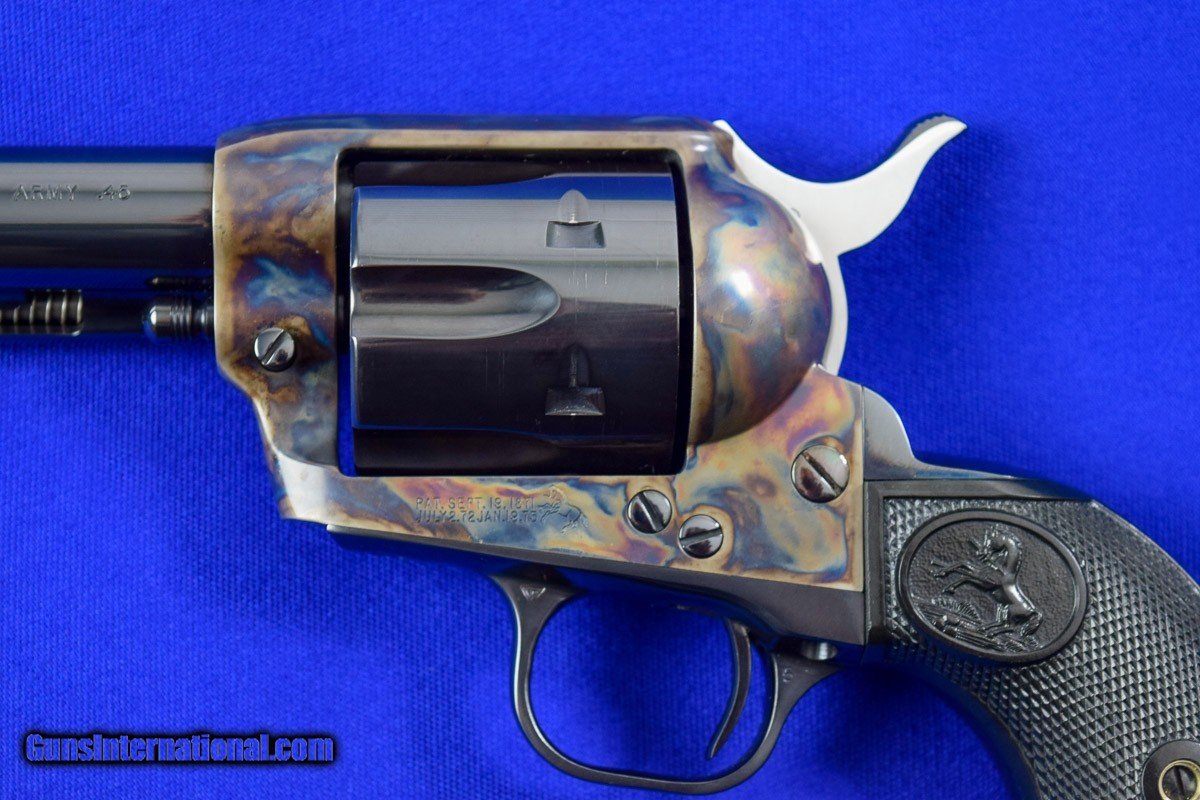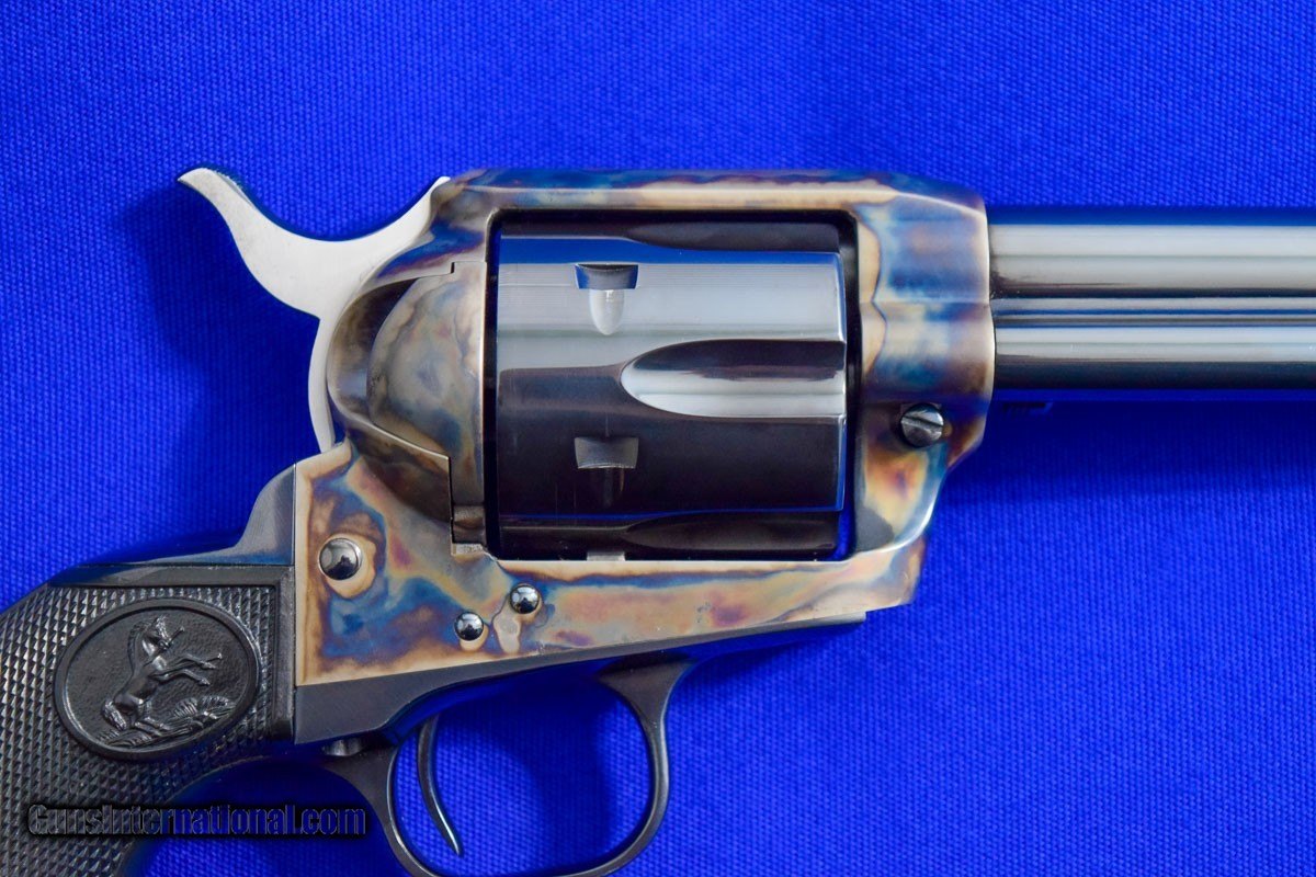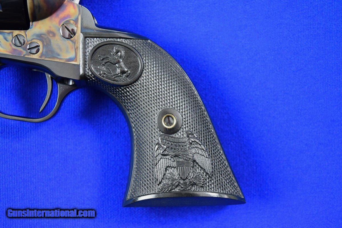 Description: Colt Single Action Army 3rd Generation Model P1870 in 45LC, S41XXXA manufactured 2005. Features 7 ½” barrel with color casehardened frame, fitted with black checkered eagle grips. Condition is excellent showing only a few minor drag lines on cylinder otherwise as new. This Colt would make an excellent shooter. Sorry no box. Big Iron Firearms & Collectibles is a family owned & operated business. We are a licensed FFL Dealer & stand behind all of our listings. We try to replicate all aspects of the firearm in our photos & if you’re not completely satisfied, we will refund 100% of the purchase price during the 3 day inspection period. We Do Not Charge Credit Card Fees, all major credit cards are accepted. We offer a 2% discount on sales price for items purchased with a money order, cashier or personal check, with item held until cleared. Will M. at 260-319-6961 SOLD |