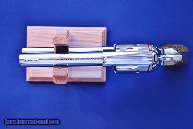 Description: Colt Single Action Army 3rd Generation Model P1841 in 45LC, S30XXXA manufactured in 2000. Features Nickel plated finish with 4 ¾” barrel, fitted with snake skinned grips with gold Colt medallions. Grips are slightly over-sized at base. Condition is NIB, complete with Colt factory blue hard case with matching end label numbered to the revolver & papers. Big Iron Firearms & Collectibles is a family owned & operated business. We are a licensed FFL Dealer & stand behind all of our listings. We try to replicate all aspects of the firearm in our photos & if you’re not completely satisfied, we will refund 100% of the purchase price during the 3 day inspection period. We Do Not Charge credit card fees, all major credit cards are accepted. We offer a 2% discount on sales price for items purchased with a money order, cashier or personal check, with item held until cleared. Will M. at 260-319-6961 SOLD |