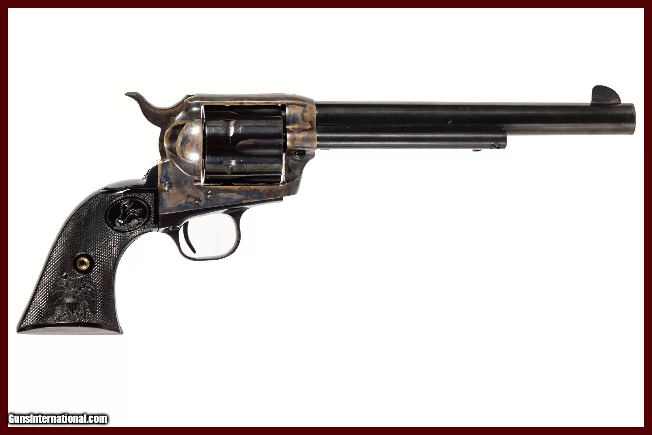 Description: Colt Single Action Army 3rd Generation chambered in 45 Long Colt with a 7½ inch barrel, bright shiny bore with nice sharp rifling and smooth excellent working action. This revolver comes with the original box and shows a manufactured year of 1977. The NRA grading condition for this USED firearm is Excellent. Dury's Lifetime Warranty: All firearms purchased from Dury’s Gun Shop, NEW or USED, are covered by a lifetime warranty. We will repair or replace, at our discretion, any firearm purchased from Dury’s Gun Shop, Inc. for as long as it is owned by the purchaser. This warranty is not transferable. WE BUY GUNS! NO COLLECTION TOO BIG OR SMALL FOR OUR GUNS INTERNATIONAL CUSTOMERS ALL OF OUR FIREARMS CAN BE PURCHASED DIRECTLY FROM OUR DURY'S GUNS SITE ! SOLD Manufacturer: Colt Model: SAA 3rd Gen Caliber Info: 45 LC Barrels: 7inches |