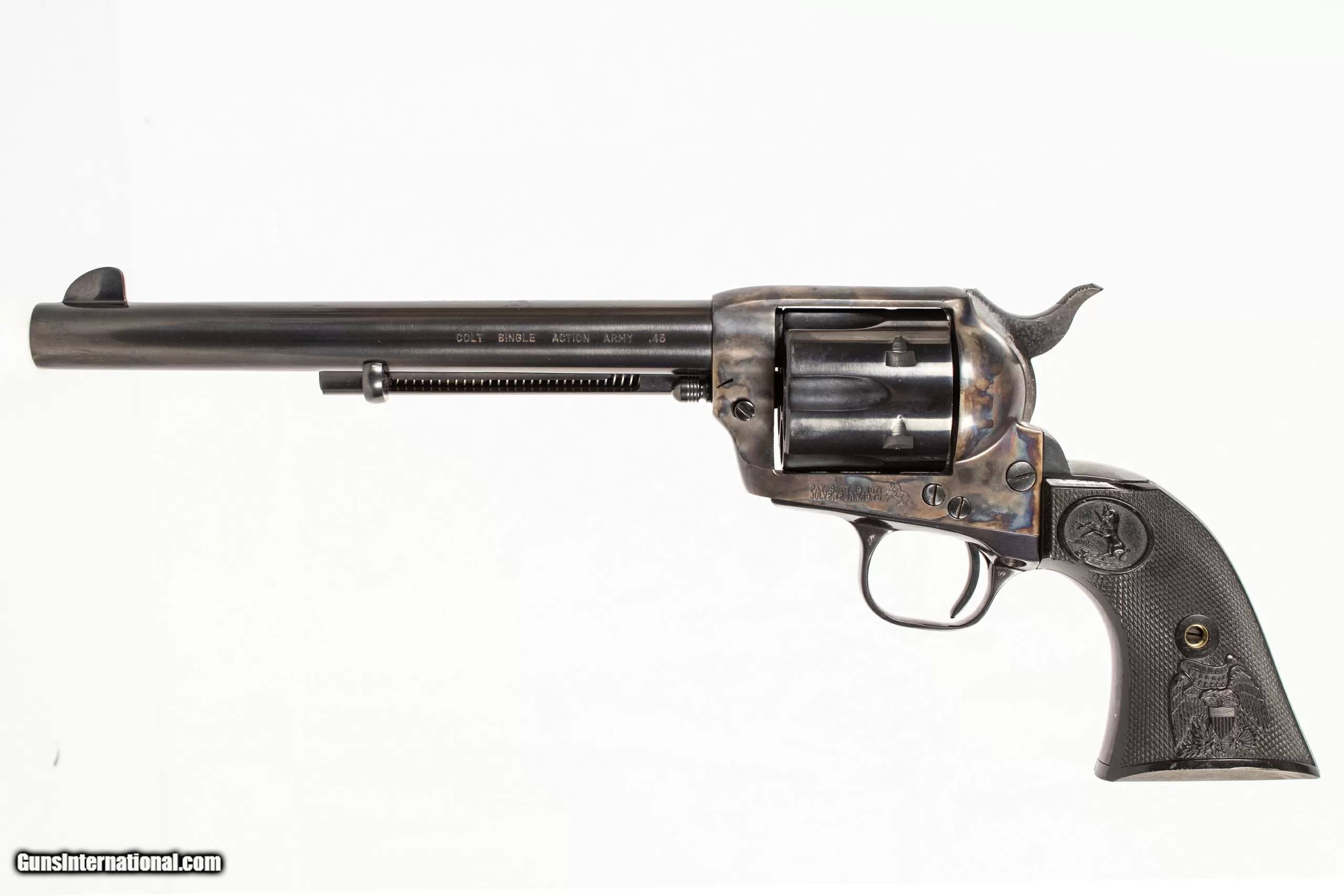 Description: Colt 3rd Generation Single Action Army chambered for .45 Long Colt with 7.5-inch barrel, blued with case-colored receiver and six-shot fluted cylinder, stainless-walled hammer, gutter sight, and synthetic Colt grips. Includes case. Action appears to be in fine working order with bright, sharply rifled bore. The NRA grading condition for this USED firearm is Very Good+. Dury’s Lifetime Warranty: All firearms purchased from Dury’s Gun Shop, NEW or USED, are covered by a lifetime warranty. We will repair or replace, at our discretion, any firearm purchased from Dury’s Gun Shop, Inc. for as long as it is owned by the purchaser. This warranty is not transferable. WE BUY GUNS! NO COLLECTION TOO BIG OR SMALL FOR OUR GUNS INTERNATIONAL CUSTOMERS ALL OF OUR FIREARMS CAN BE PURCHASED DIRECTLY FROM OUR DURY’S GUNS SITE ! SOLD Manufacturer: Colt Model: SAA 3rd Gen Caliber Info: 45 LC Barrels: 7inches |
