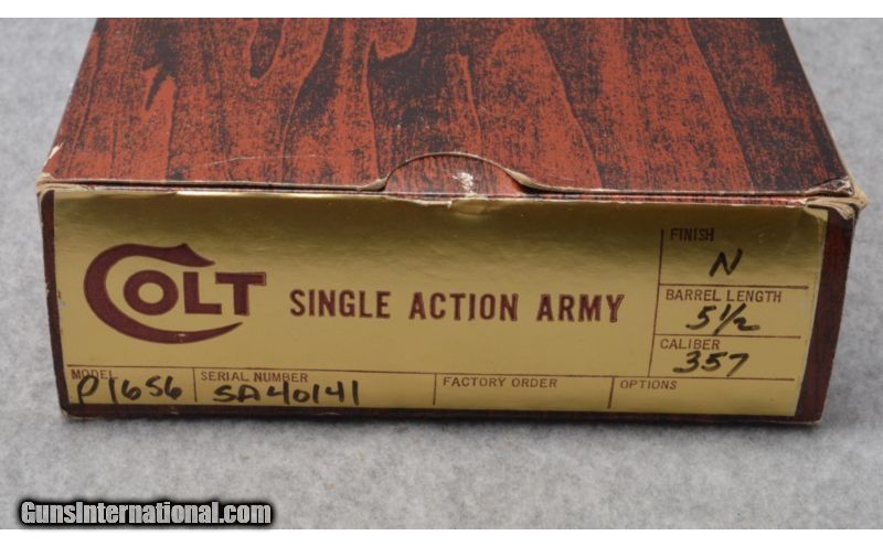 Description: Comes in orginal factory box with matching numbers SOLD Manufacturer: S/N - SA40141 Caliber Info: .357 Mag Metal Condition: Like New Wood Condition: Like New Bore Condition: Like New Barrels: 5.5 Triggers: Factory Stock: Walnut Grips Weight: 39 oz Sights: Fixed Item Location: West Chester, OH |
