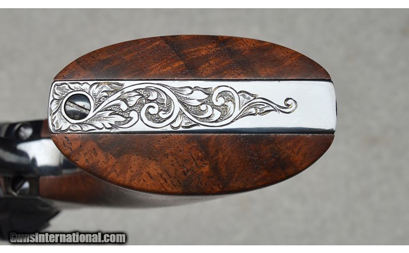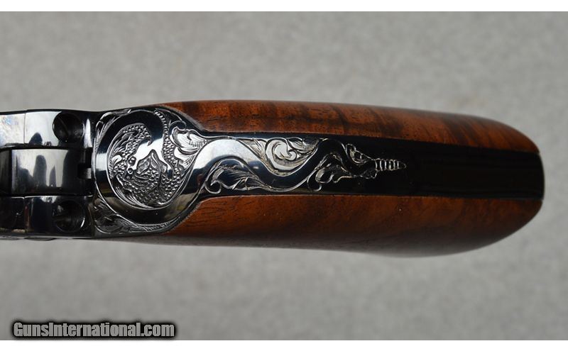 Description: Colt Single Action Army 3rd Generation, Factory Engraved by Jan Gwinnell in 2014 that features floral scroll engravings on a punch dot background along with a horse head on the recoil shield, stylized Colt serpentine logo on the back strap, and eagle heads on the barrel. Signed "Colt Engraver J.L.G" on the grip frame. Comes with matching .44 Special cylinder, display case with empty cartridge holder, and plaque with firearm information, and Colt blue box. SN: S62819A .44-40 Winchester SOLD Metal Condition: Excellent Wood Condition: Excellent Bore Condition: Clean Barrels: 7 1/2 Butt Pad: Walnut Grips Weight: 2 lb 7 oz Item Location: Fort Worth, TX |