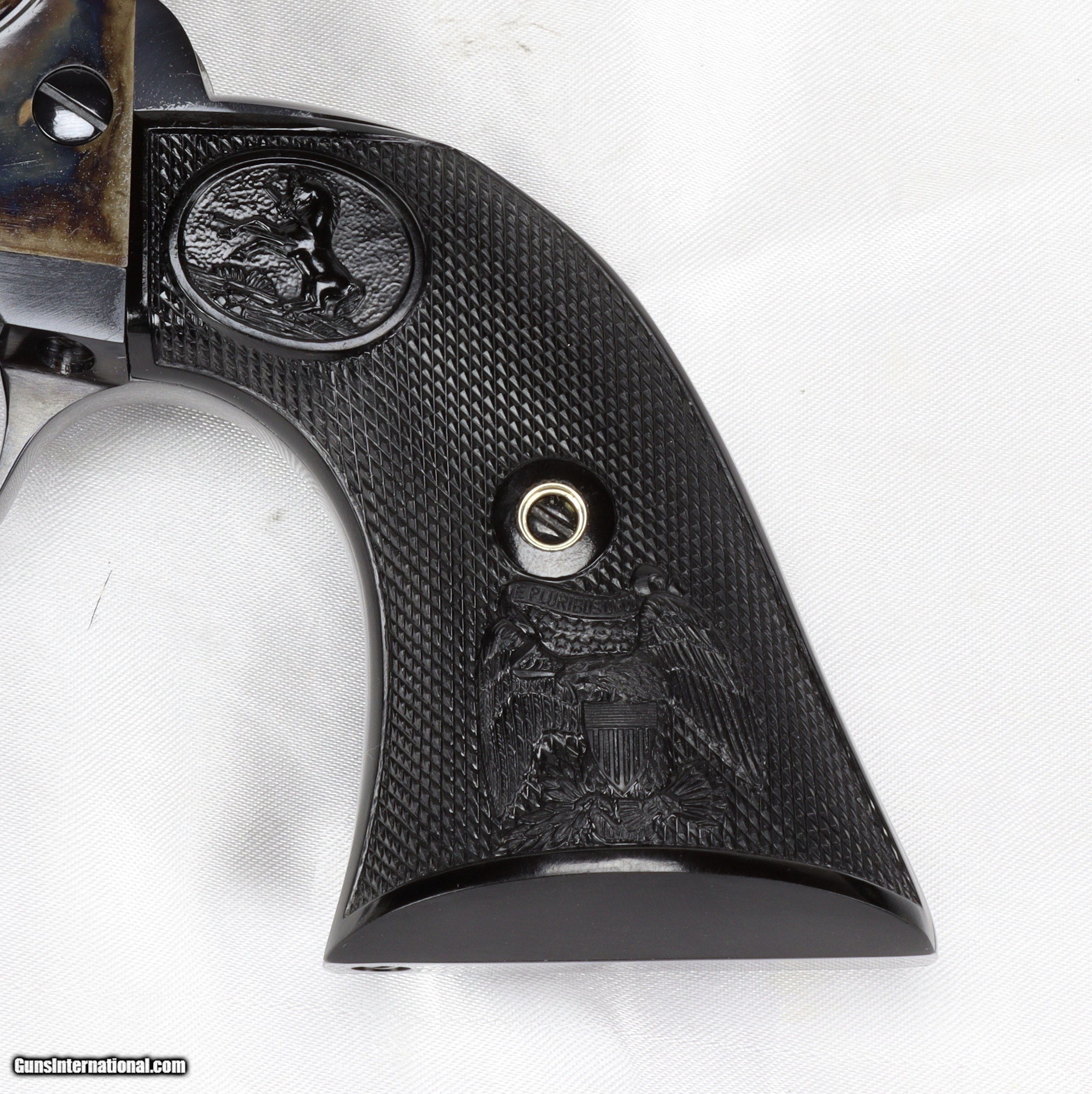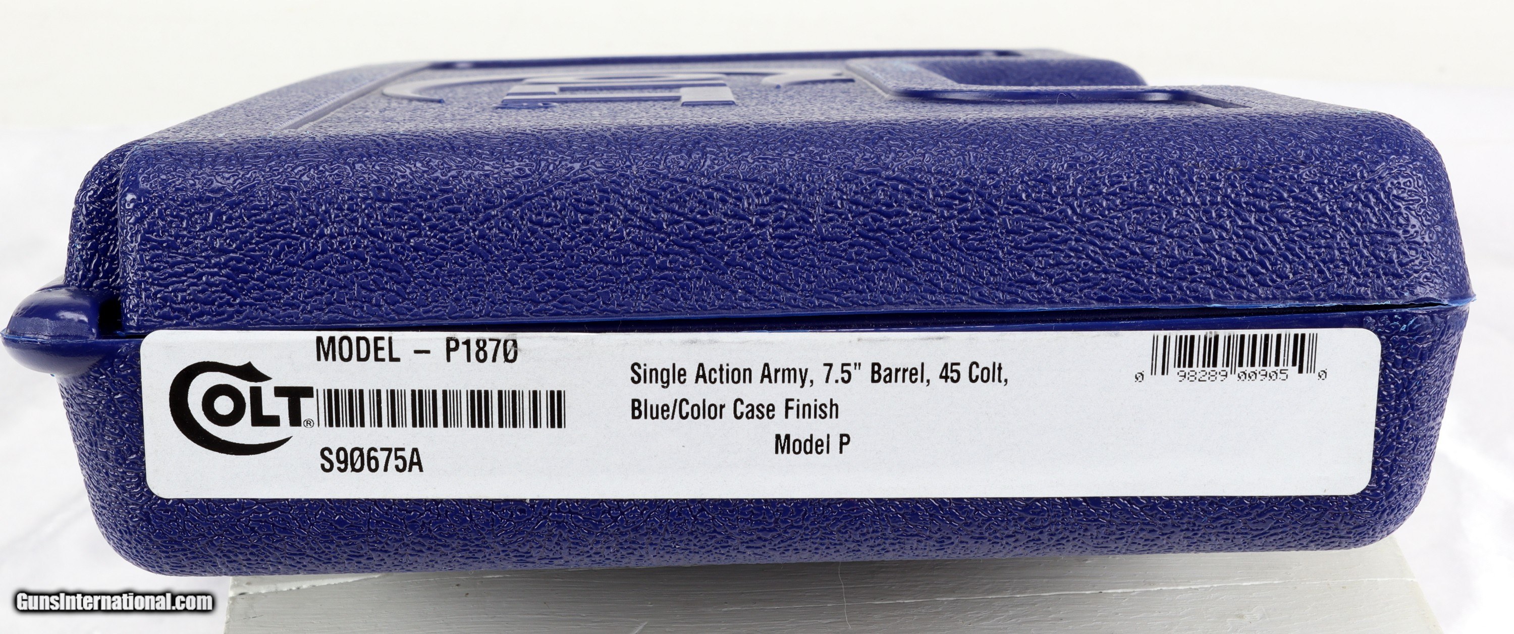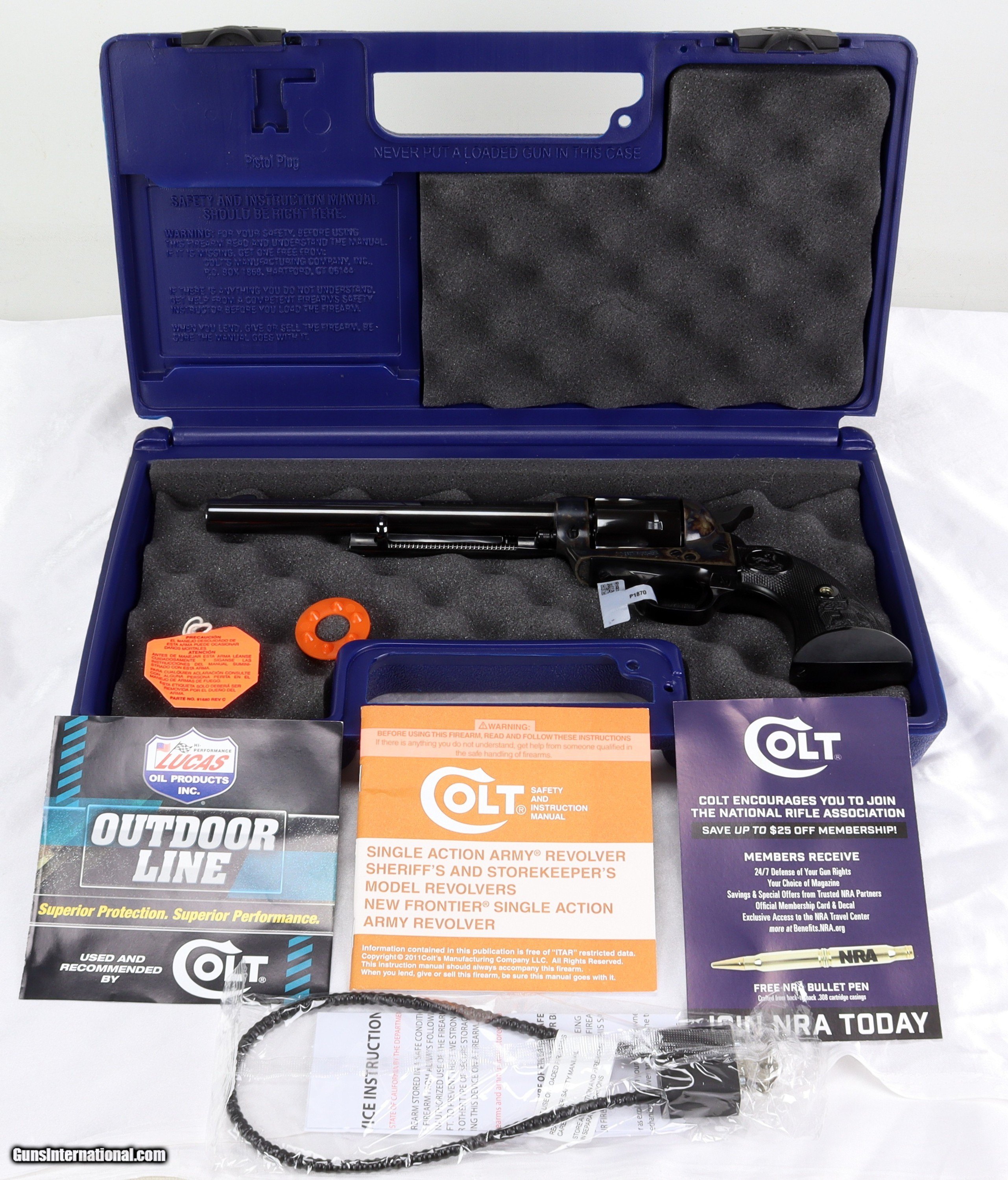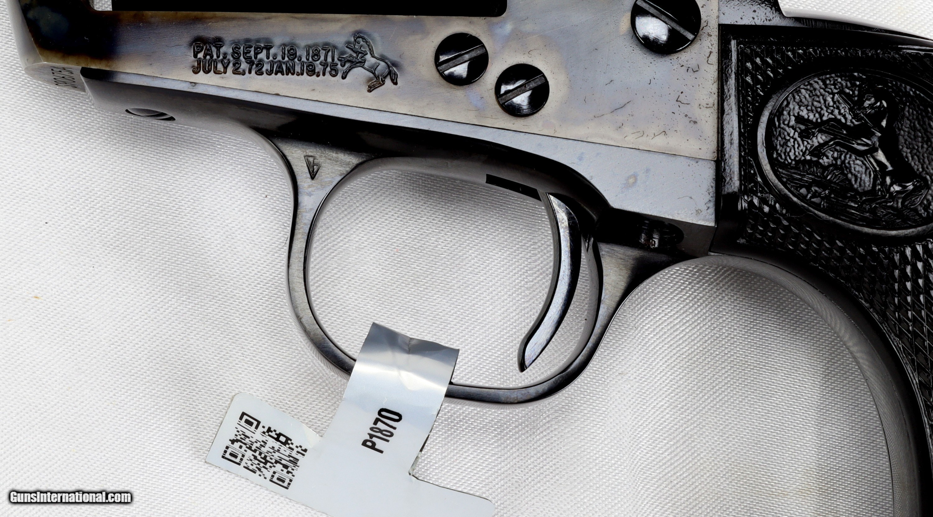 Description: COLT SAA, 3rd GENERATION, "NIB", SN#S 90675A, MFG: 2014, 7 1/2" Barrel. Beautiful Case Colored Frame, Original Box & Paperwork. Weight: 2lbs, .44ozs. Trigger Pull: 4lbs, 3/4ozs. Ships to Lower 48, With Insuance: $50.00 SOLD |