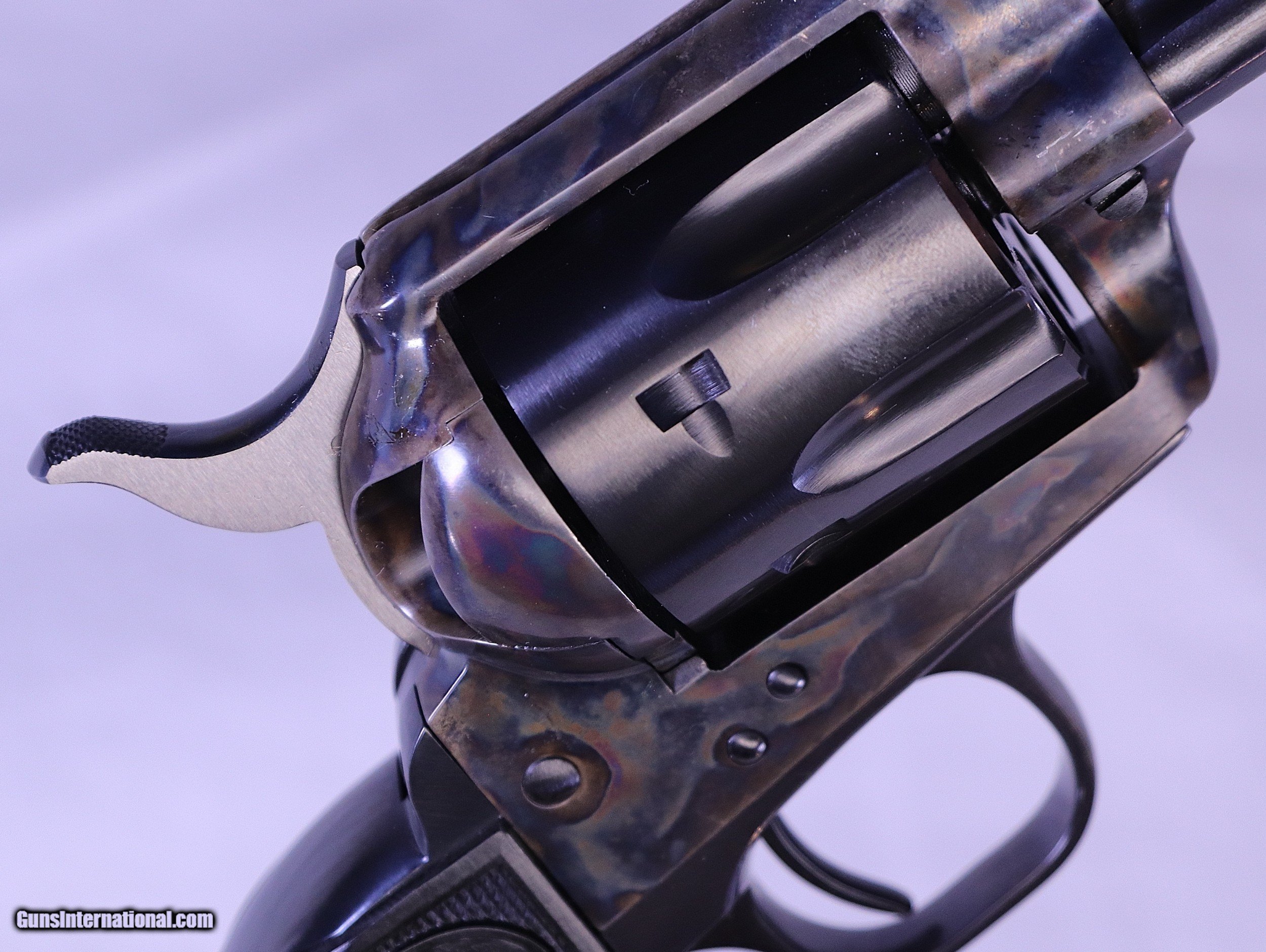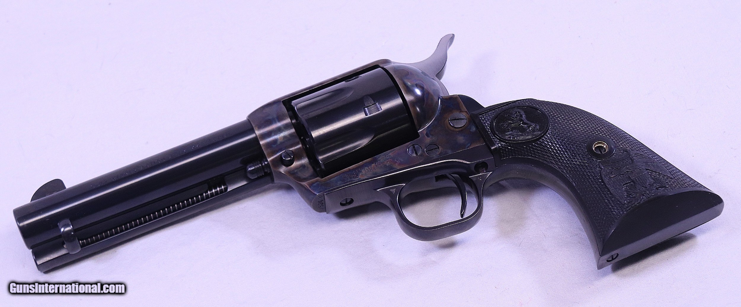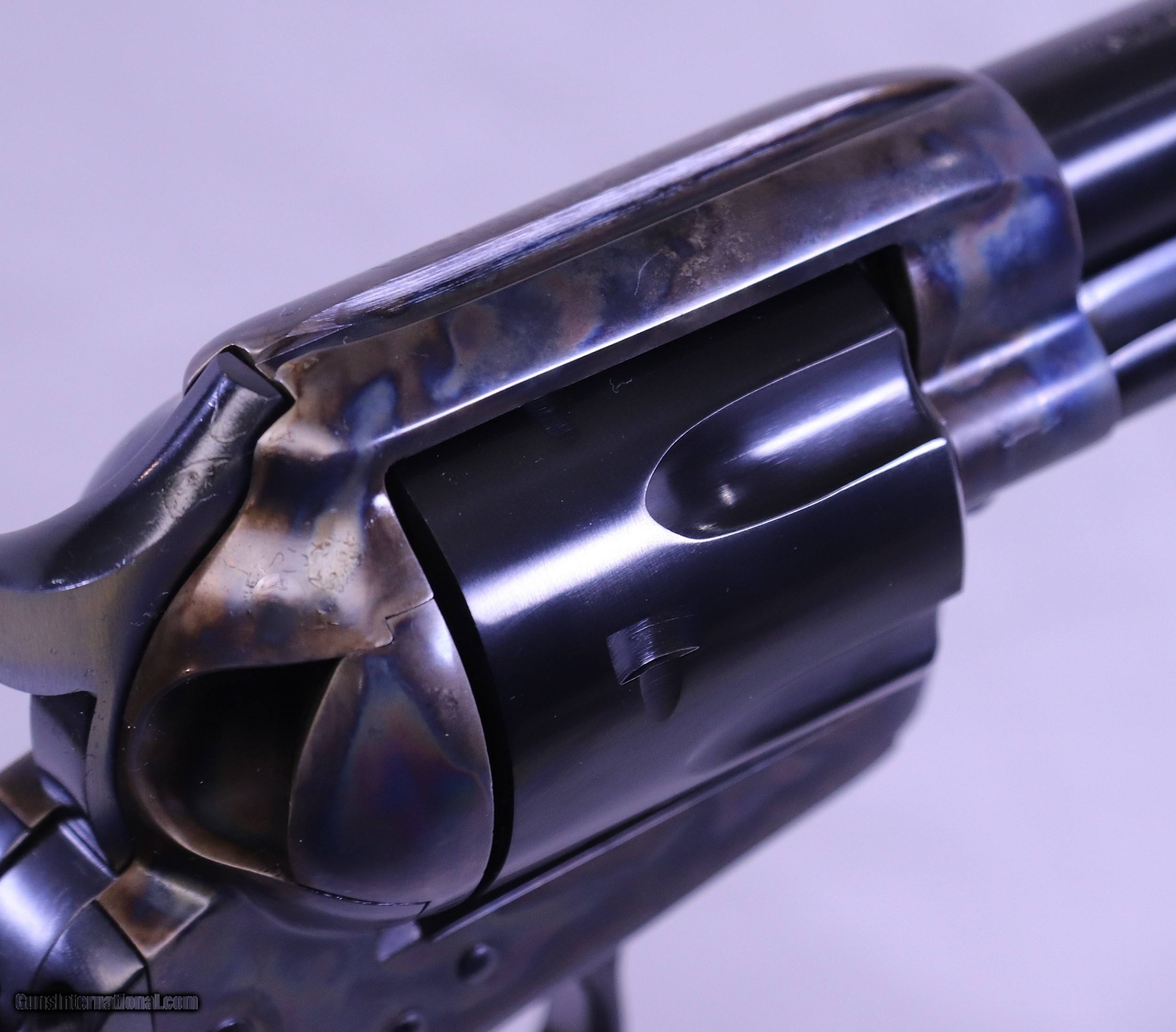 Description: This Colt SAA was Mfg’d. in 1981 and remains in excellent un-fired condition. The finish is in excellent as new original condition. The bore and action are as new as well. It is in the original box with the Manual, Hang Tag, and other paperwork. This is a beautiful 3rd Gen. Single Action Army revolver in .44 Spl. with a 4 ¾” Barrel. Serial Number SA52430. FFL Required. Please check my other Listings for an Identical matching Second gun. It is not sequential serial numbered (SA54220) but otherwise identical in all ways. Beaver Creek Arms TERMS & CONDITIONS Objective: As a collector of 35 years and Licensed Firearms Dealer since 1989 I have a clear definition of a satisfactory transaction. I will be paid as we agreed to, and you will be satisfied with your purchase. My goal is to establish a client list of satisfied repeat customers who will recommend me to other collectors. It’s just that simple. Exiled Saudi princes with secret funds needing change from an over paid purchase need not apply. Notice: ALL Federal, State, & Local firearms laws will be followed. I will take NO shortcuts in the process of a legal sale or transfer, so please don’t ask. SHIPPING: Normally shipments are made via U.S.P.S. Priority Mail, Insured, with a return receipt. Typical Packing, Shipping and Insurance cost for a handgun is $30.00, and for a Long Gun is $45.00. Checks are to be made out to “Steve Clark” Address: 380 Beaver Creek Road, Dillsburg, PA 17019 FIREARMS: Modern firearms, post 1898, can only be shipped to a Type 01 Federal Firearms License address. Curio-Relic firearms, as defined by the BATF list, can usually be shipped to a Type 03 Collectors License address. Some states have additional restrictions such as CA, CT, DC, IL, NJ and NY. A signed valid FFL license copy either mailed or emailed will be required for shipment to only the license address. Antique firearms, pre 1898 do not require a Federal License. For purchase, a copy of a Government Issued Identification (Driver’s License, Etc.), showing date of birth and current address will be required. GUARANTEE: Your complete satisfaction is assured, see objective above. If you are not satisfied, please contact me within 3 days of receipt. Please don’t fire the weapon, safety, function and accuracy are NOT Guaranteed. Any weapon offered by Beaver Creek Arms is never test fired nor is there any representation the gun is functional and safe to fire. These guns are sold for collectors and only represented as used firearms that must be checked by a competent person, observe all the necessary safety precautions prior to attempting to load and fire one of these weapons RETURNS: Returns must be made within 3 days of receipt. They must be received in exactly the same condition with no parts exchanged. If it has been altered, damaged, or fired, a refund will not be made. Packing, shipping and insurance cost will not be refunded. All layaway purchases are returnable for merchandise credit only. PAYMENT: Bank check, Personal check, and Money Orders are preferred. Visa and MasterCard are accepted with a 3% processing fee. For Visa and MasterCard orders please provide the account number, code number, expiration date, name on card, phone number and card billing address. This information can be phoned in, or E-Mailed. All orders must be paid in advance, C.O.D. orders are not accepted. Checks, both Bank and Personal must clear before the order will be shipped, usually a 2 week delay. LAYAWAYS: A 20% deposit is required. Balance is due in 60 days. Deposits are non-refundable and are forfeited after 60 days. Layaway sales are returnable for merchandise credit only. SALES TAX: Pennsylvania state sales tax is 6% for in state purchases. The payment of other states sales tax, if applicable, for shipped items is the buyer’s responsibility. DISCREET: Client information will remain Confidential. Your privacy is protected. SOLD |