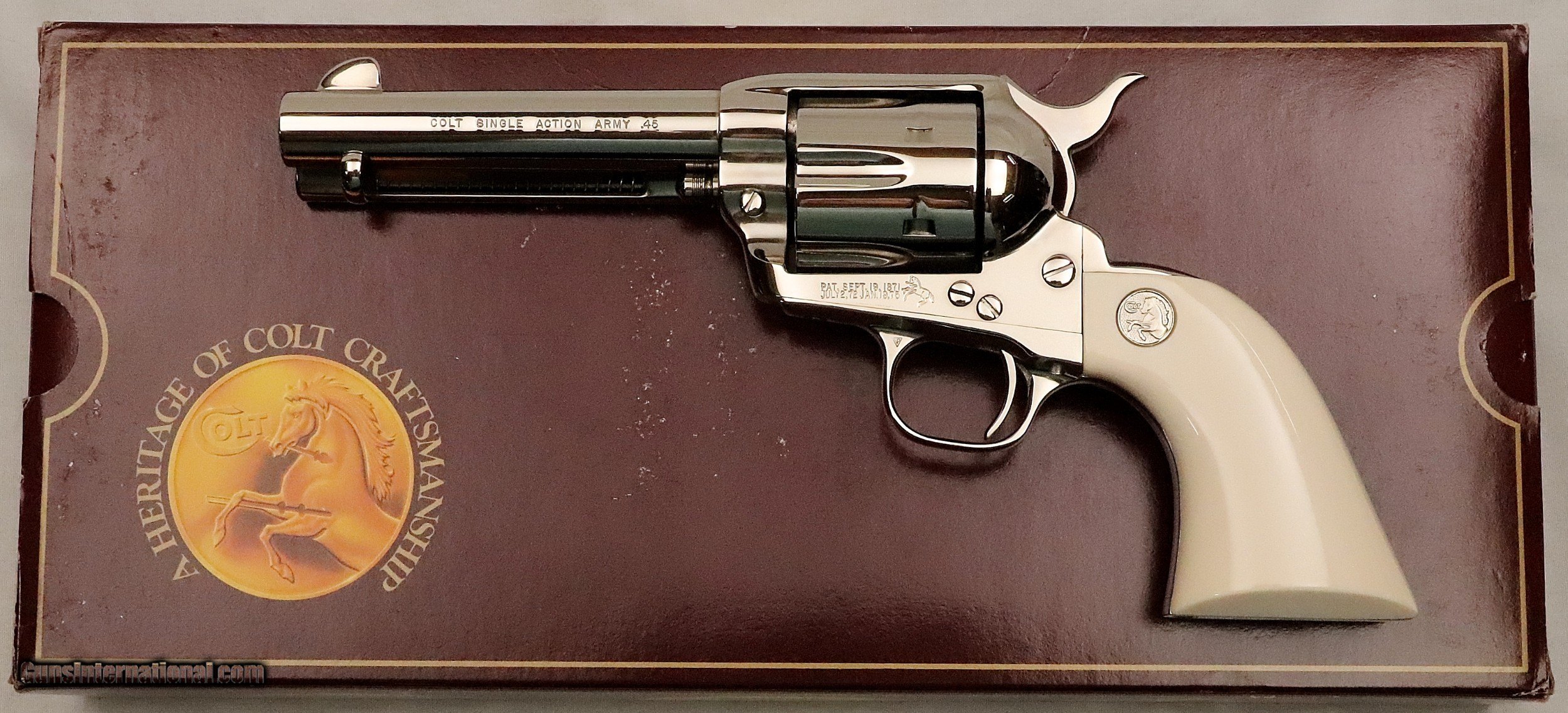 COLT, SAA, .45, 4 3/4” Barrel, Nickel w/ Factory Ivory, Model P1841, NEW, Box & Papers, SN: SA92845