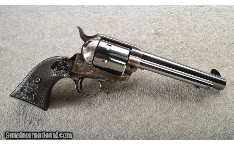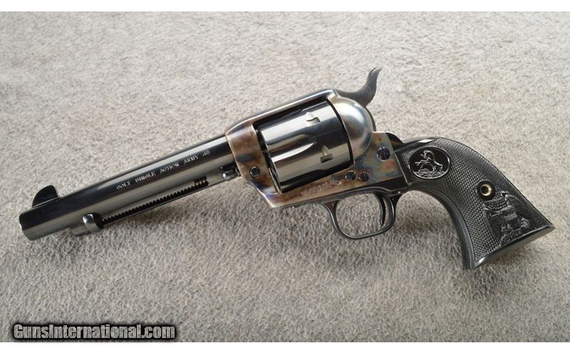 Description: 2004 Colt SAA. No Colt revolver has earned greater fame than the Single Action Army — The Peacemaker. In design and performance, in line and form, no more sculptural and practical Colt has ever been created. Movies serve as constant reminders of the role this equalizer played in winning the West. Available in Case Color Blue, in .45 Colt. .45 Colt SOLD Chambers: 6 shot revolver. Metal Condition: New. Bore Condition: New. Barrels: 5 1/2" barrel. Triggers: Single. Weight: 2.5 lbs Sights: U-notch rear/ fixed front. Item Location: Owatonna, MN |