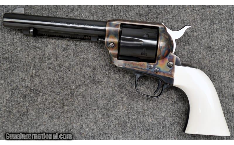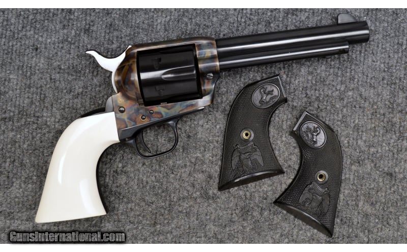 Description: For your consideration, a Colt Single Action Army chambered in .45 Colt. A set of faux-ivory grips have been fitted, but the original black grips are present in the box. This piece is a third generation gun dating to 1977. .45 Colt SOLD Chambers: 6 Metal Condition: Excellent Wood Condition: Excellent Bore Condition: Excellent Barrels: 5.5 Triggers: Smooth Face Weight: 2.25 lbs Sights: Iron Sights Item Location: Hamburg, PA |