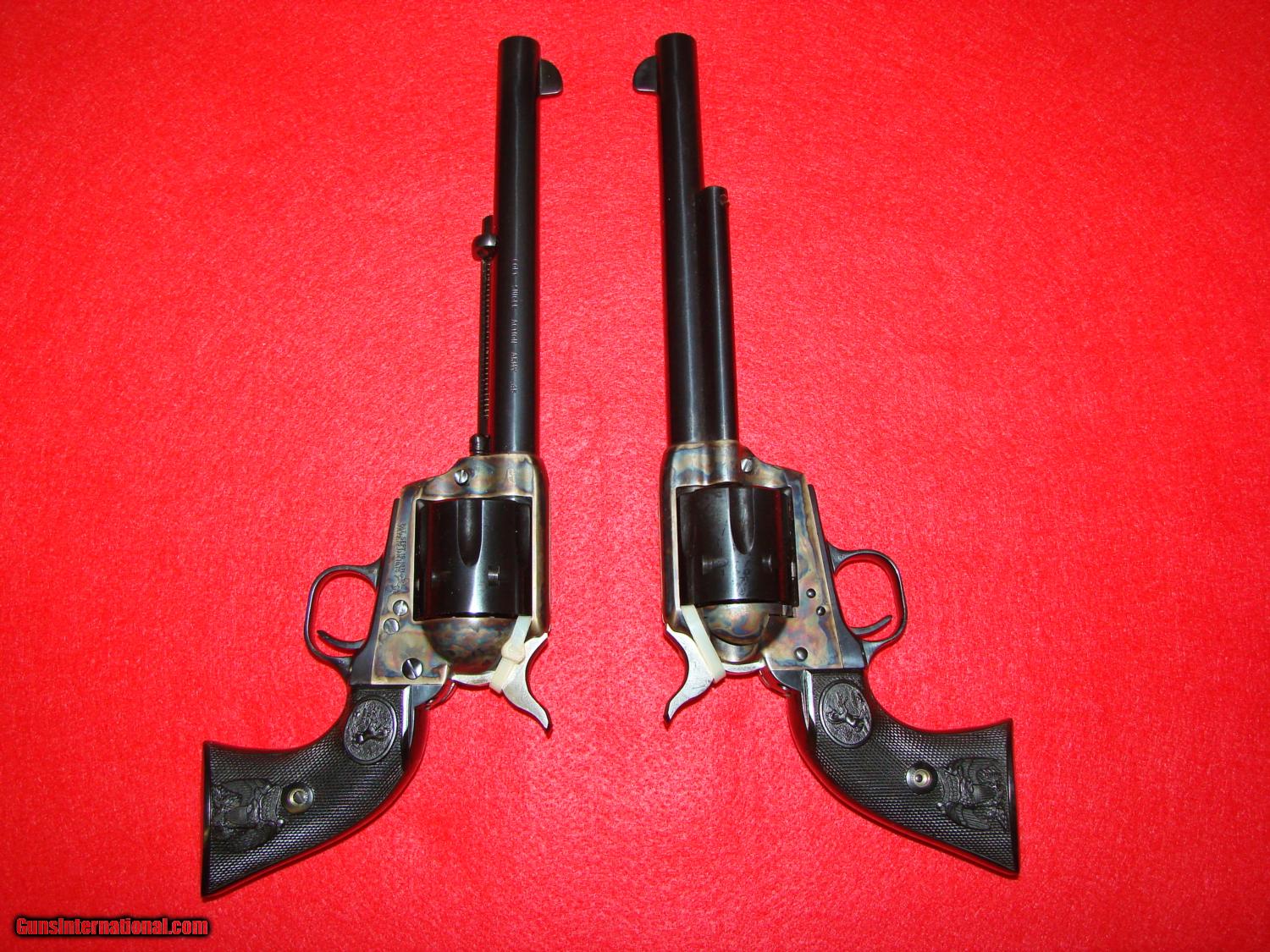 Description: Colt SAA Consecutive Serial Number Pair both in 45 colt, 7.5" barrels, blued case colord finish with black eagle grips. Both are unfired in excellent condition with boxes. *Legendary Guns in Phoenix AZ 602-242-1195 Hours of operation M-F 10-6 Sat 10-5 Closed Sundays. *We offer a 3 day inspection period with a full refund if item was misrepresented. We accept returns for any reason within the 3 day inspection period with no refund for shipping coming or going and a 15% restocking fee. *We do not charge extra for using credit cards. *Please call the shop for any questions before . We are happy to answer all questions. *Your State Laws are your Responsibility to know. SOLD Manufacturer: Colt Model: SAA Caliber Info: 45 LC Condition: Unfired |