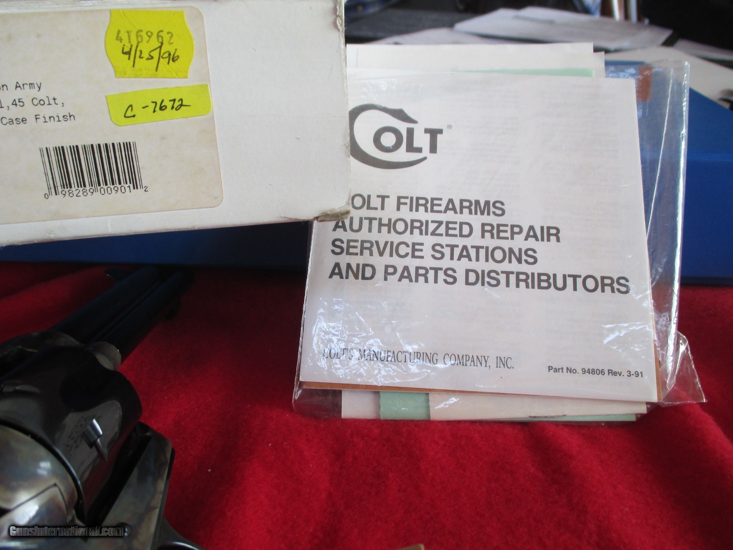 Description: Colt Single Action Army 45 LC 4 3/4 inch. Blue and Case. Has blue and white box and papers. Lay-a-way available. 1/3 down, 1/3 at 30 days and 1/3 at 60 days. No return on lay-a-way firearms. Stallionfirearmsgmail 810-922-4279. Shipping $25 to your FFL. Hammer will be tied back to prevent hammer from being pulled back. Certified Bank Check (held until cleared). PENDING FOR GD. SOLD |