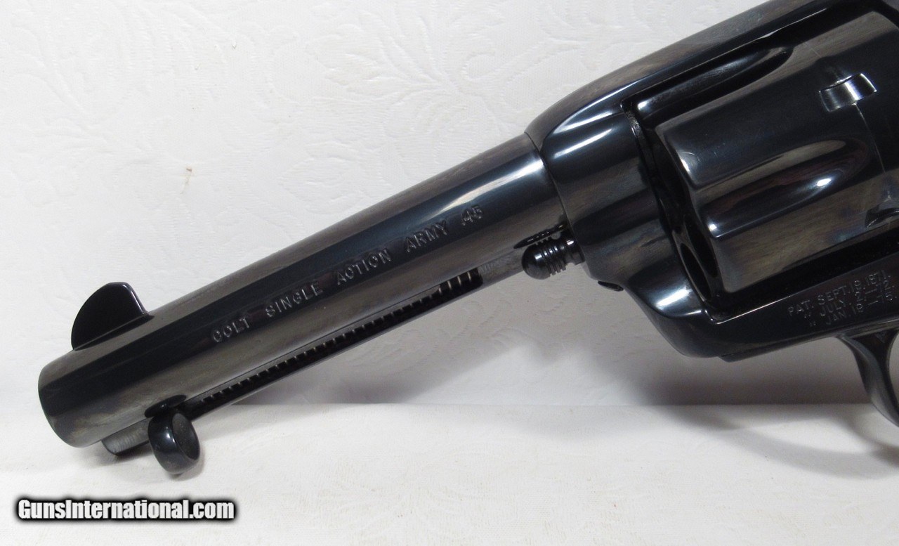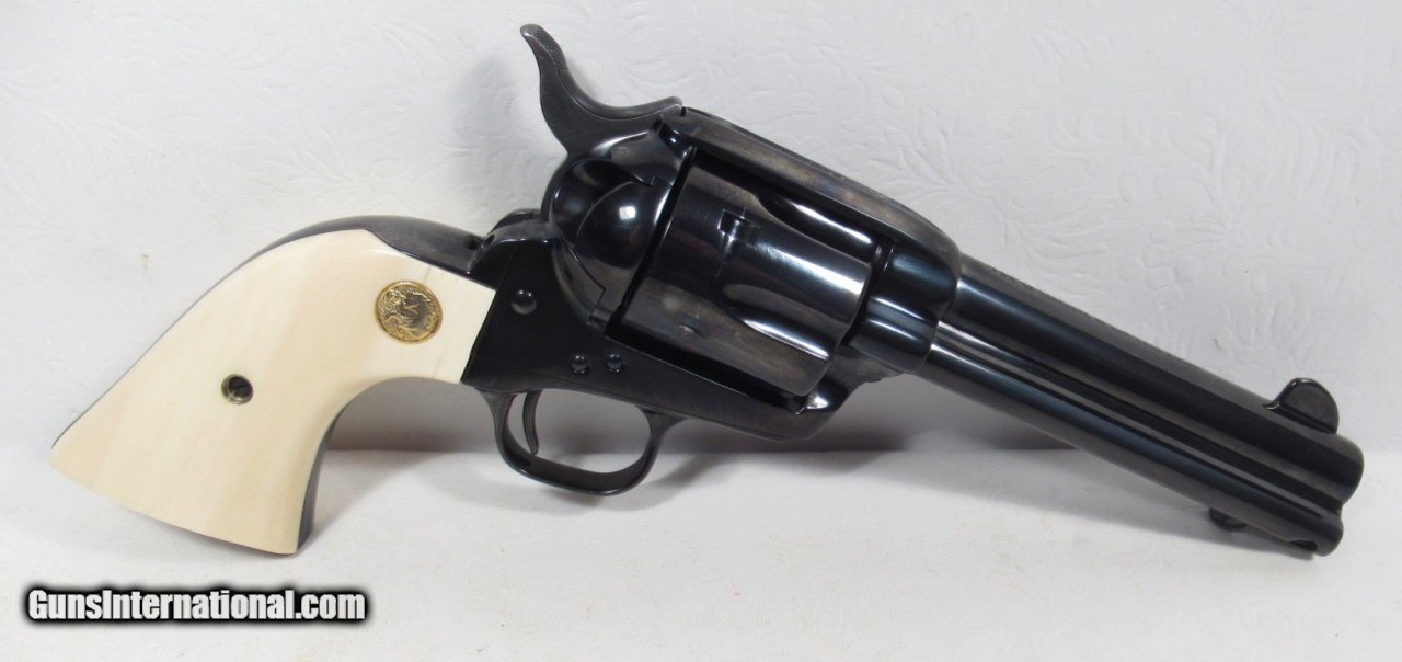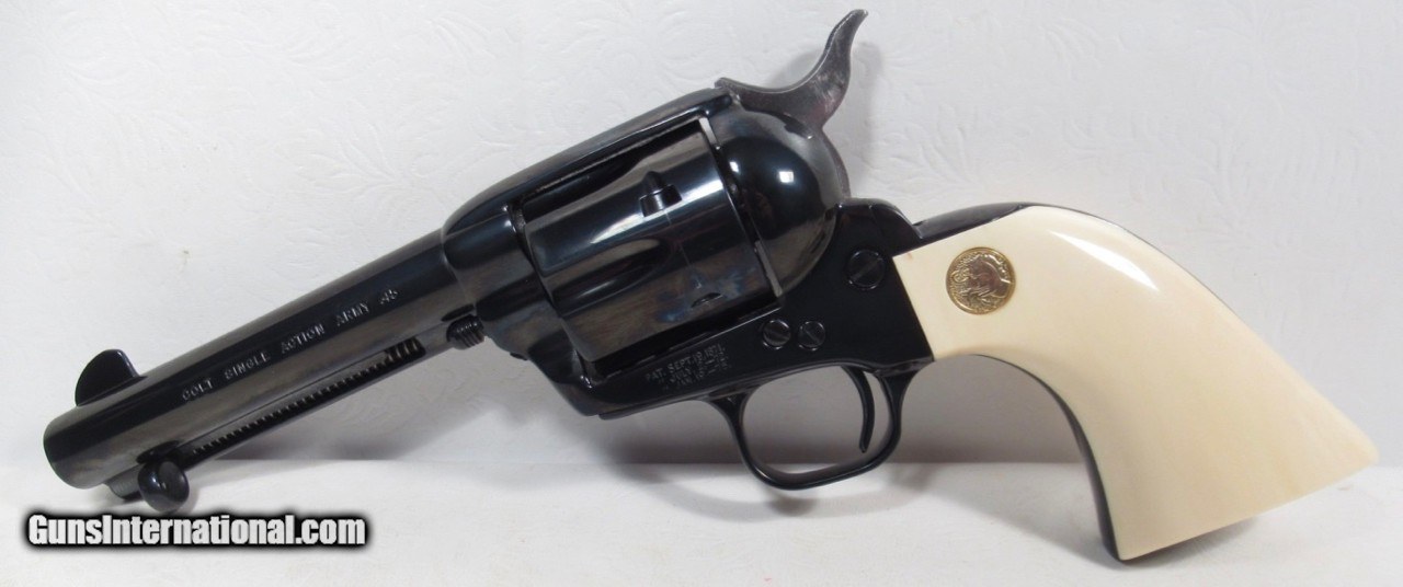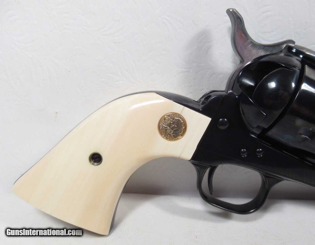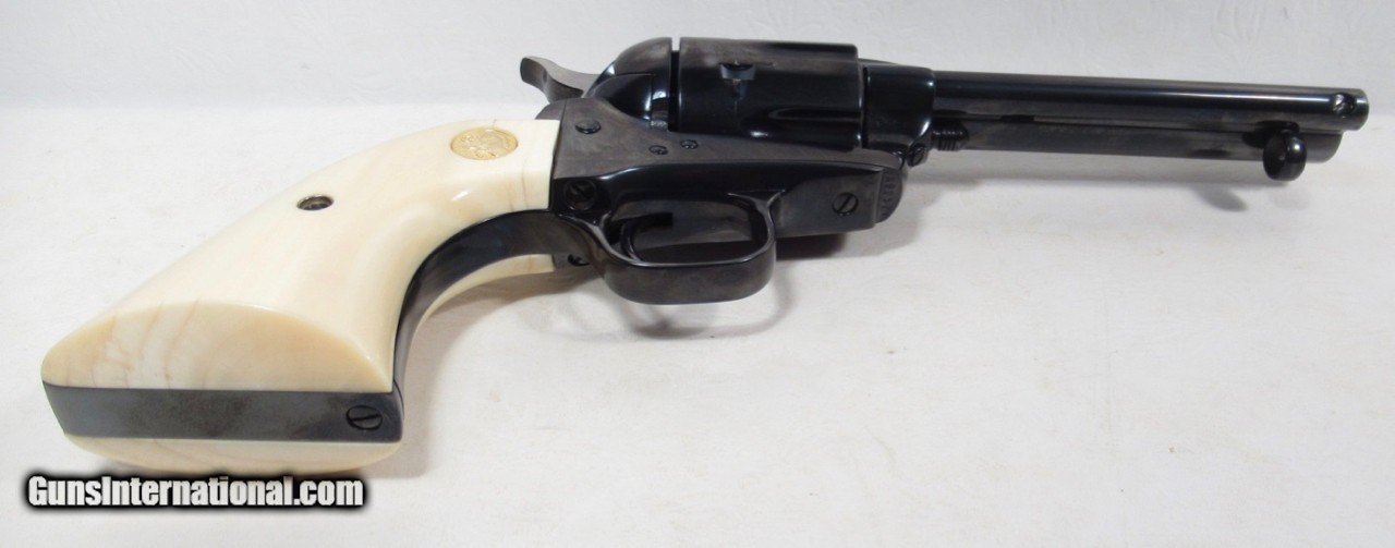 Description: Colt Single Action Army; Serial No. SA90527; 45 Caliber; 4 ¾” Barrel; All Blue Black Powder Frame with Colt Factory Ivory Grips (Pre-Ban); Made in 1988; Appears to be New in Original Box; See All Photos for Condition; No Texts. Call or Email Only; PERSONAL PROPERTY of Harold Wieser; Price: $3,475 + $45 S&H Via FedEx Express; Price includes insured shipping; return policy: three days inspection from the date the item is received; full refund of shipping both ways ONLY IF THE ITEM IS MISREPRESENTED. SOLD Manufacturer: Colt Model: 1873 Serial Number: SA90527 |
