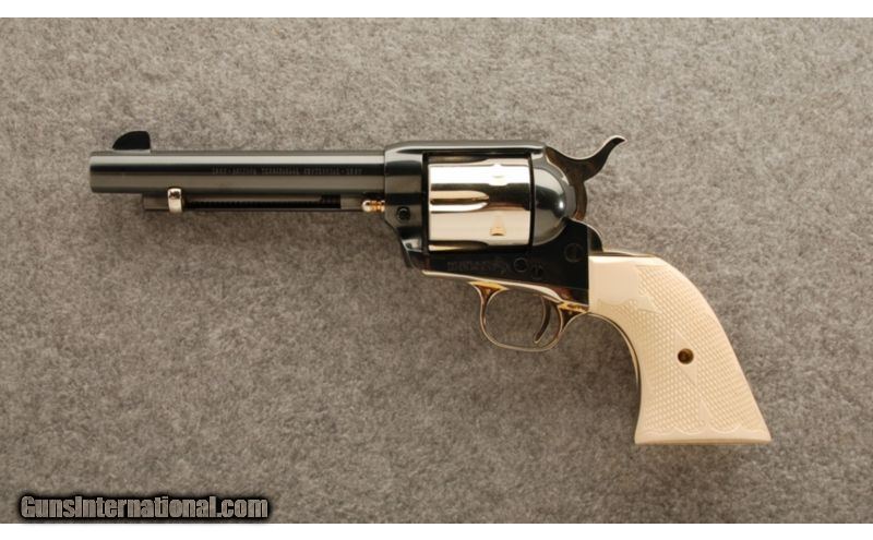 Description: SOLD Manufacturer: 1963 Caliber Info: .45 Colt Metal Condition: Factory finish shows minor handling and use marks. Handling and use has removed most of the gold plating from the cylinder, trigger guard, etc. Bore Condition: Shows nice sharp lands. Barrels: 5 1/2 Weight: 2 1/2 lb. Item Location: Post Falls, ID |