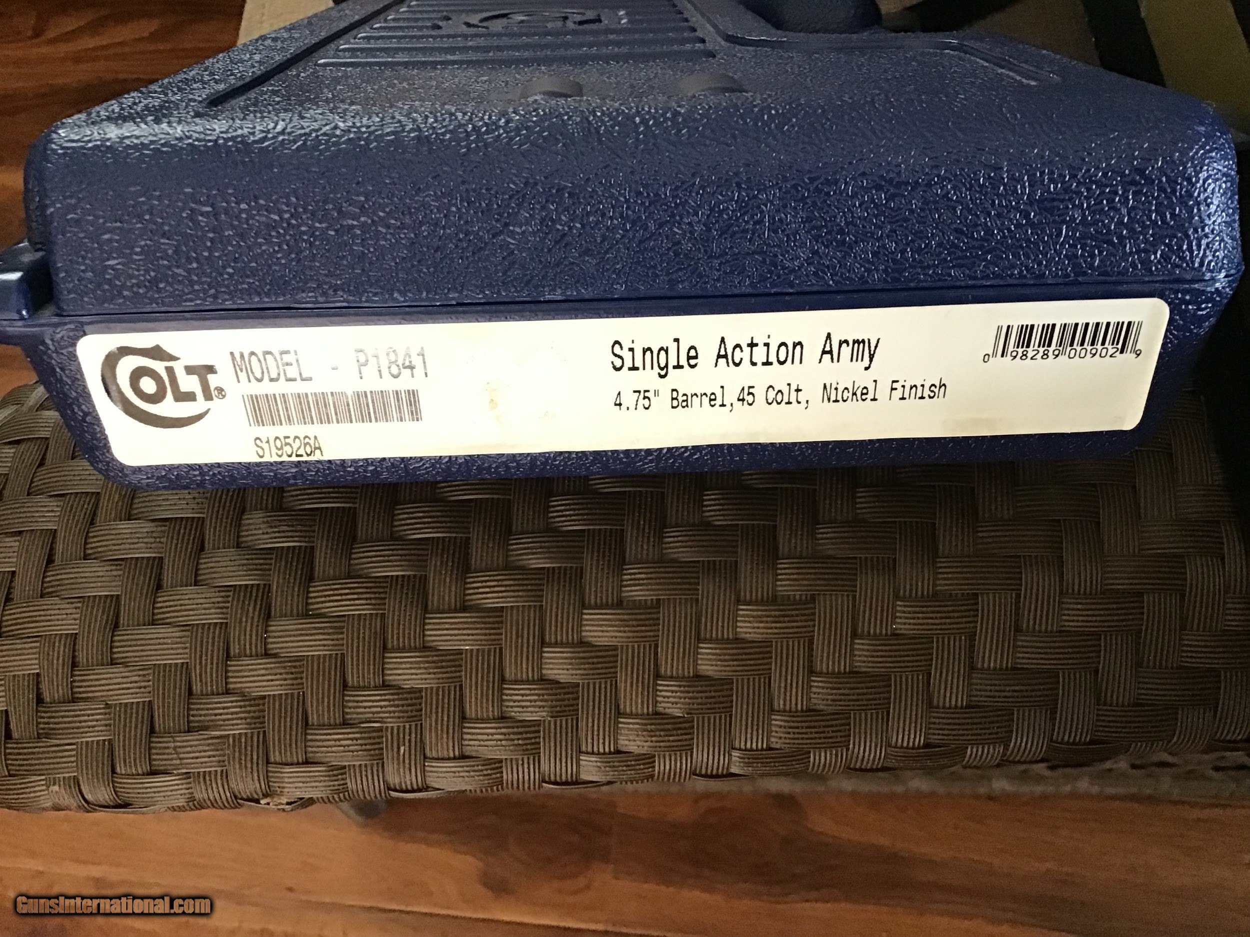 COLT SAA ARMY 45 LC. 4 3/4” BARREL, BRIGHT NICKEL, NEW UNFIRED, UNTURNED 100% COND. IN THE BOX WITH OWNERS MANUAL & HANG TAG